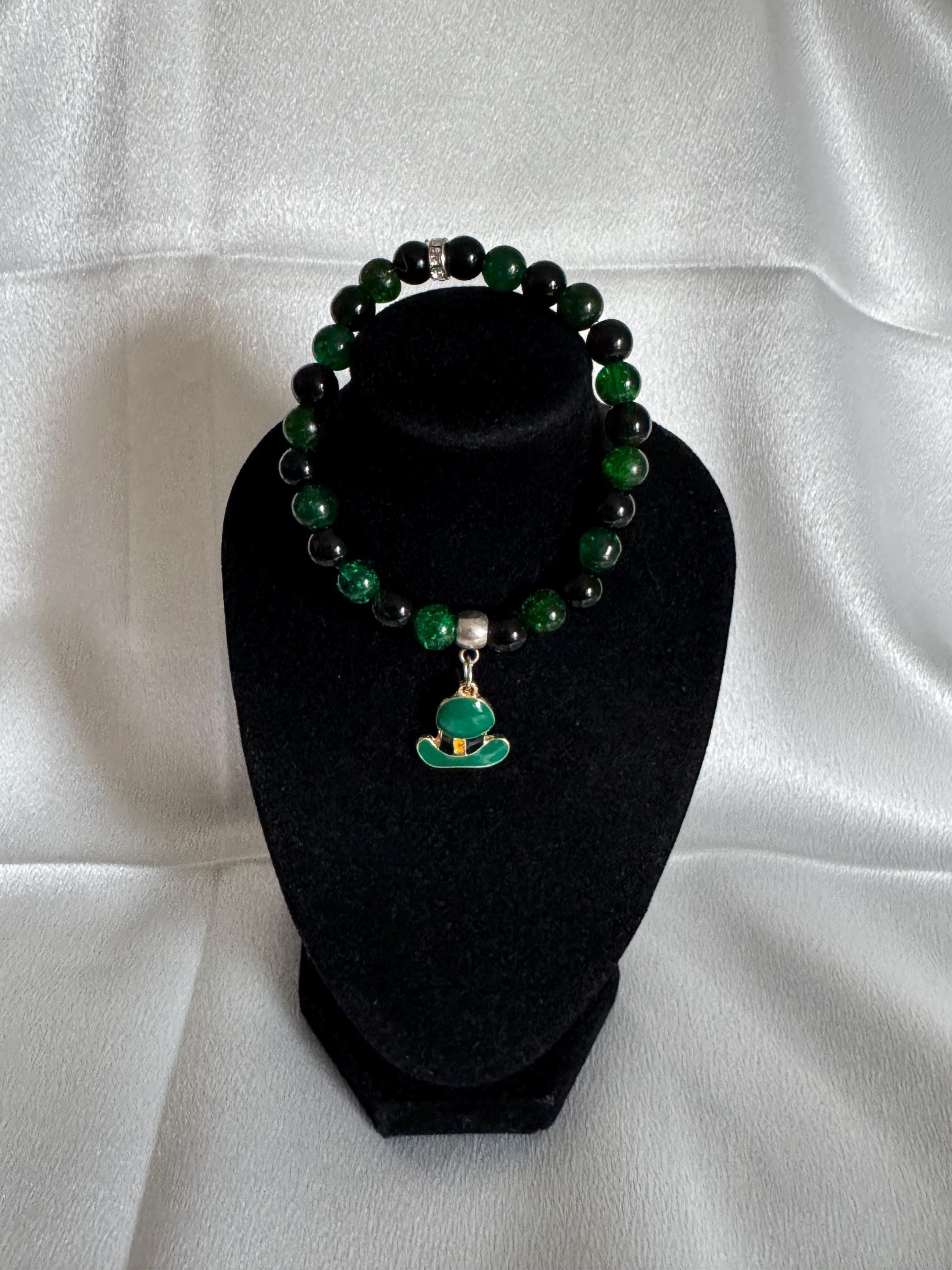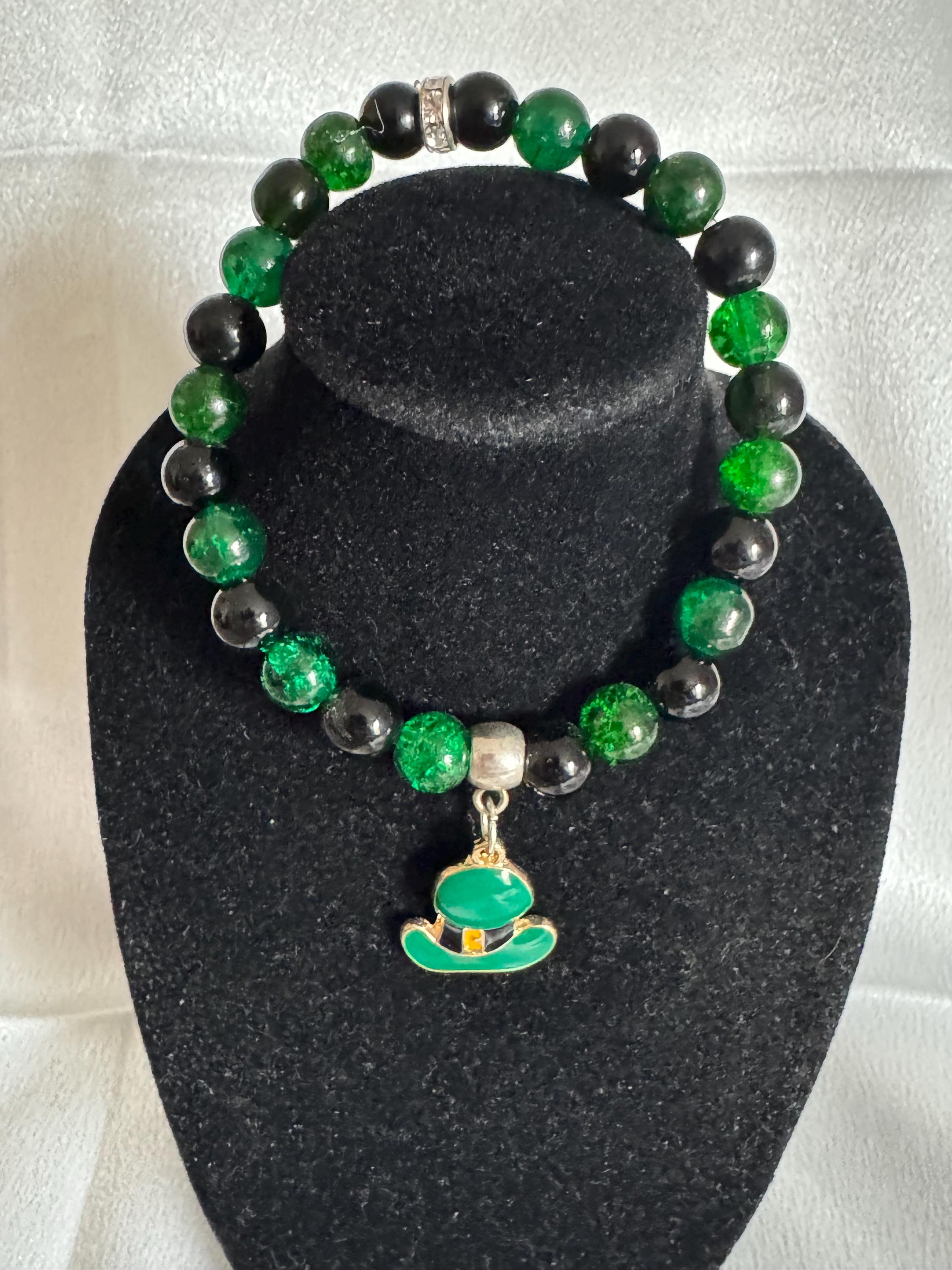 Celebrate St. Patrick’s Day—or your everyday love for Irish charm—with this handmade stretch bracelet featuring vibrant acrylic and glass beads paired with a festive themed charm. Measuring approximately 7.5 inches, it offers a comfortable fit and can be customized in both size and color to match your style.