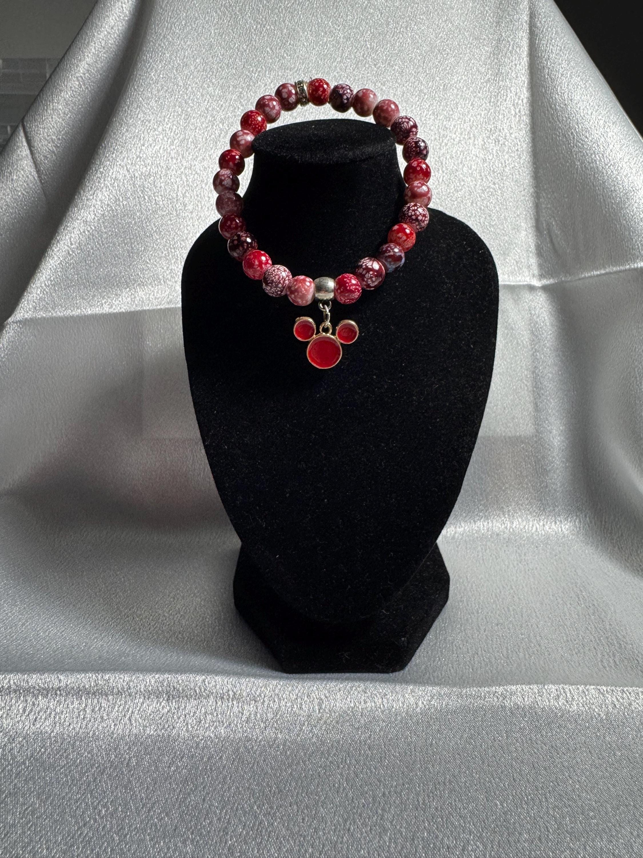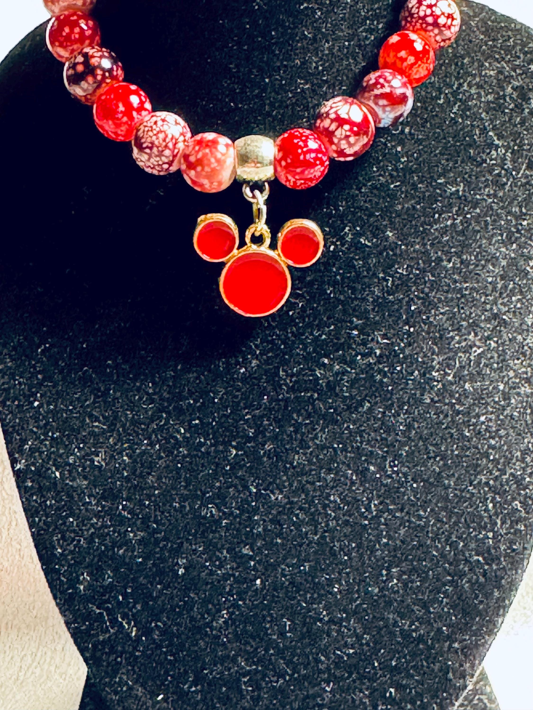 Red Mickey Mouse Ears Charm Stretch Bracelet