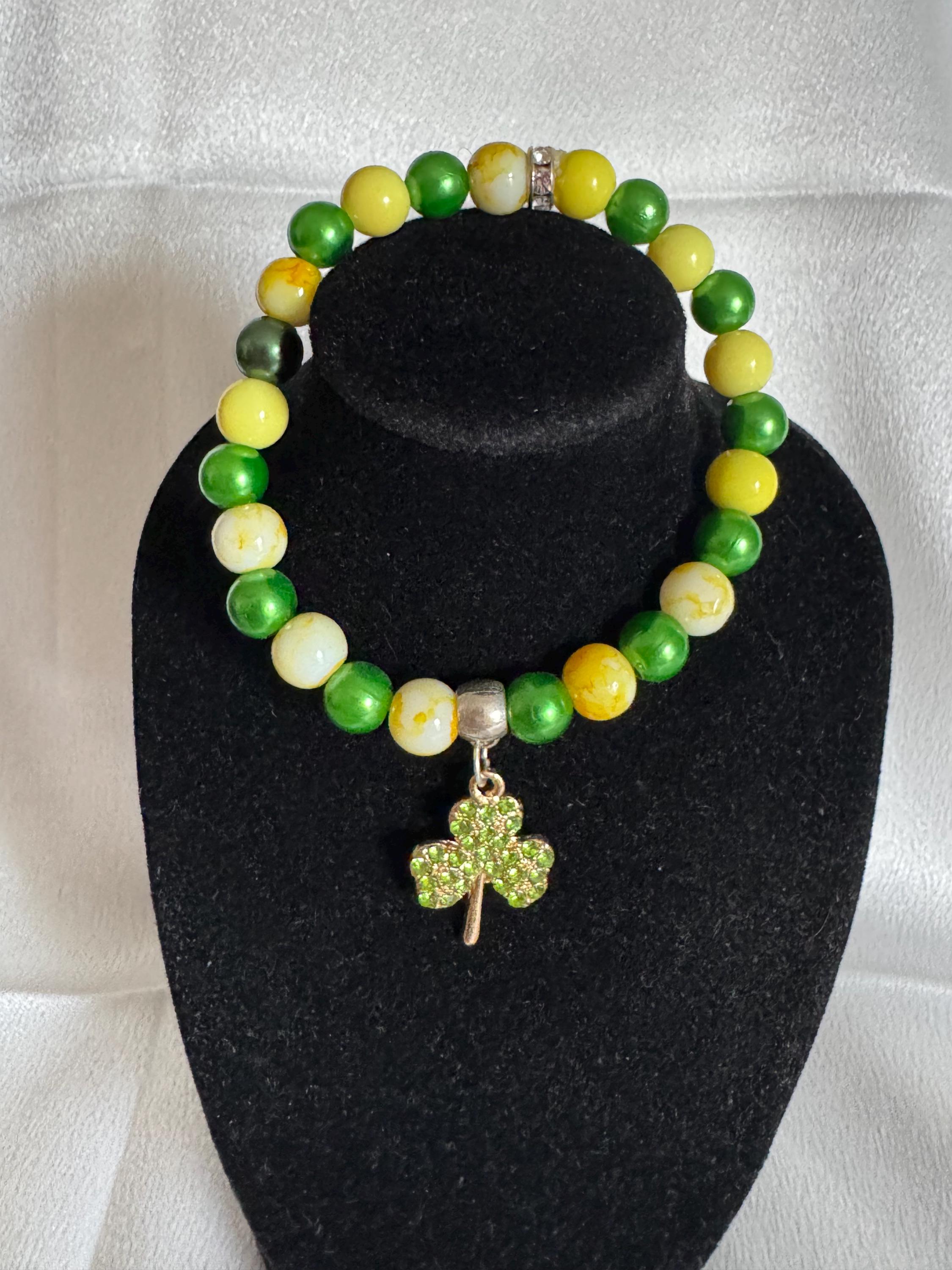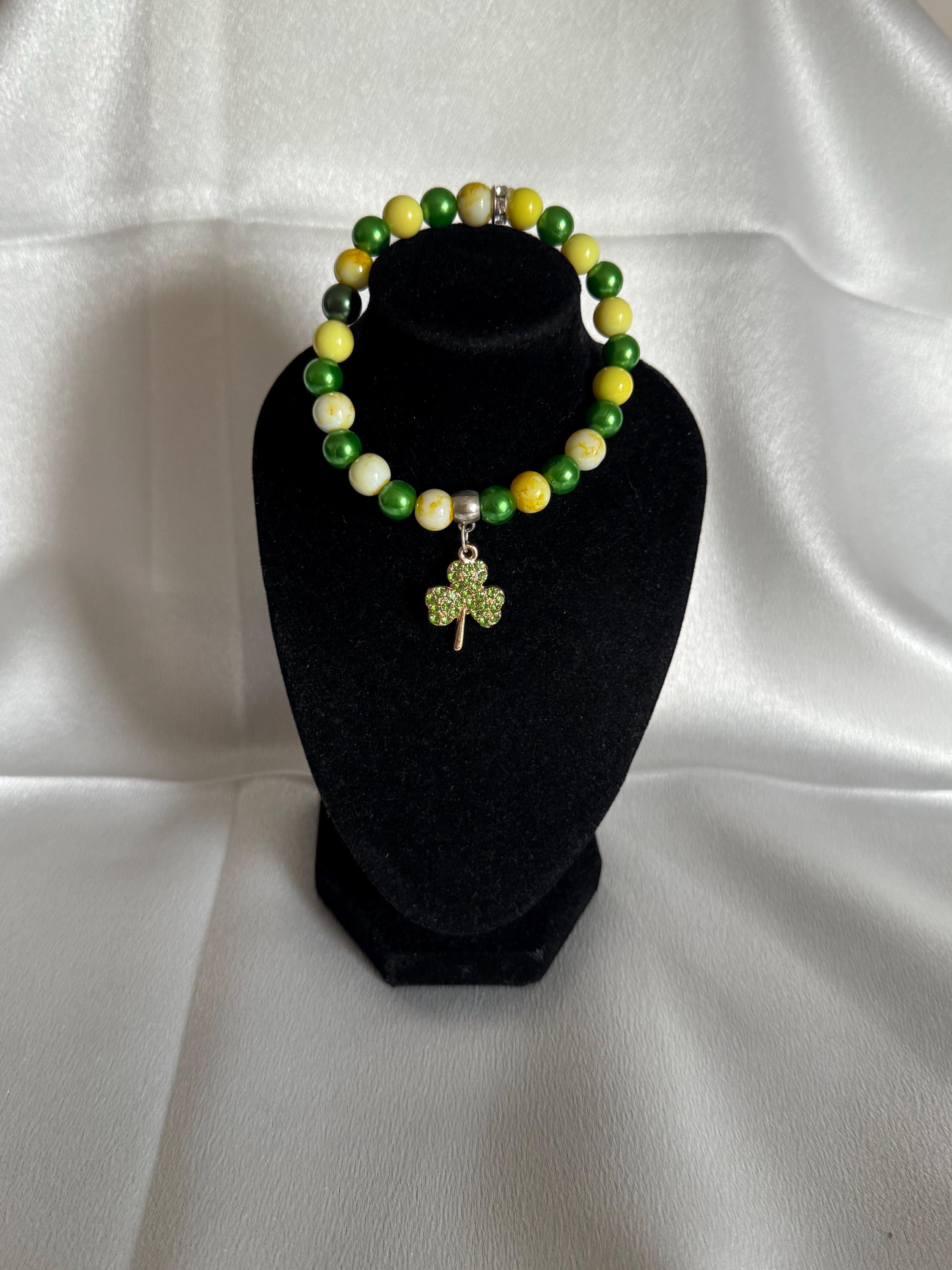 Celebrate St. Patrick’s Day—or your everyday love for Irish charm—with this handmade stretch bracelet featuring vibrant acrylic and glass beads paired with a festive themed charm. Measuring approximately 7.5 inches, it offers a comfortable fit and can be customized in both size and color to match your style.