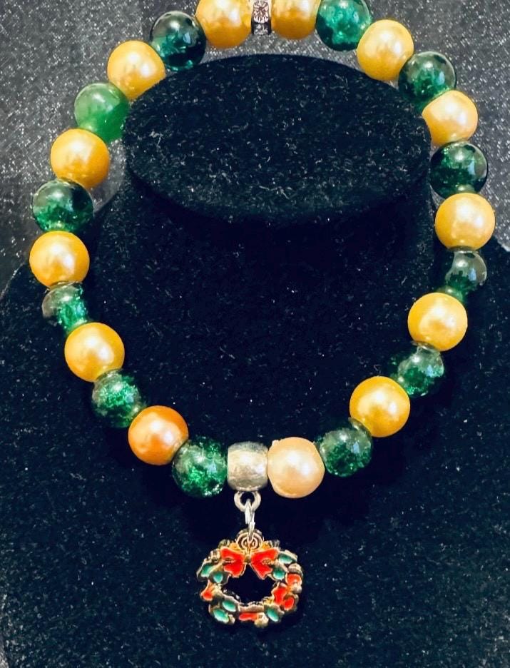 Christmas Wreath Charm Stretch Bracelet