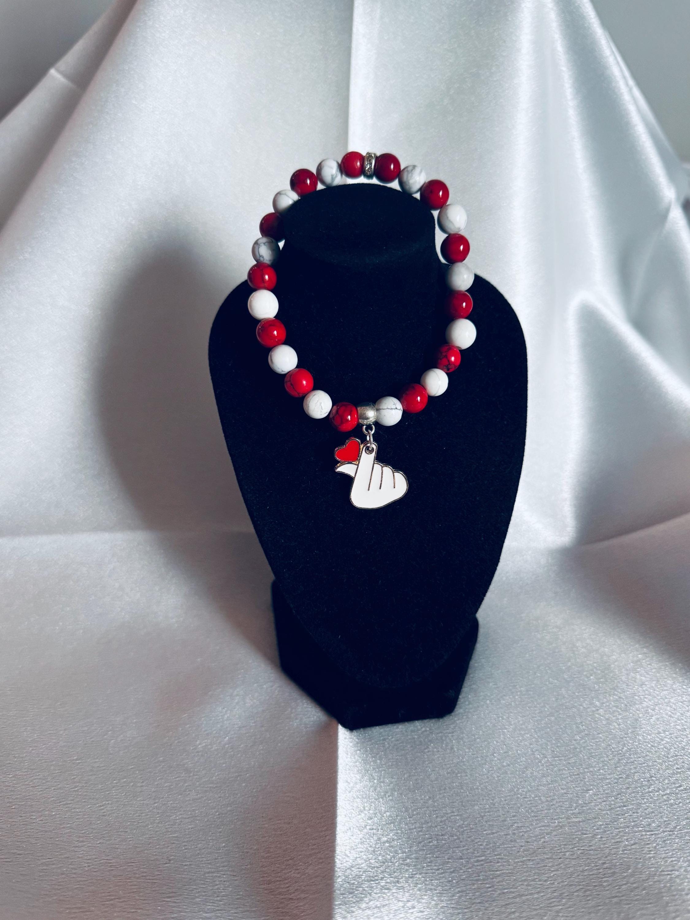 Show your love with this adorable stretch bracelet, handcrafted with acrylic and glass beads and finished with a sweet charm. It’s the perfect treat for yourself or a thoughtful gift for someone special.