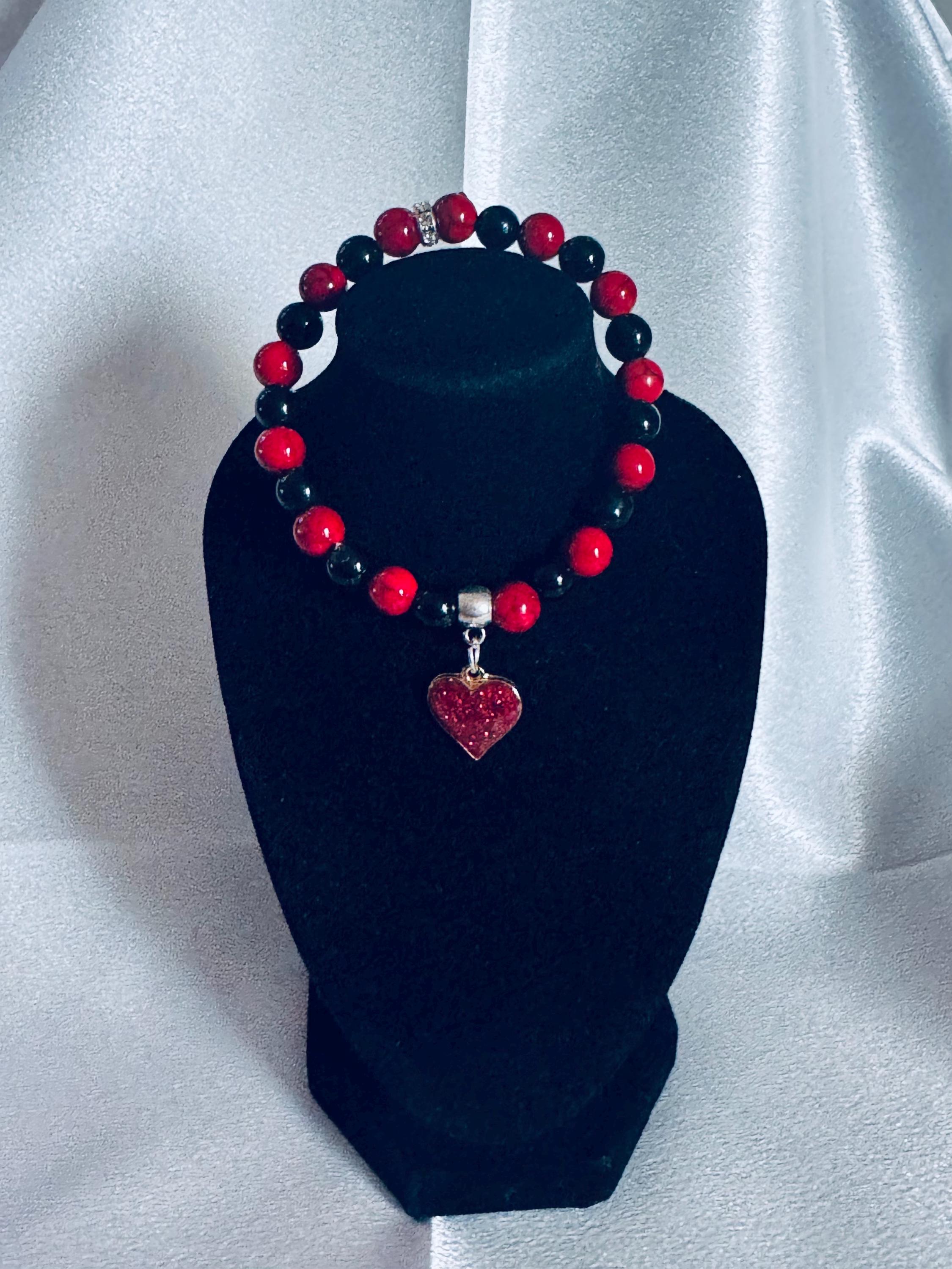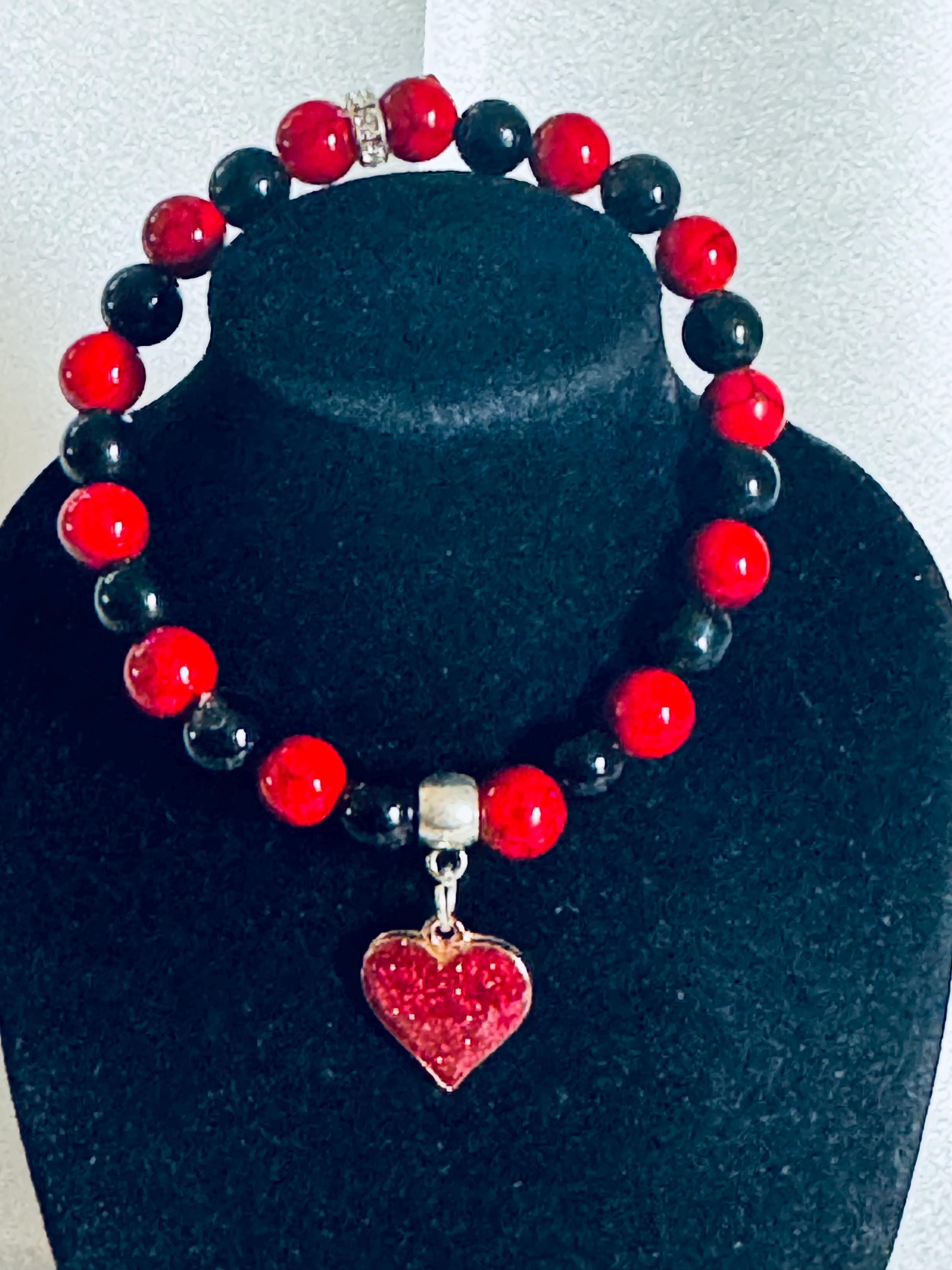Show your love with this adorable stretch bracelet, handcrafted with acrylic and glass beads and finished with a sweet charm. It’s the perfect treat for yourself or a thoughtful gift for someone special.