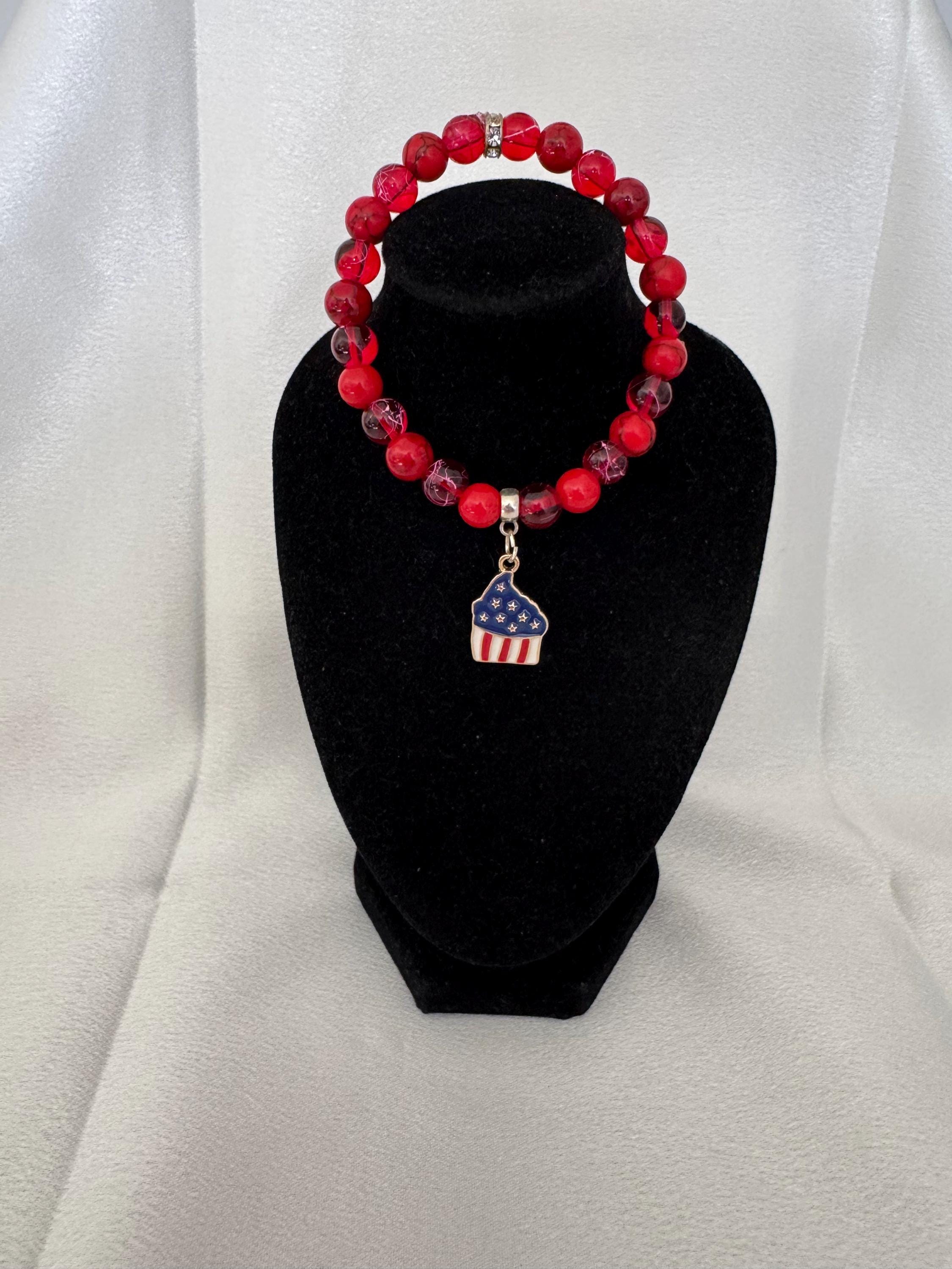 Red White and Blue Cupcake Charm Stretch Bracelet
