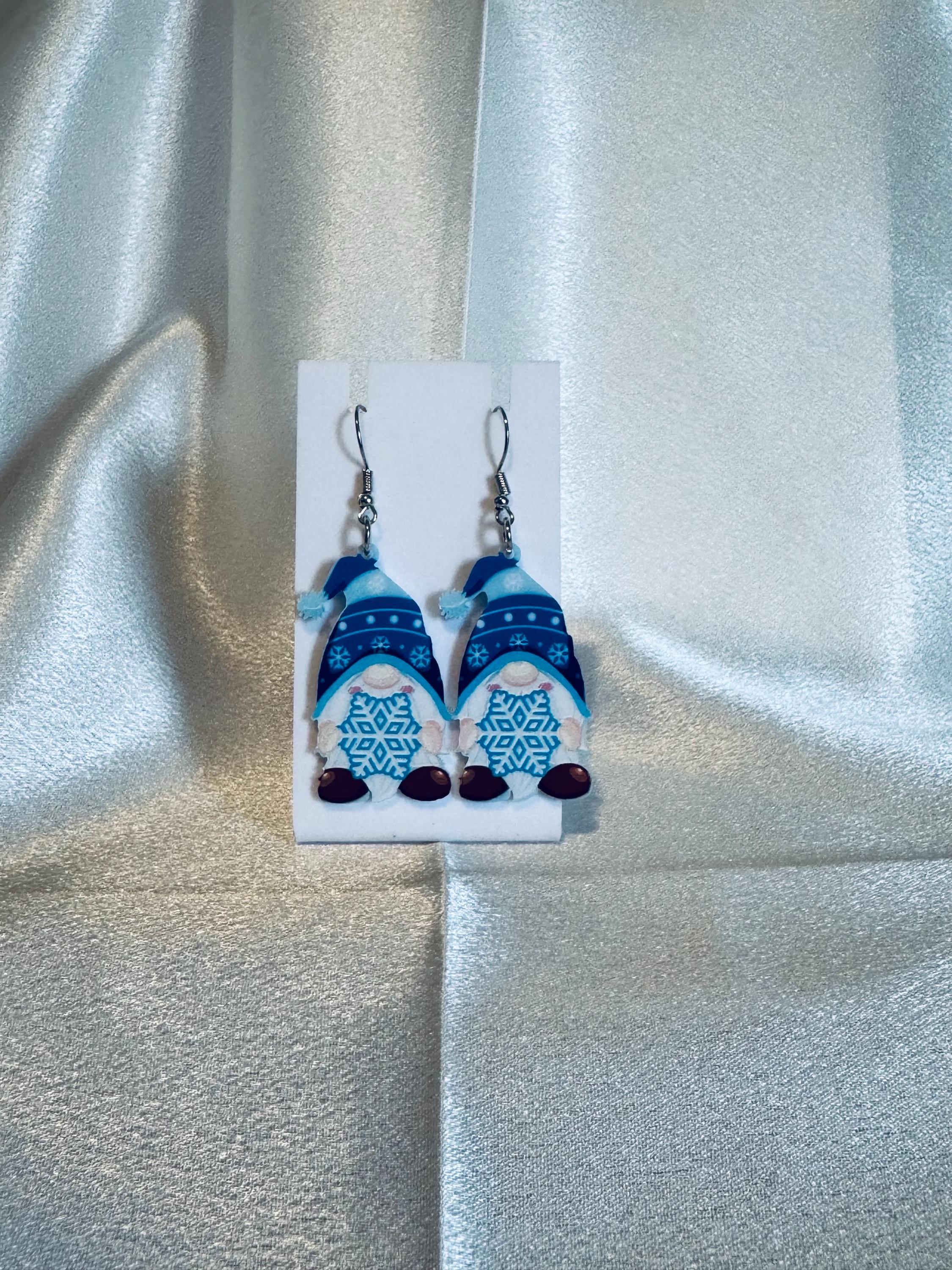 Acrylic Winter Gnome Dangle Earrings
