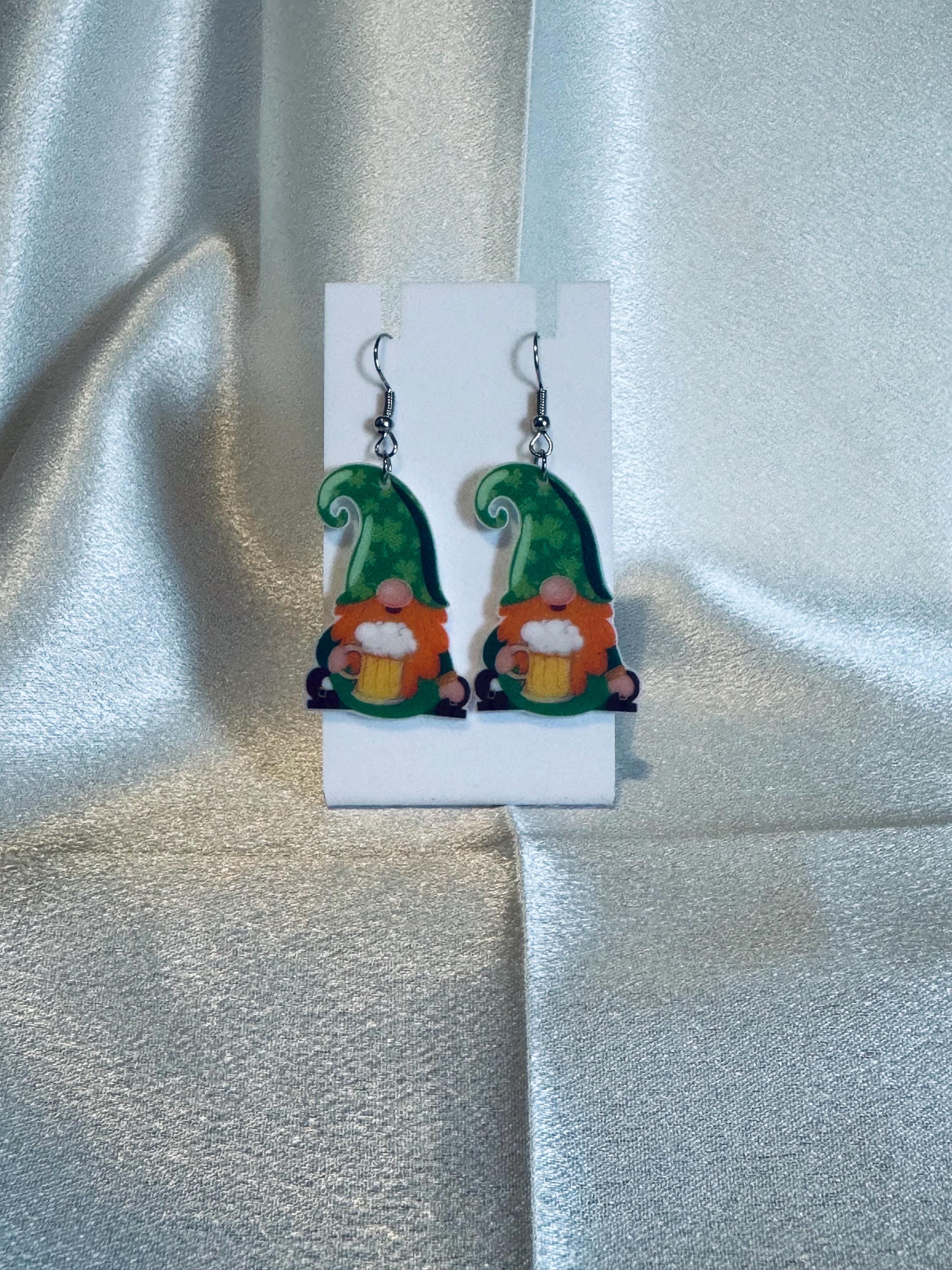 Acrylic St Patrick’s Day Gnome Dangle Earrings