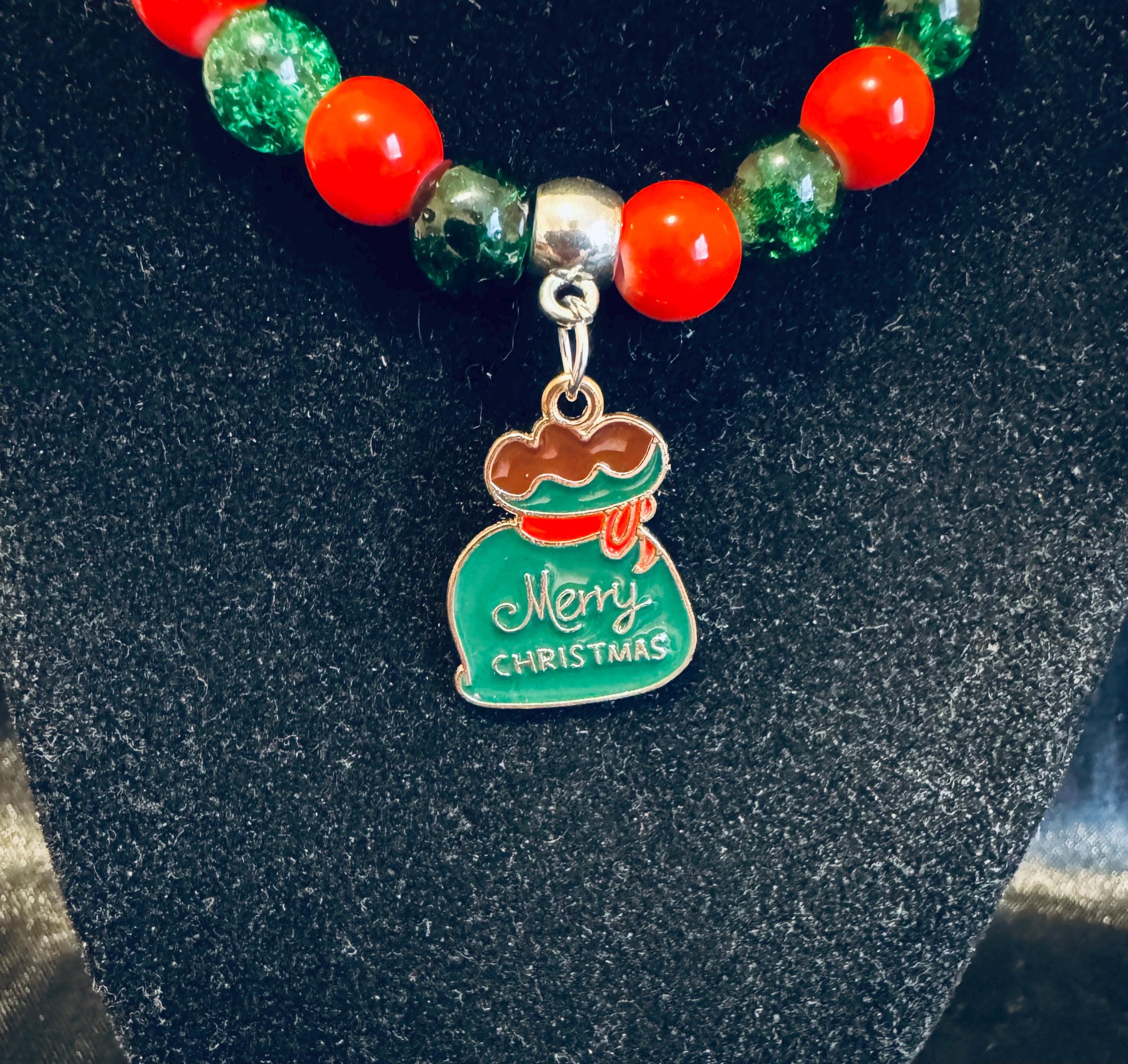 This charming stretch bracelet features a festive mix of acrylic and glass beads, perfect for adding a little sparkle to the season. Treat yourself or gift it to someone special.