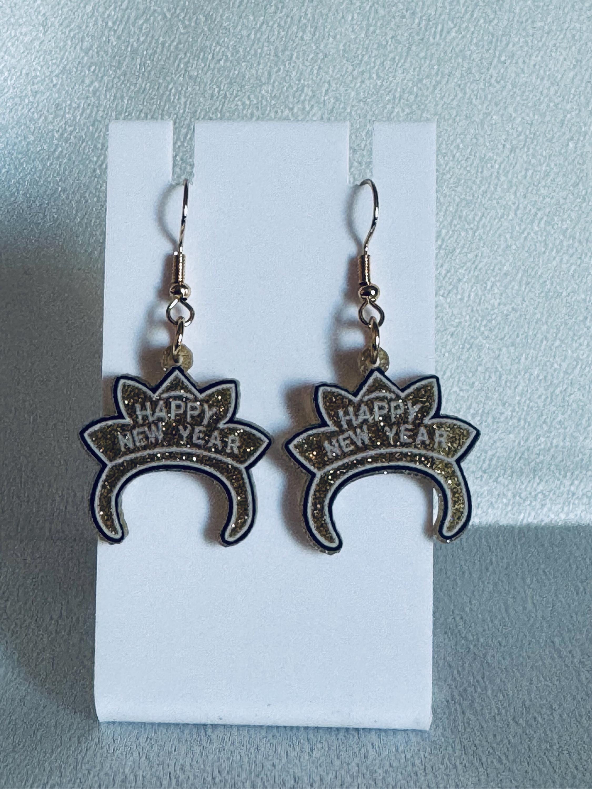 Happy New Year Head Banf Dangle Earrings