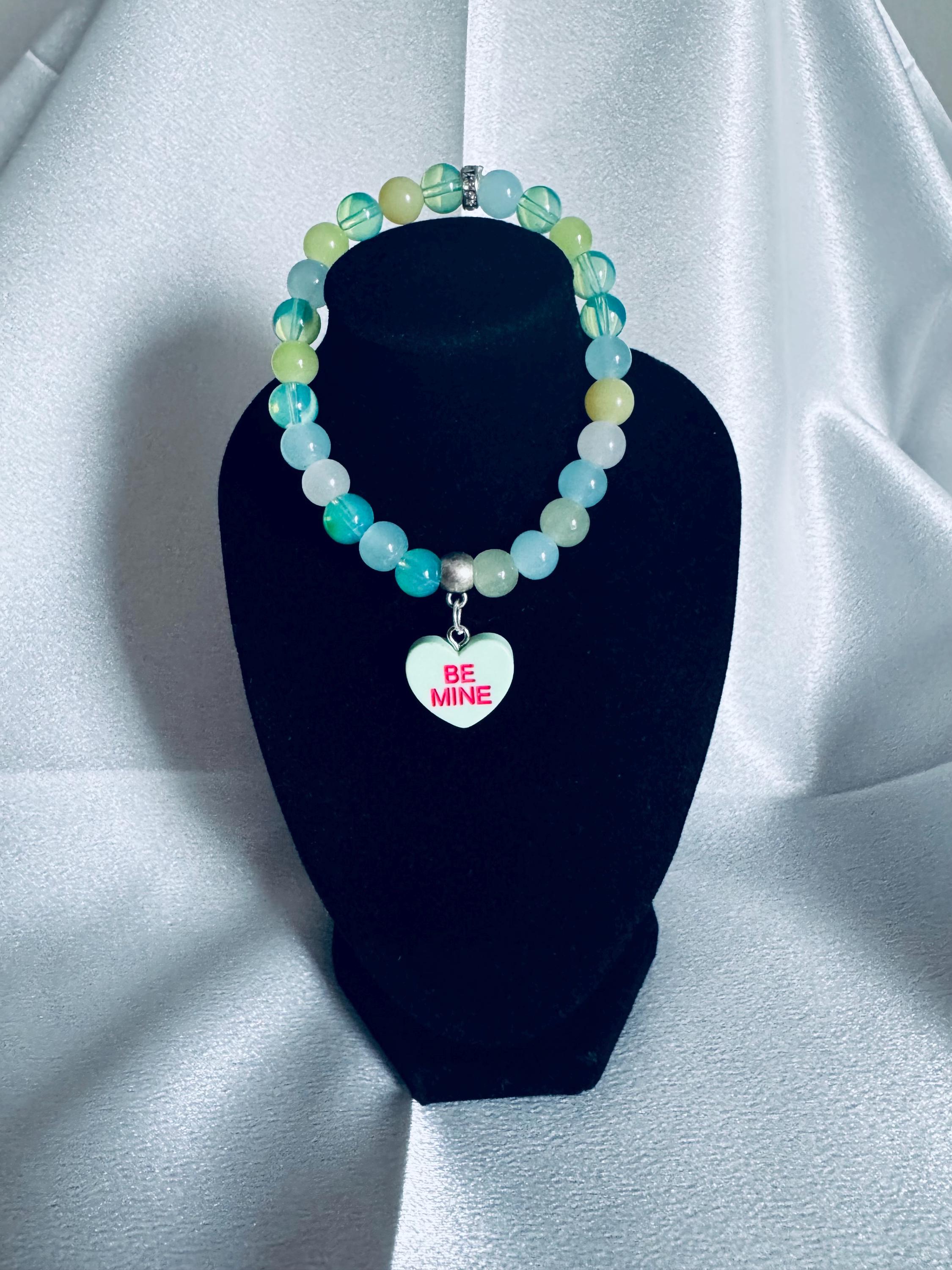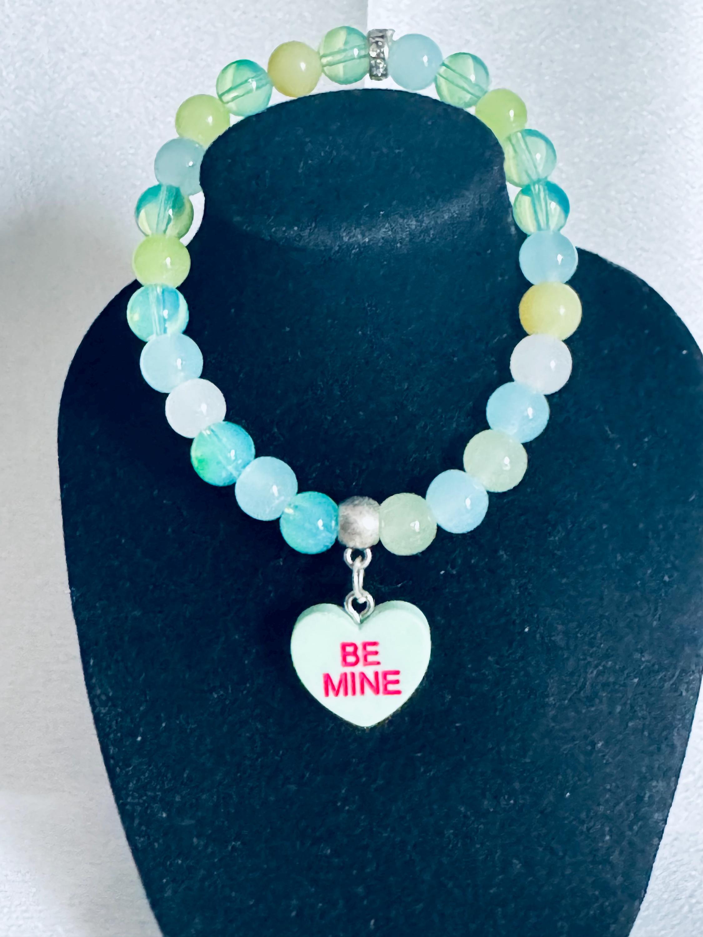 Be Mine Light Green Heart Valentine Charm Stretch Bracelet