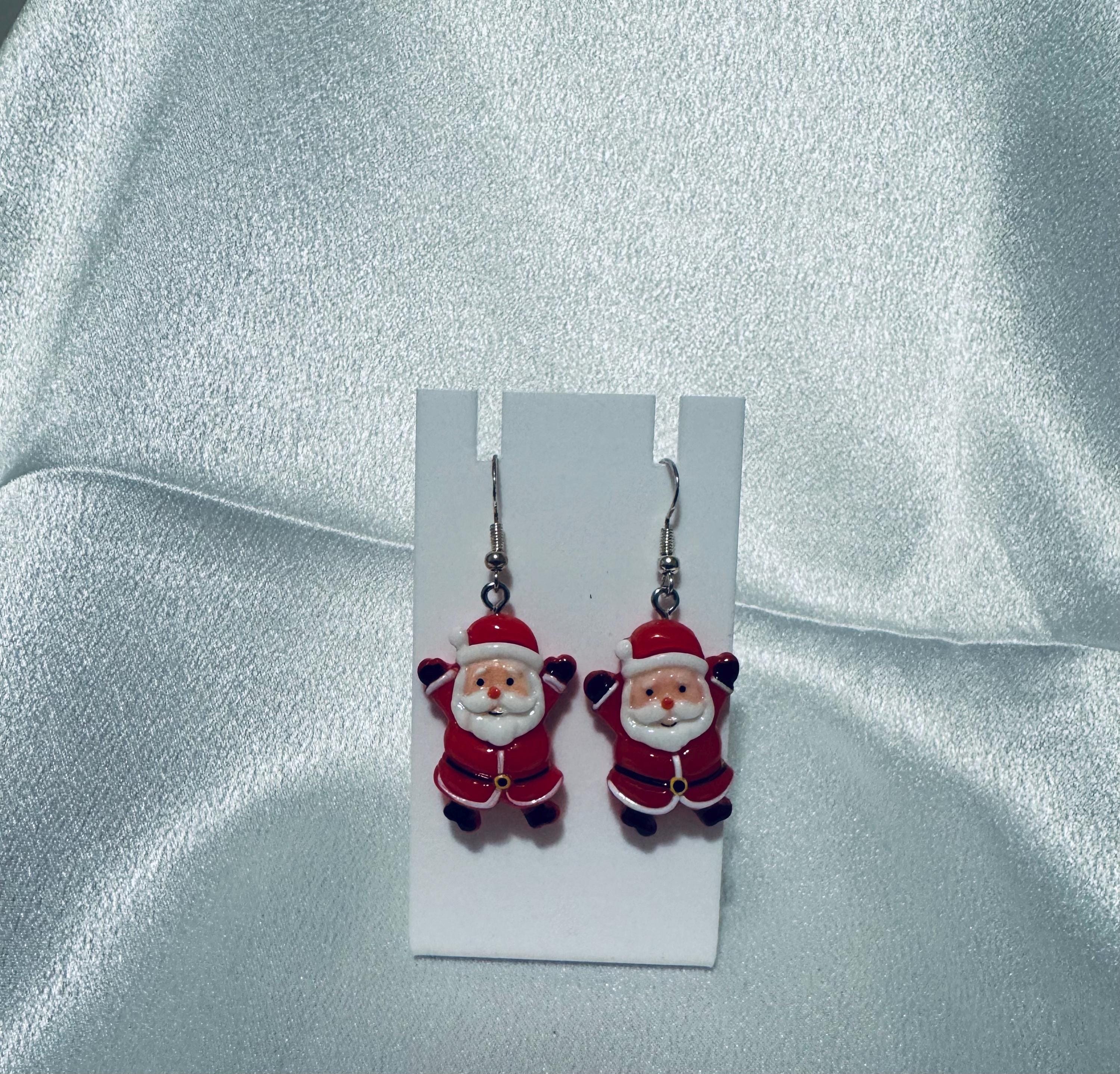 Santa Christmas Enamel Dangle Eaarings