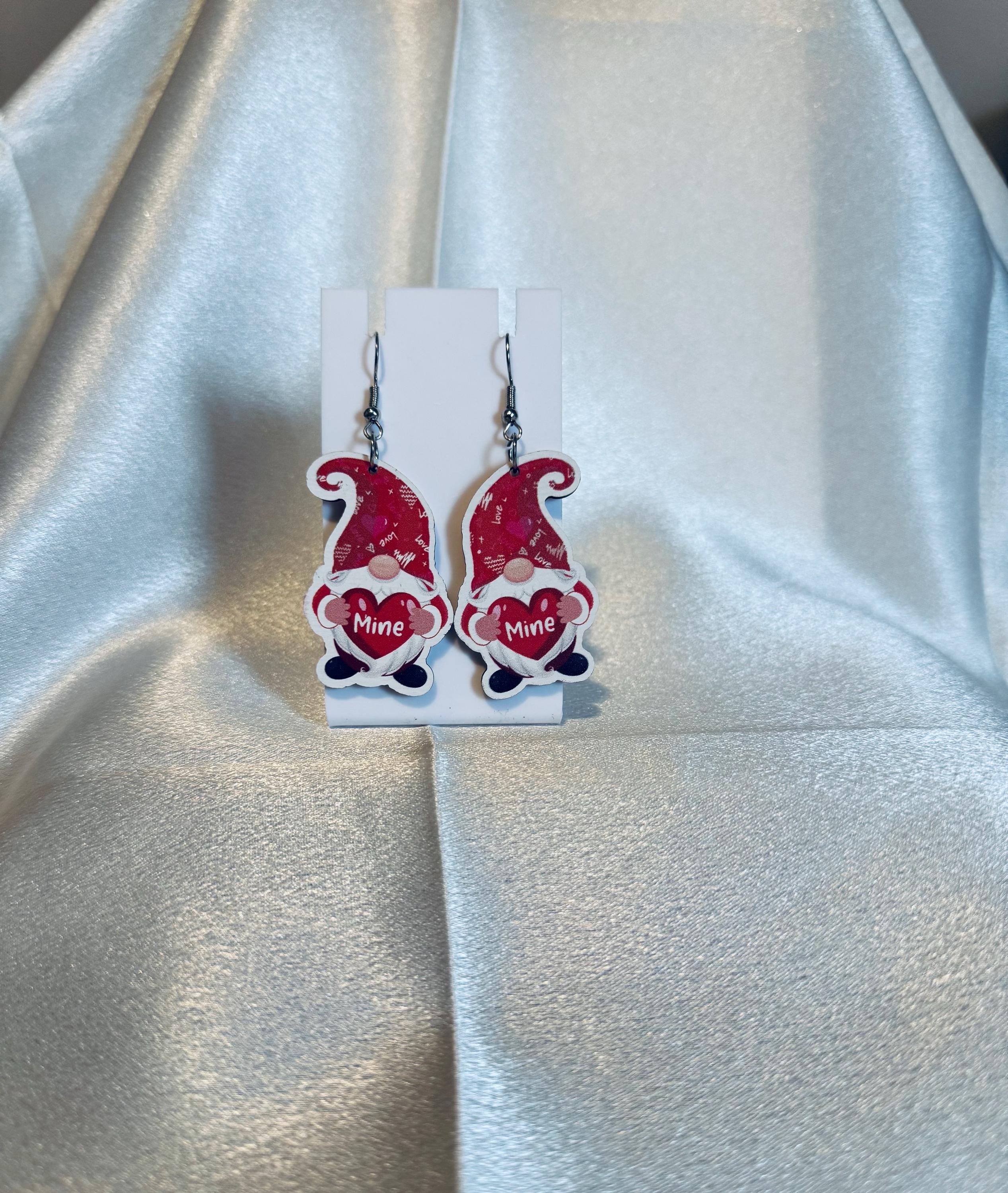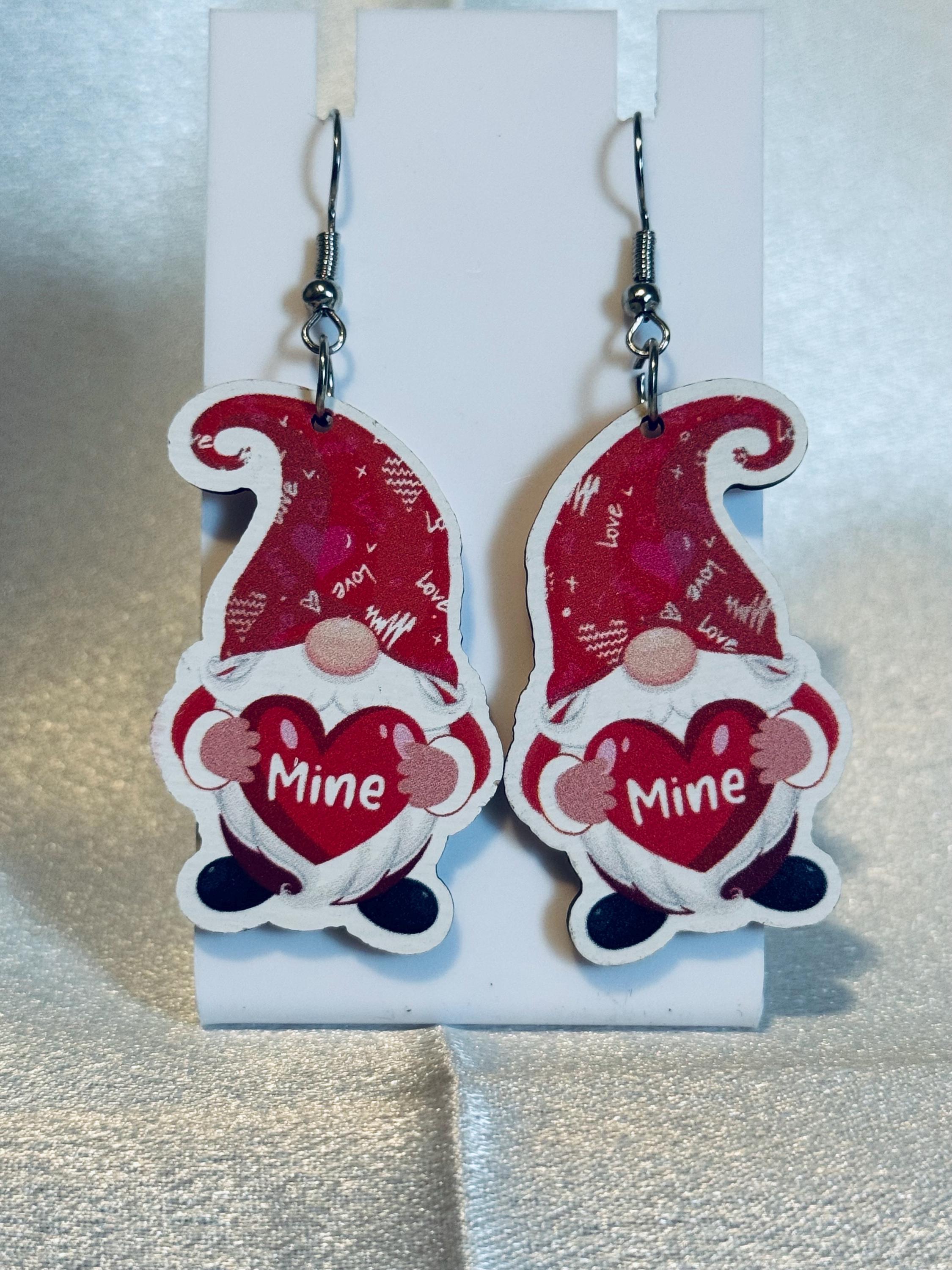Gnome Mine Heart Wooden Dangle Earrings