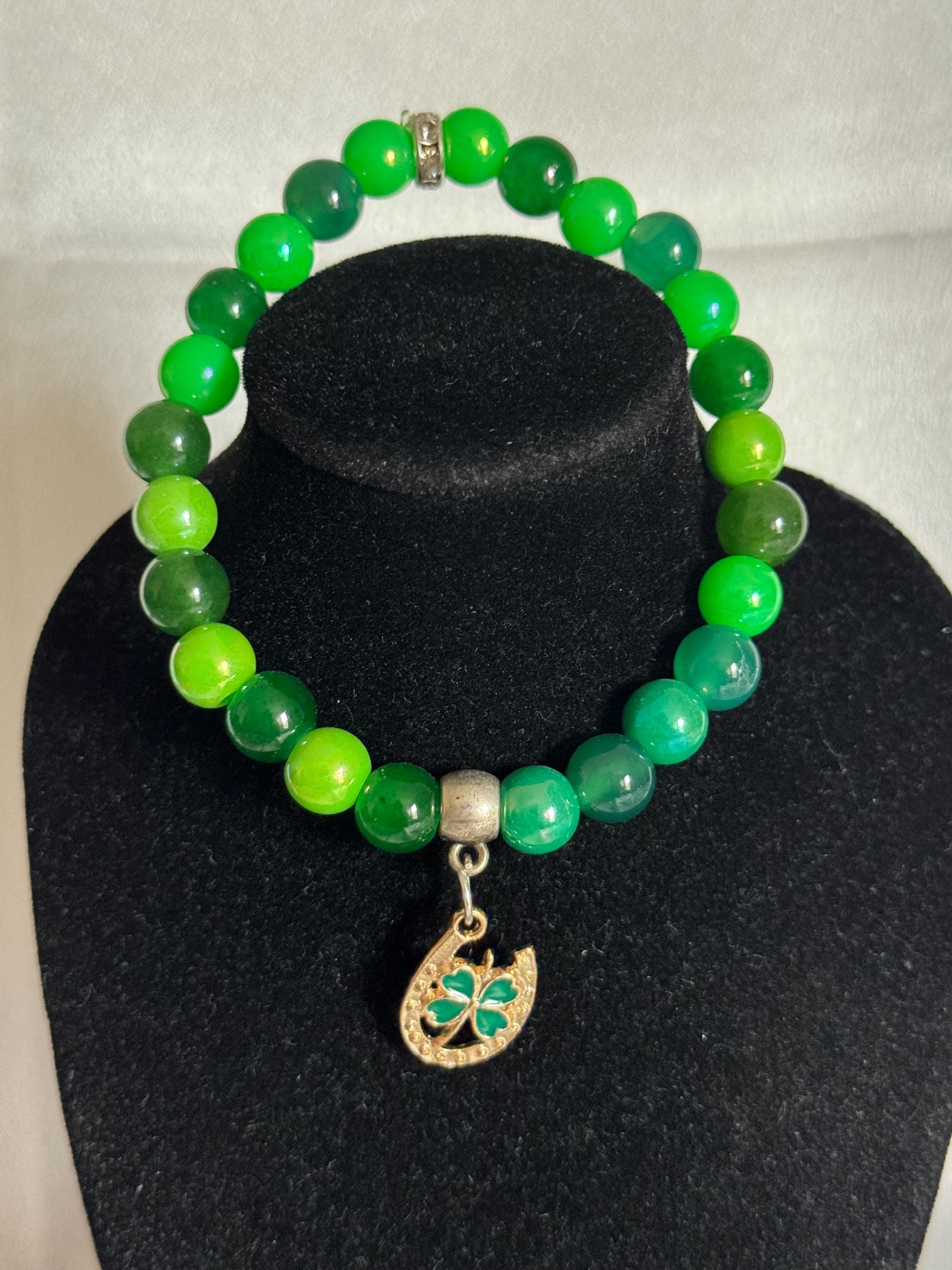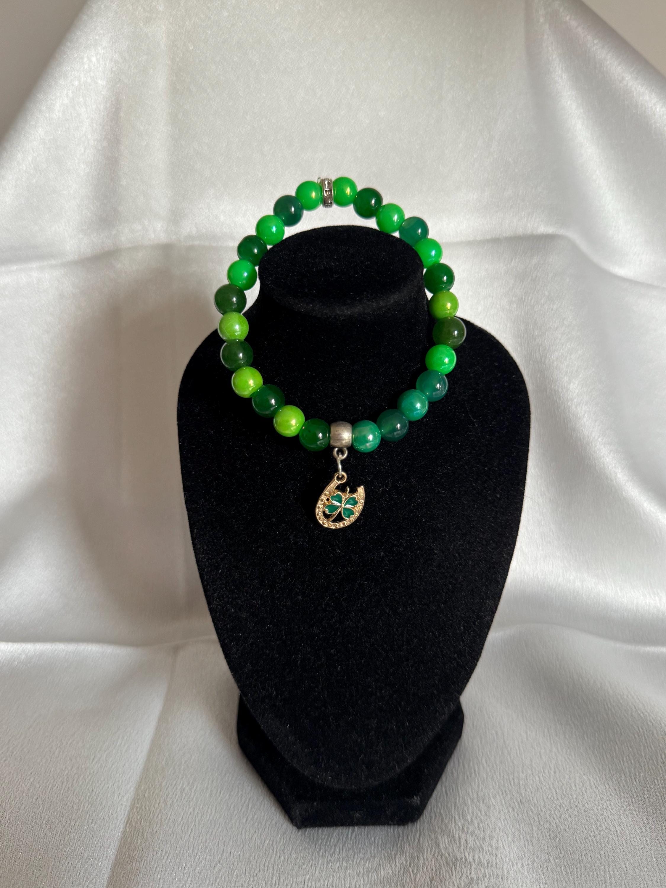 Celebrate St. Patrick’s Day—or your everyday love for Irish charm—with this handmade stretch bracelet featuring vibrant acrylic and glass beads paired with a festive themed charm. Measuring approximately 7.5 inches, it offers a comfortable fit and can be customized in both size and color to match your style.