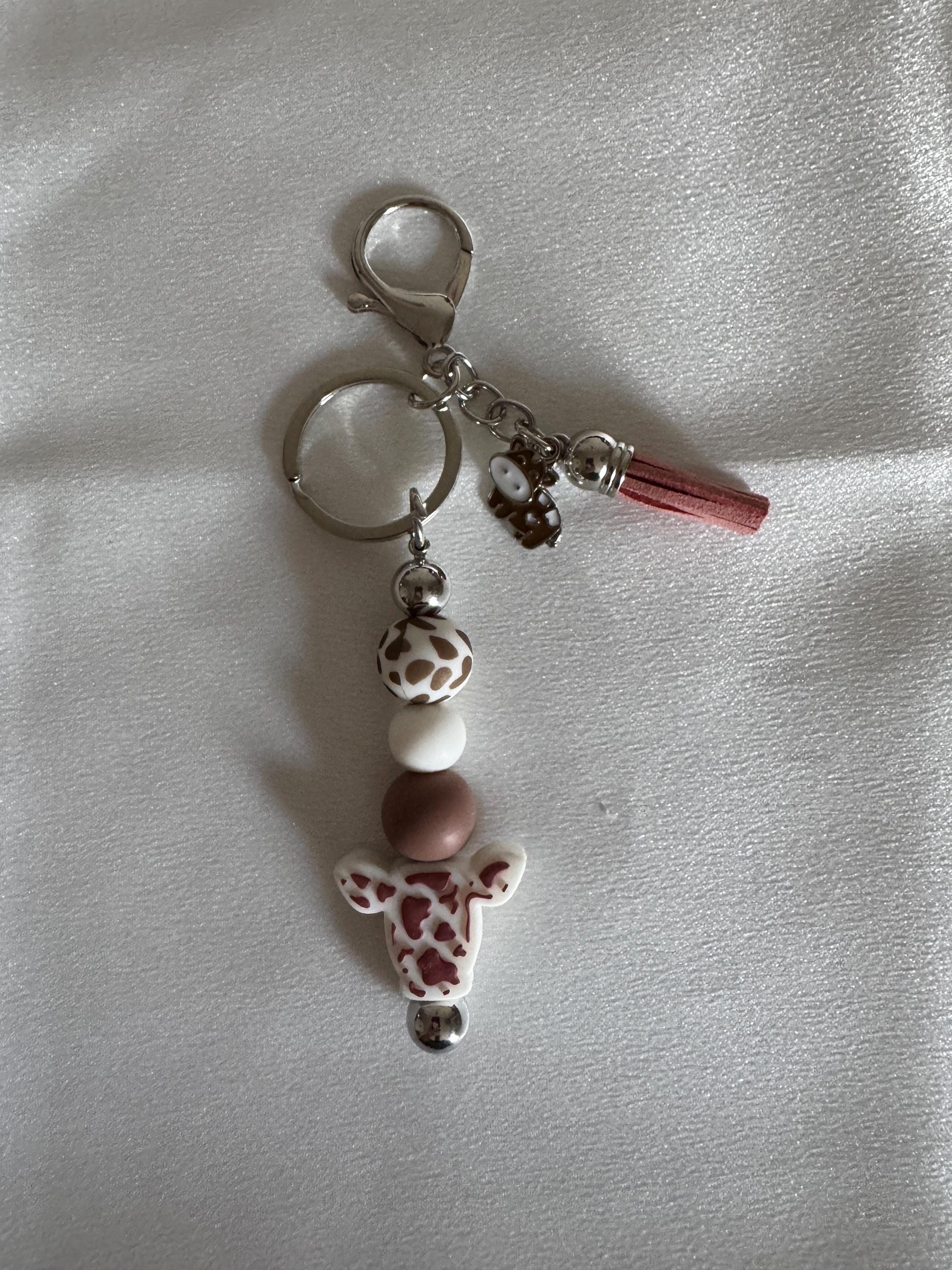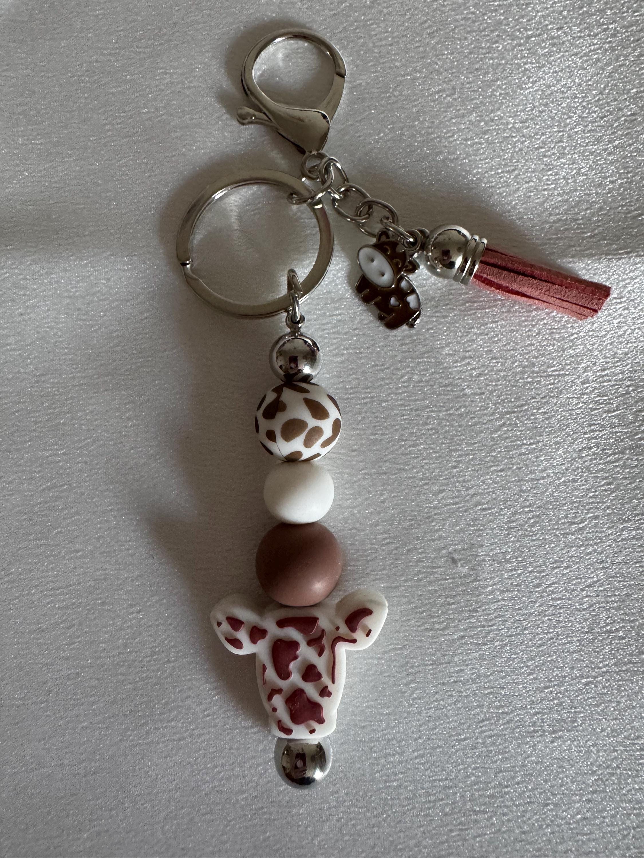 🔑 Silicone Beaded Keychain with Tassel and Cow Charm