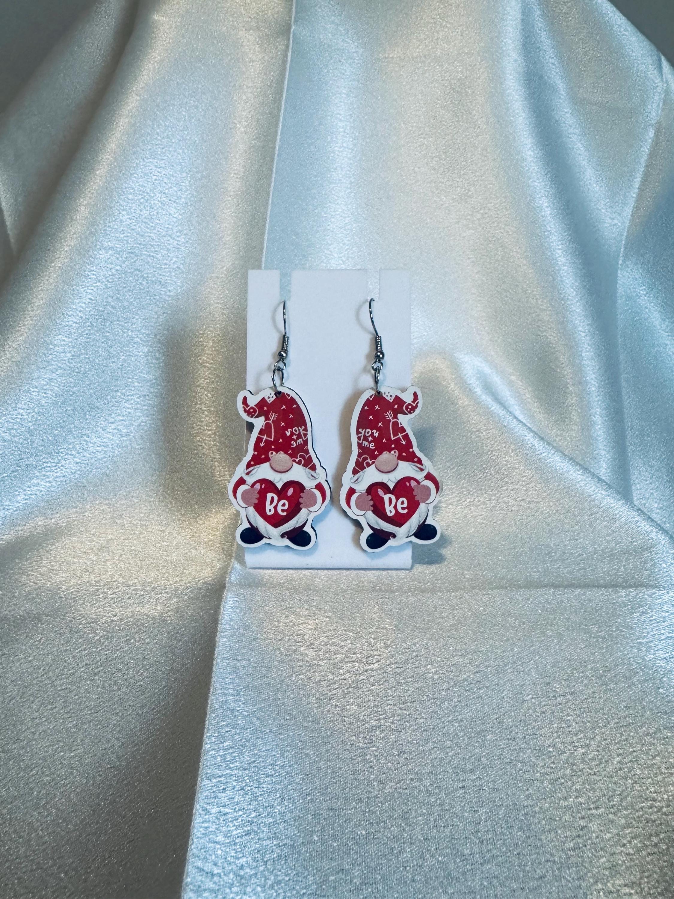 Gnome Be Heart Wooden Dangle Earrings