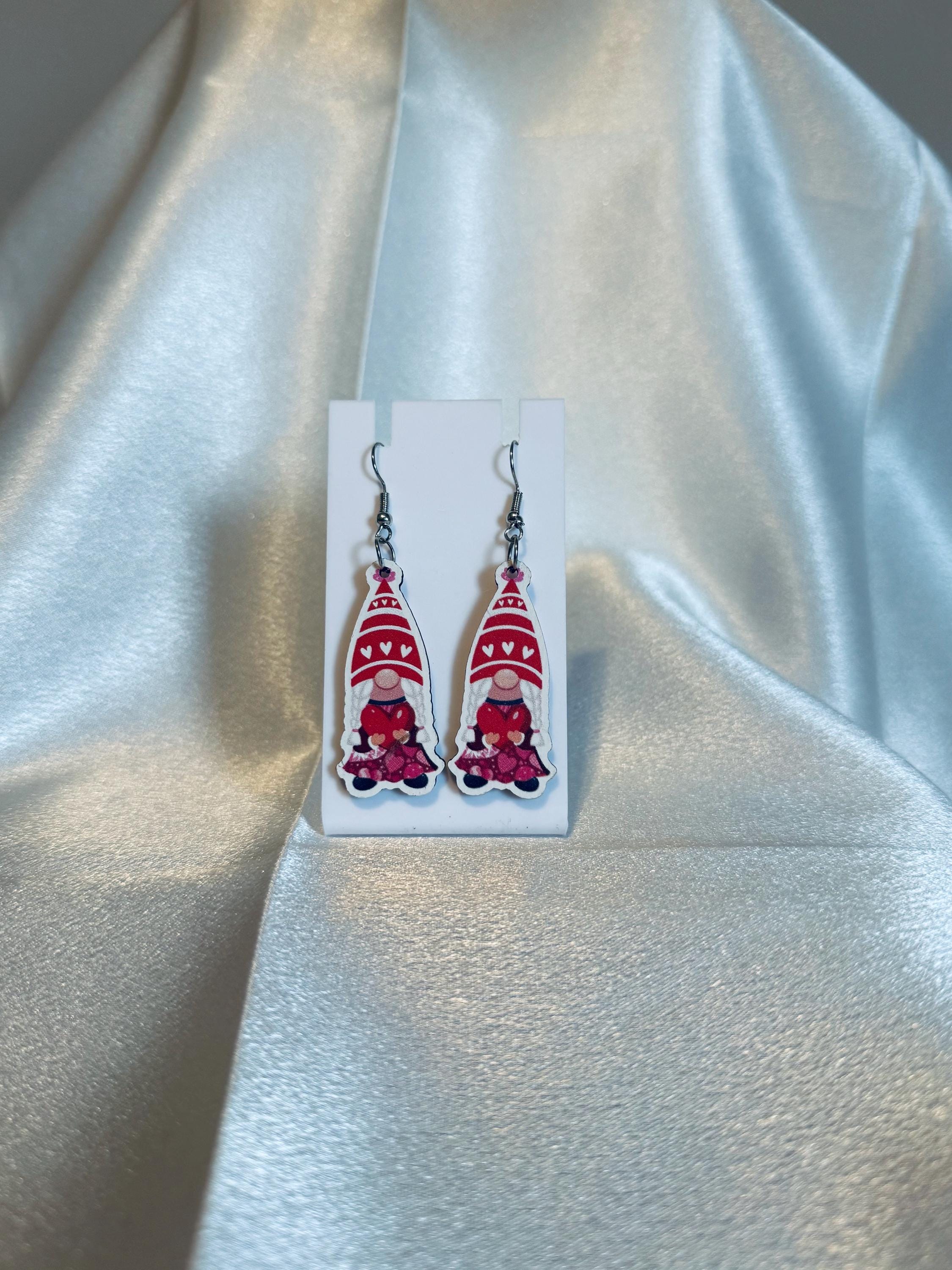 Gnome Holding Heart Wooden Dangle Earrings