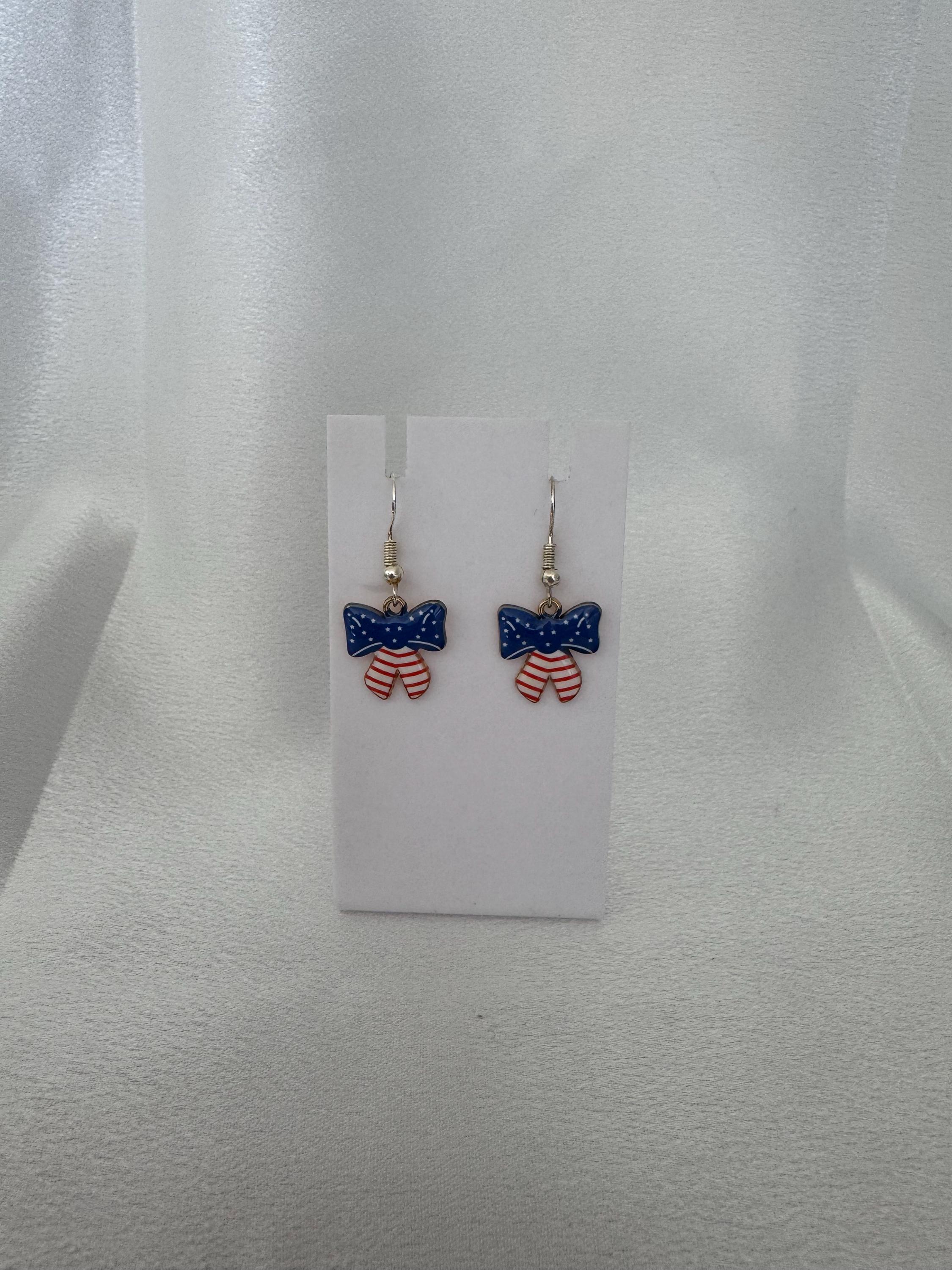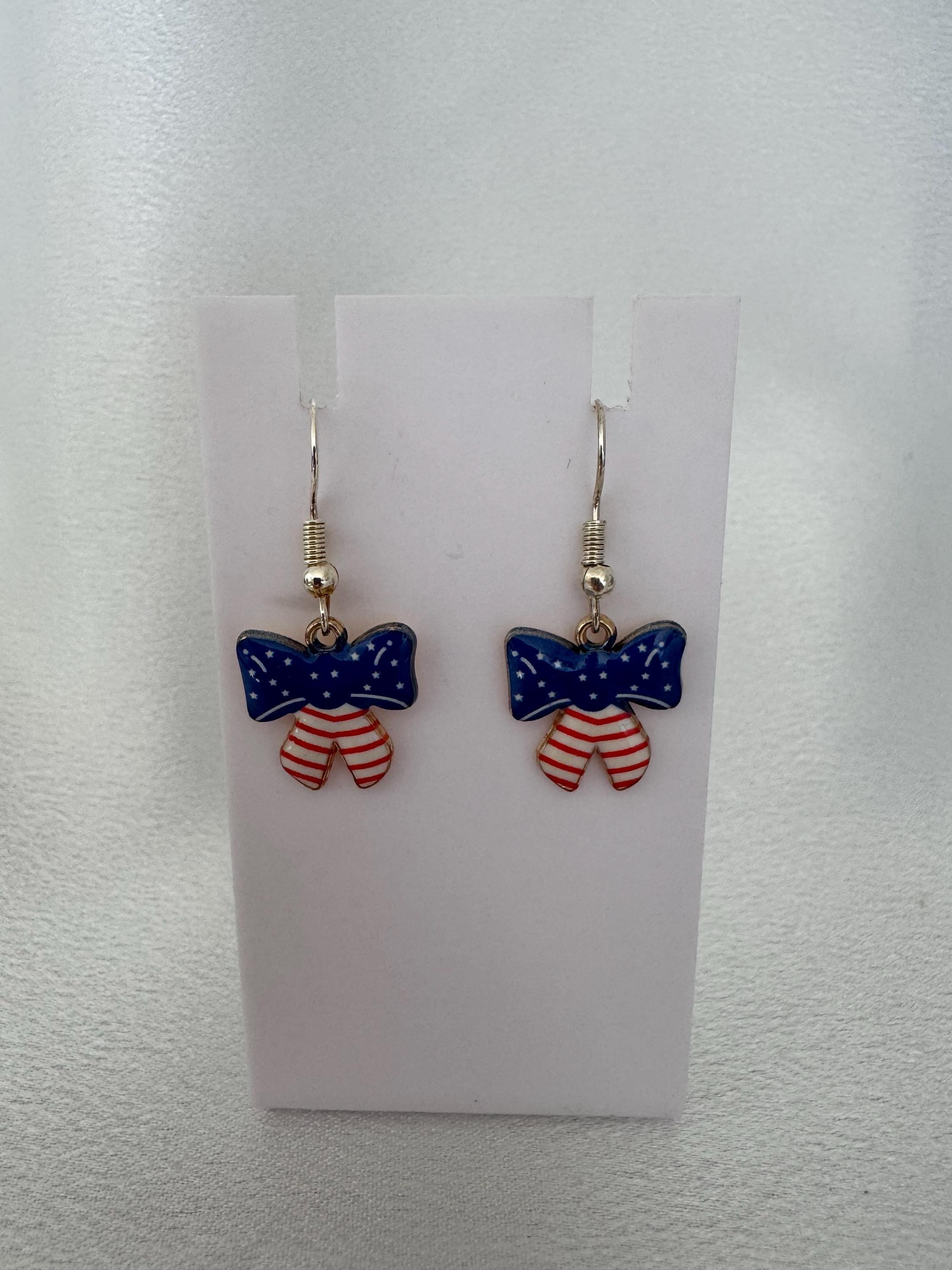 American Flag Bow Dangle Earrings