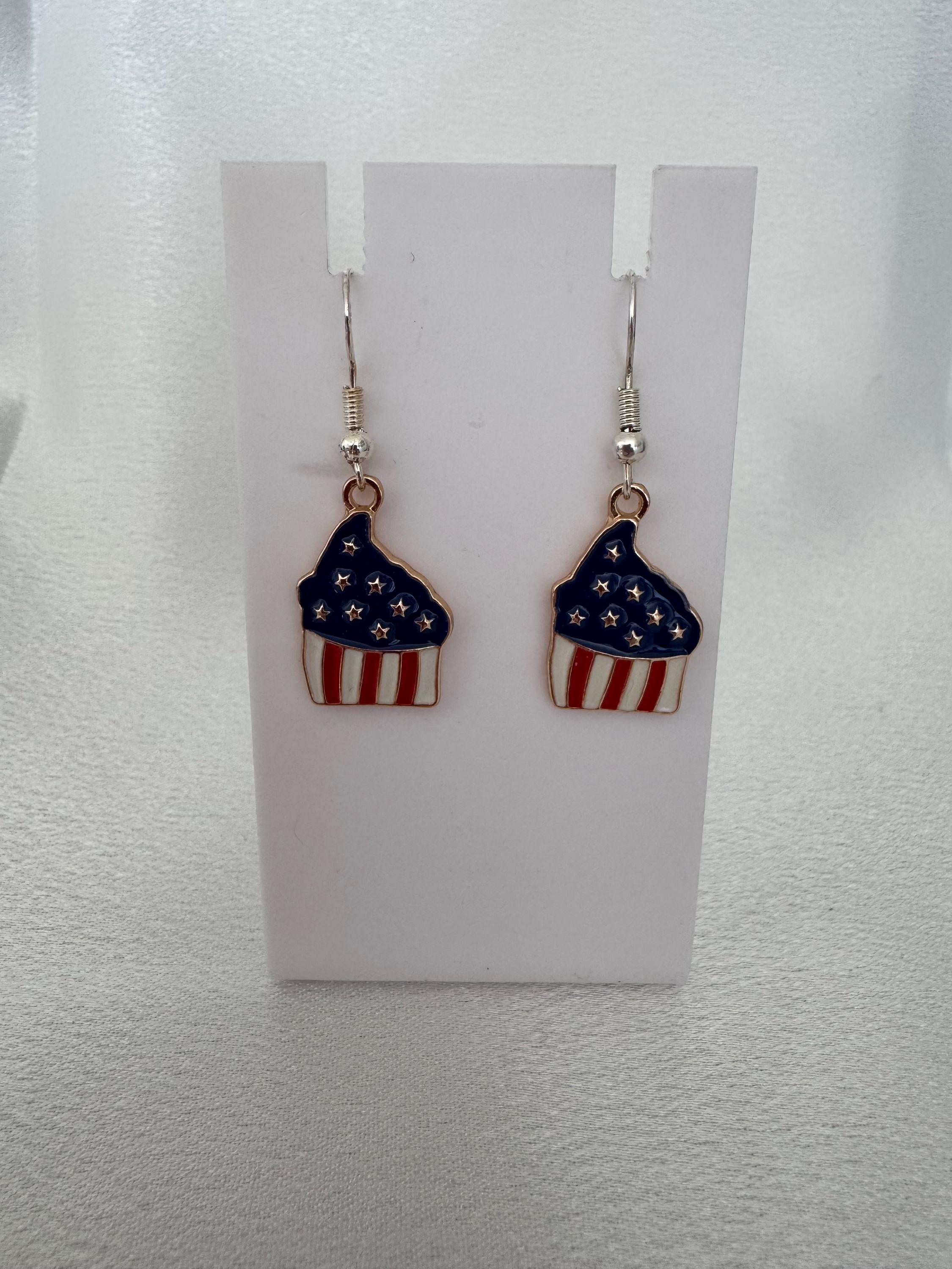 American Flag Cupcake Dangle Earrings