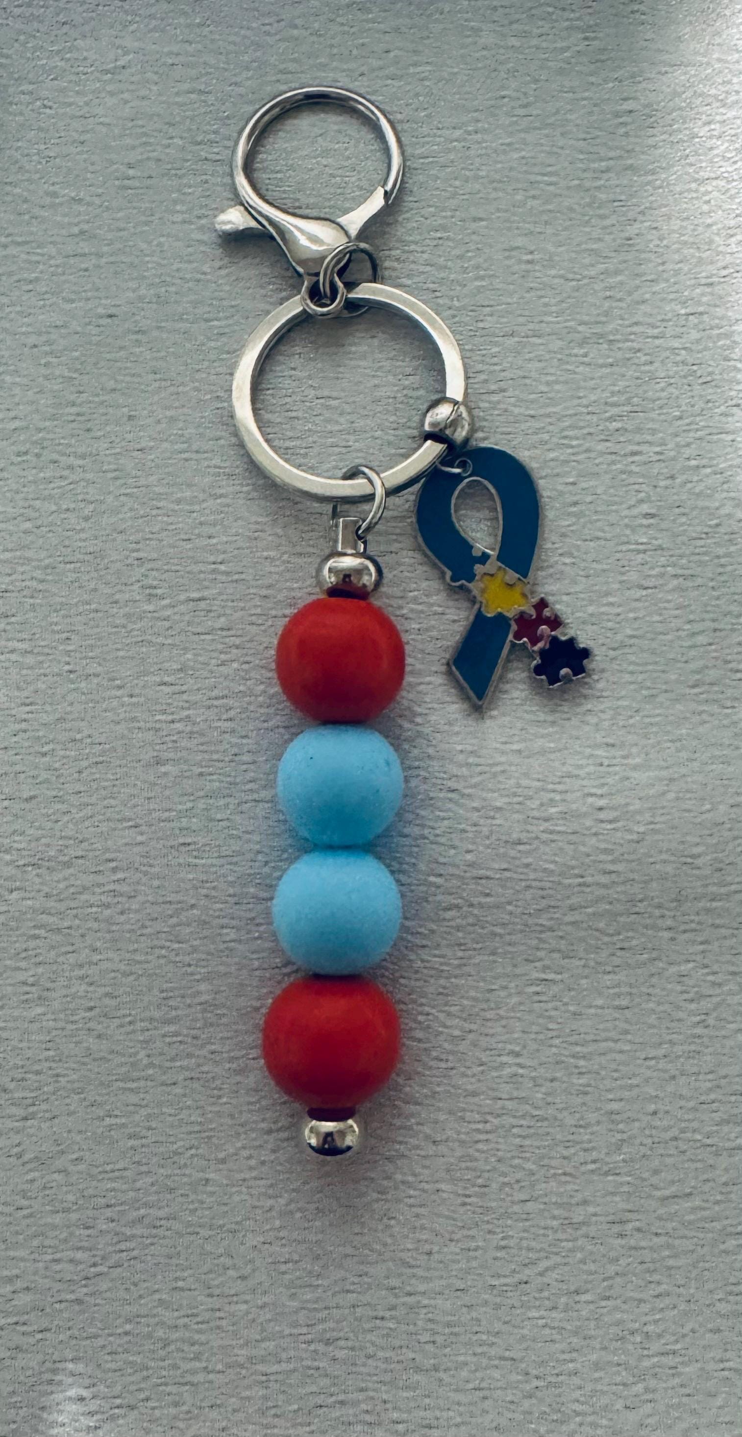 Silicon Bead Ribbon Charm Autism Keychain