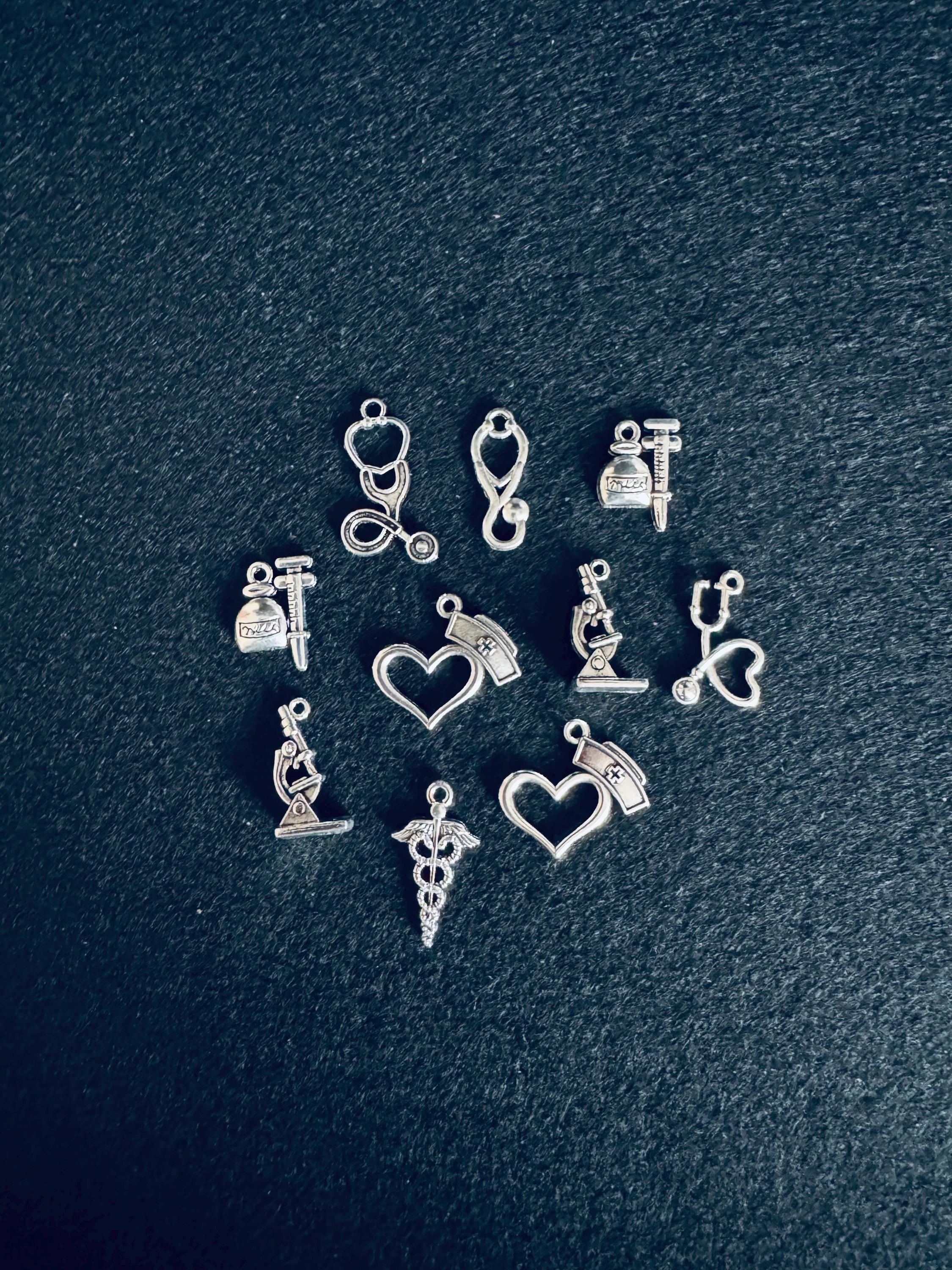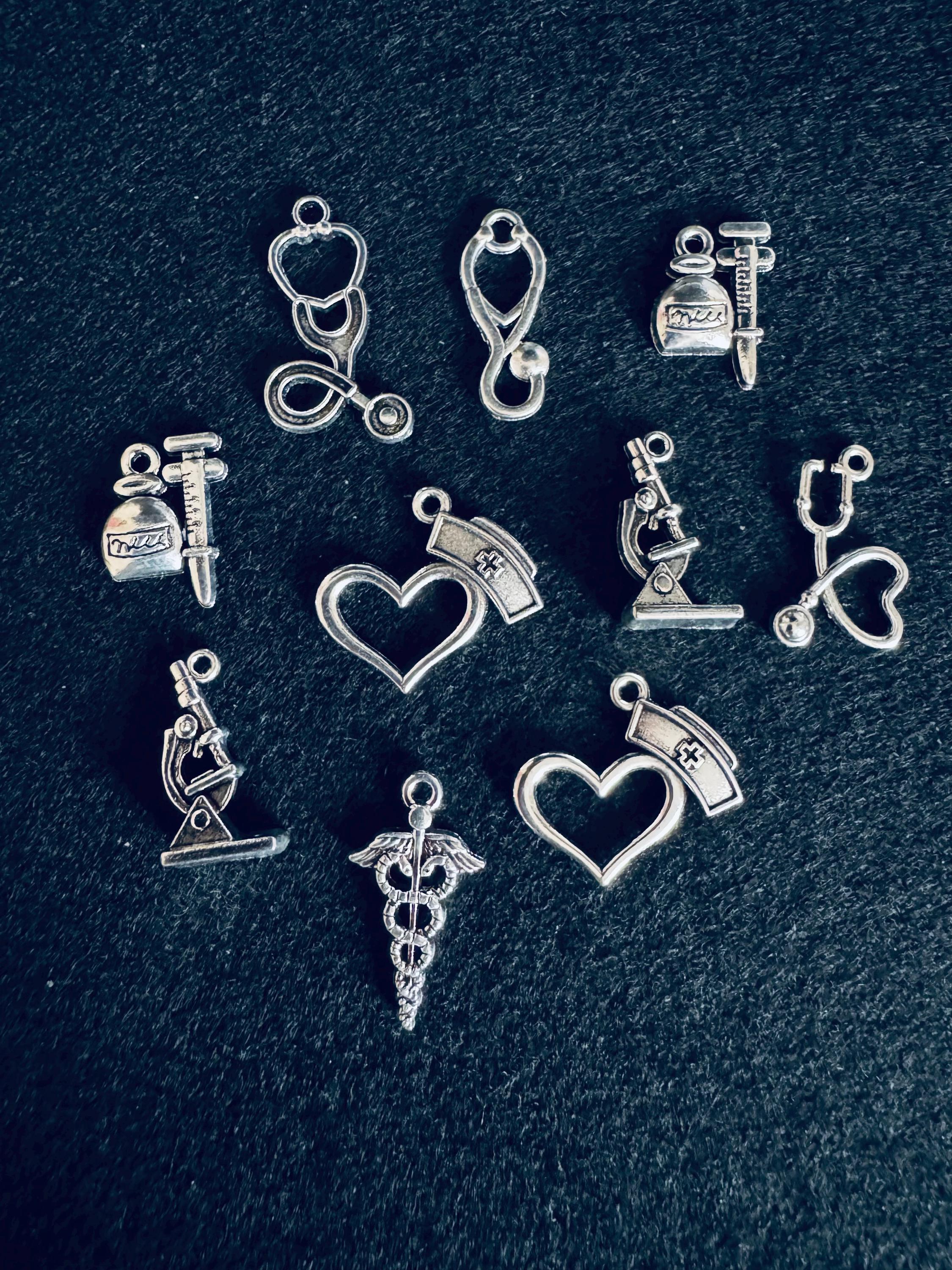 10 Piece Silver Medical Symbol Charms