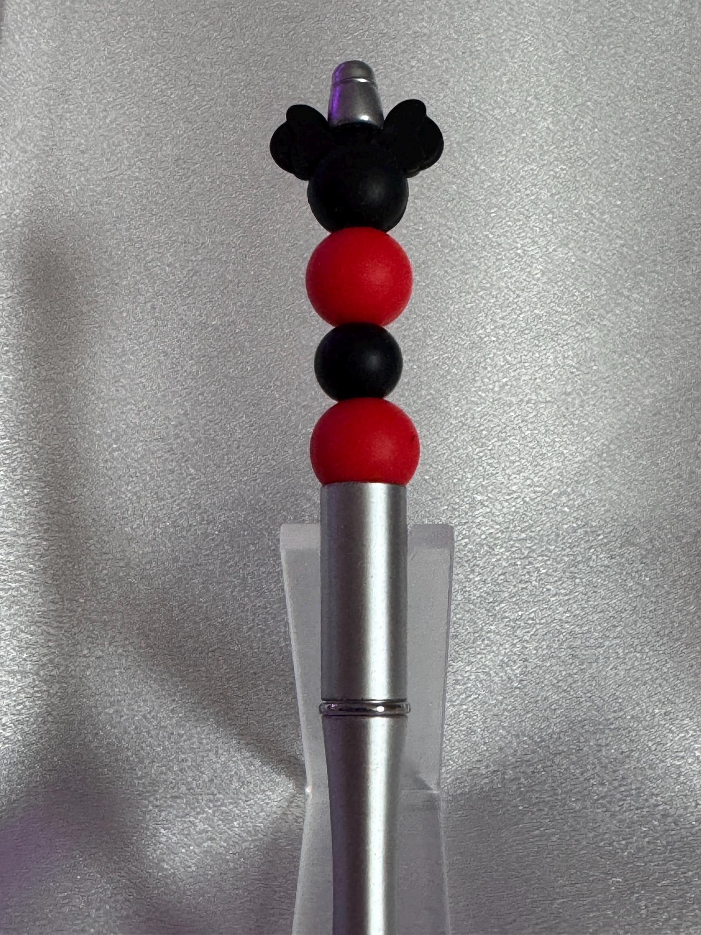 Black Colored Silicone Beaded Miinnie Mouse Writing Pen
