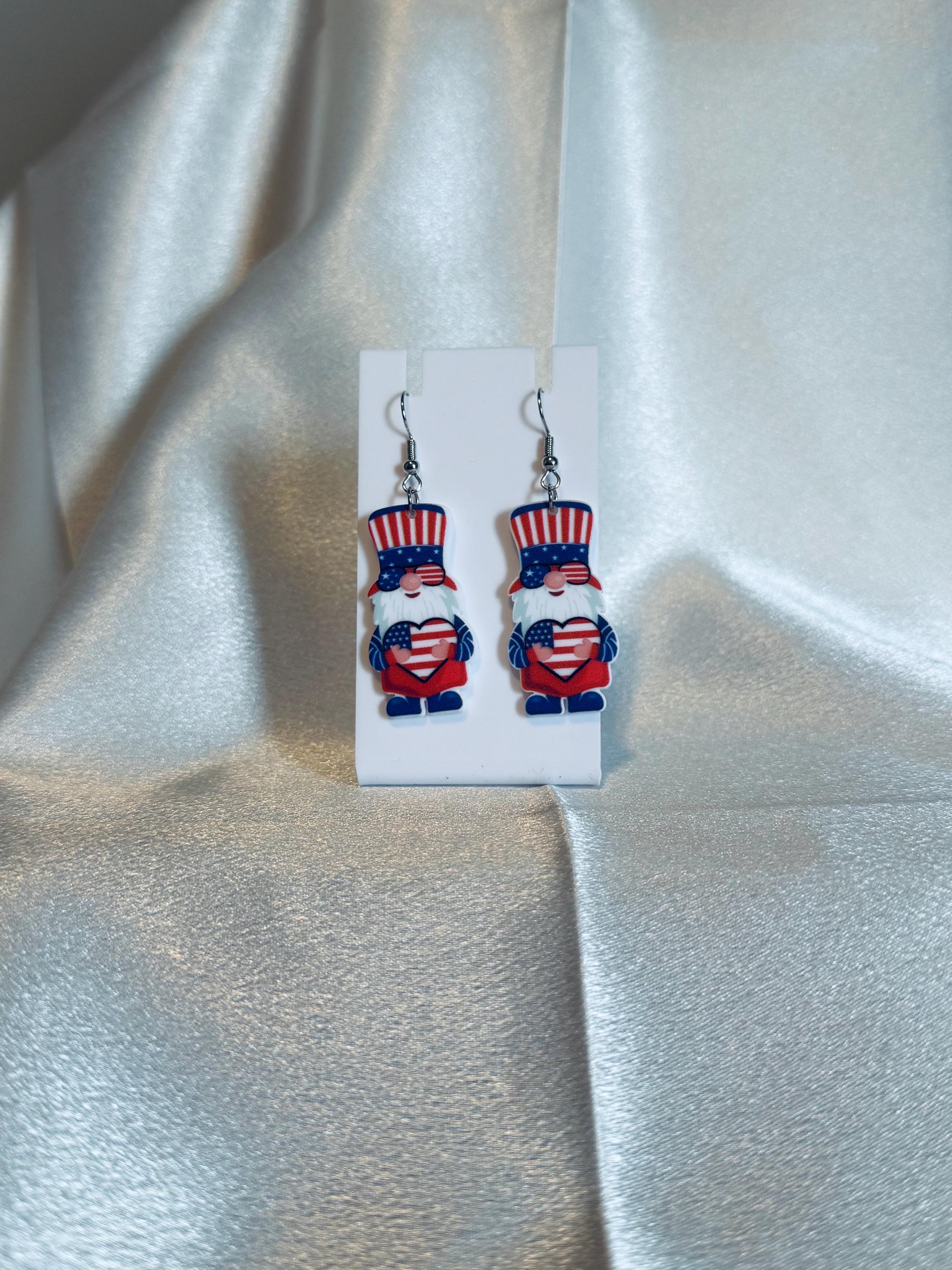 Acrylic I Love The USA Gnome Dangle Earrings