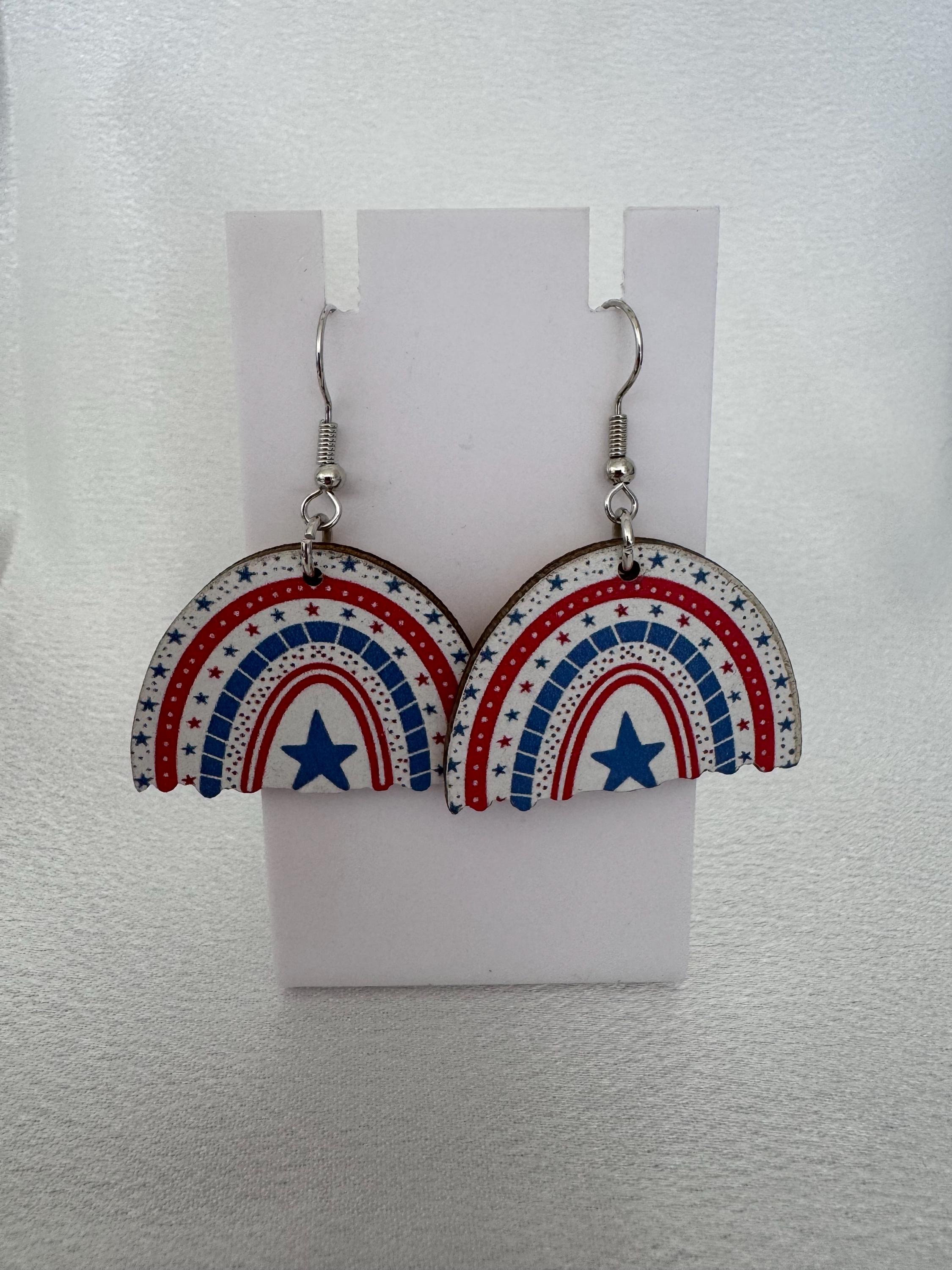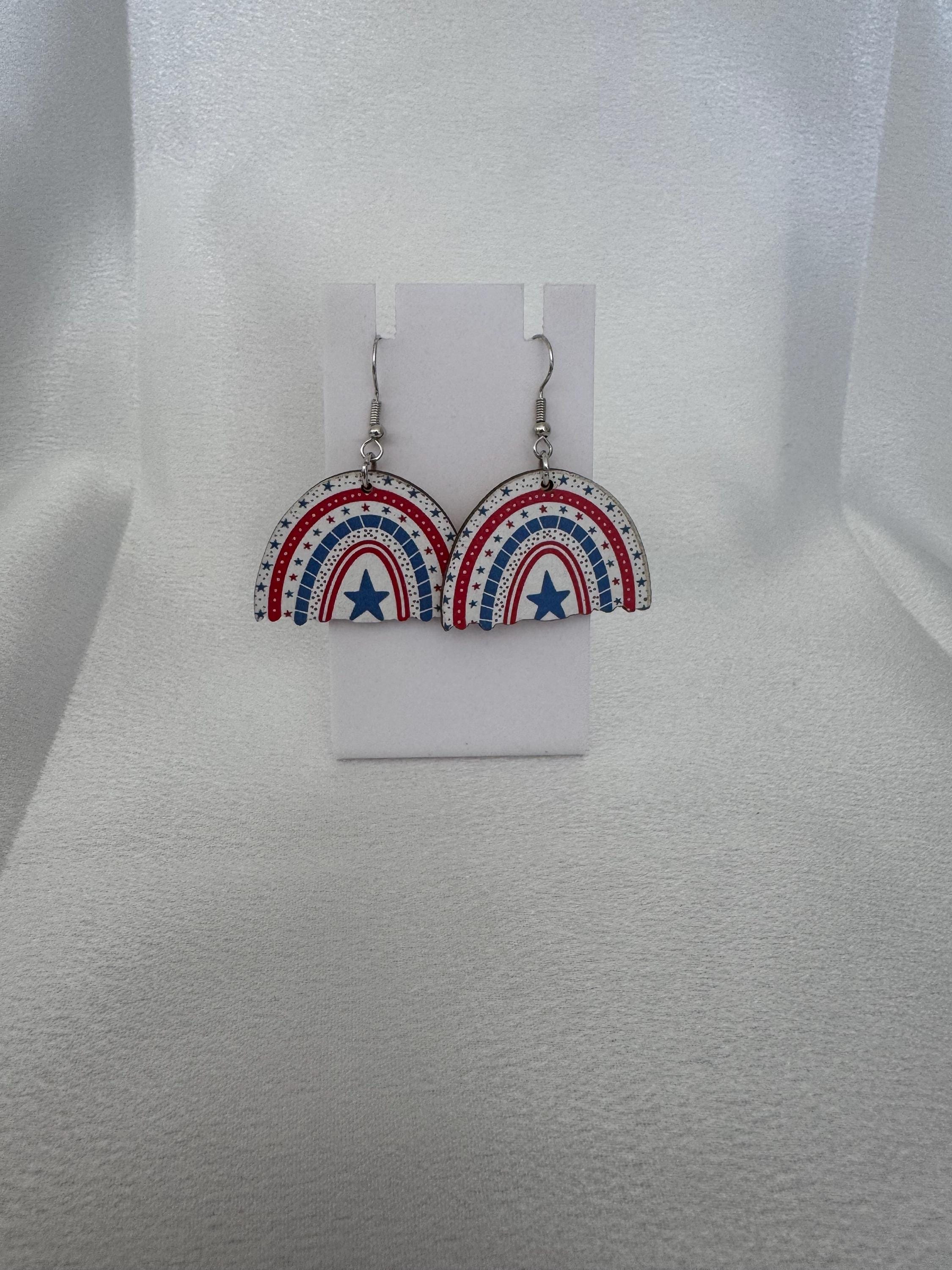 Celebrate American pride with these adorable wooden‑style dangle earrings—perfect for military families, patriotic holidays, or adding a rustic red, white, and blue touch to your everyday look. Designed to be hypoallergenic, they’re safe, gentle, and comfortable for sensitive ears while offering a lightweight, stylish finish.