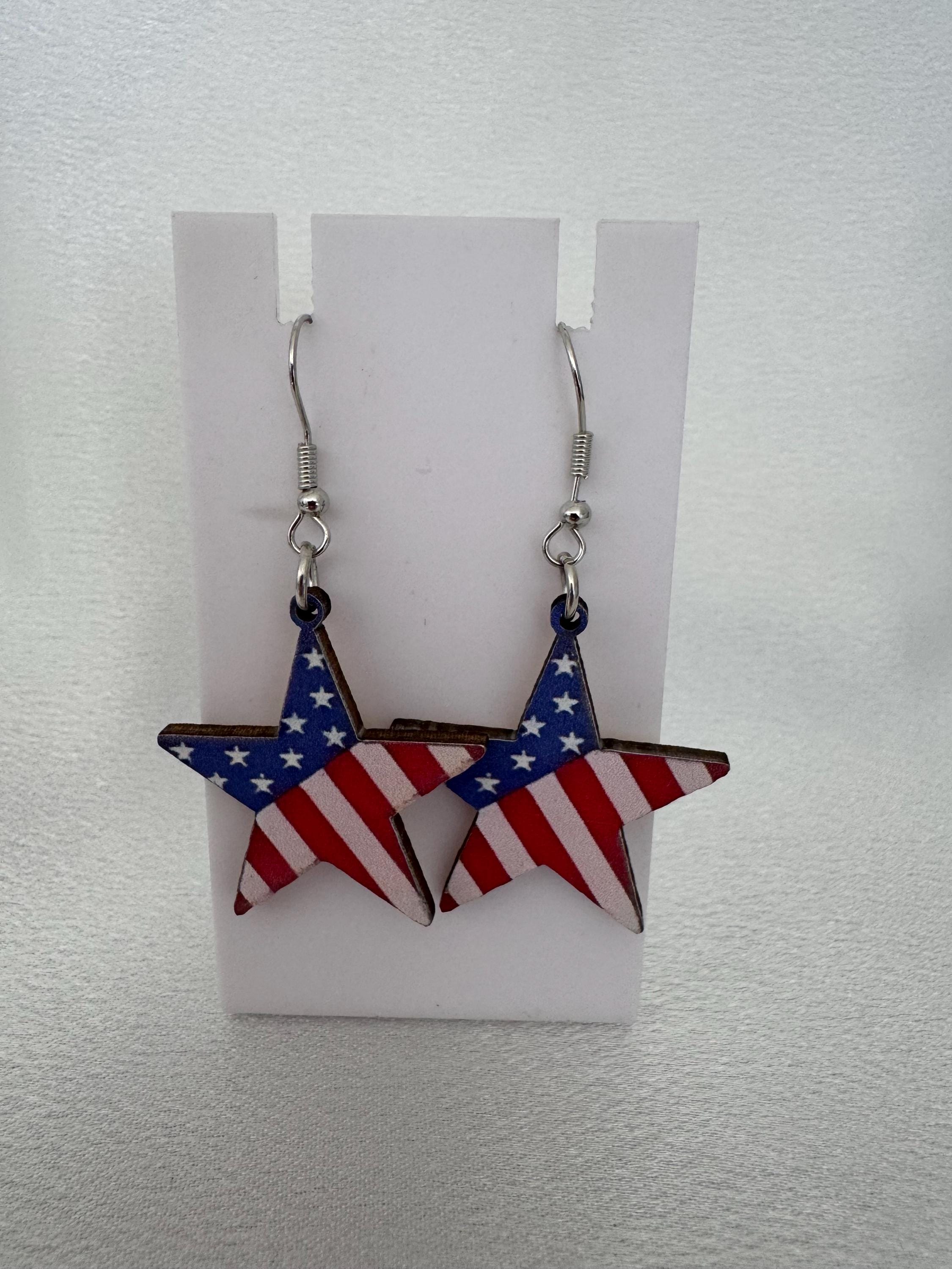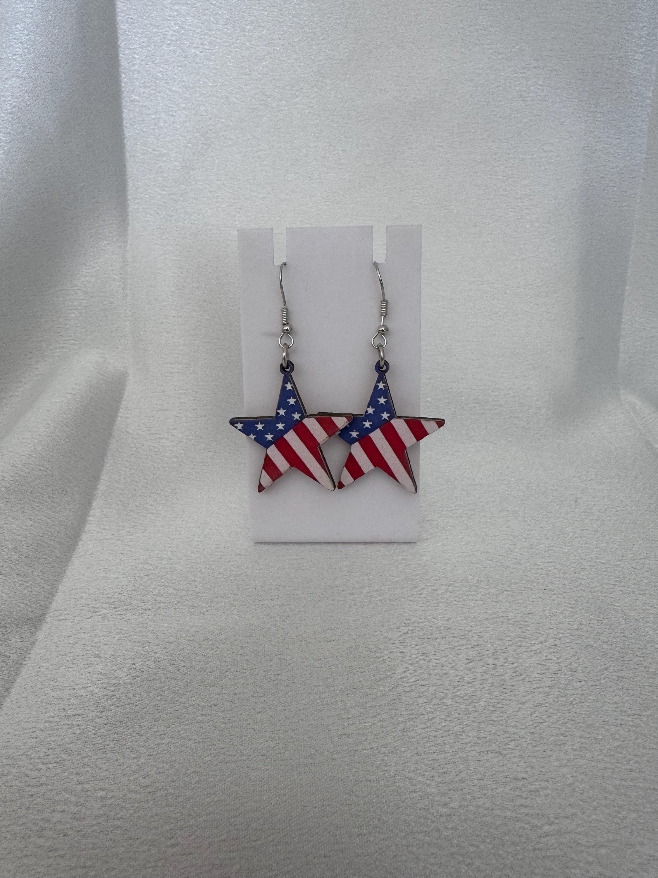 Wooden American Stars Dangle Earrings