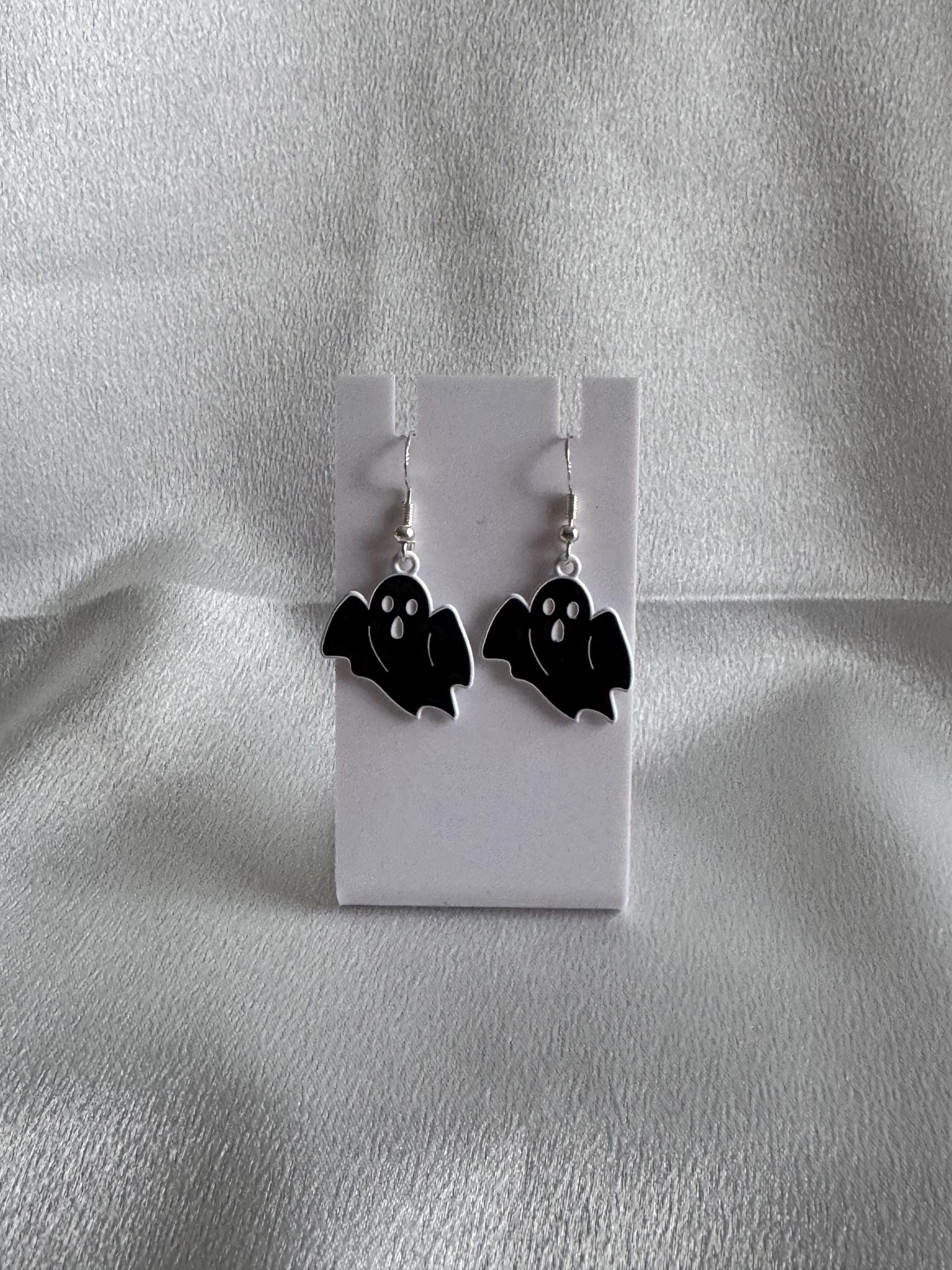 Halloween Black Ghost Dangle Earrings. Hypoallergenic