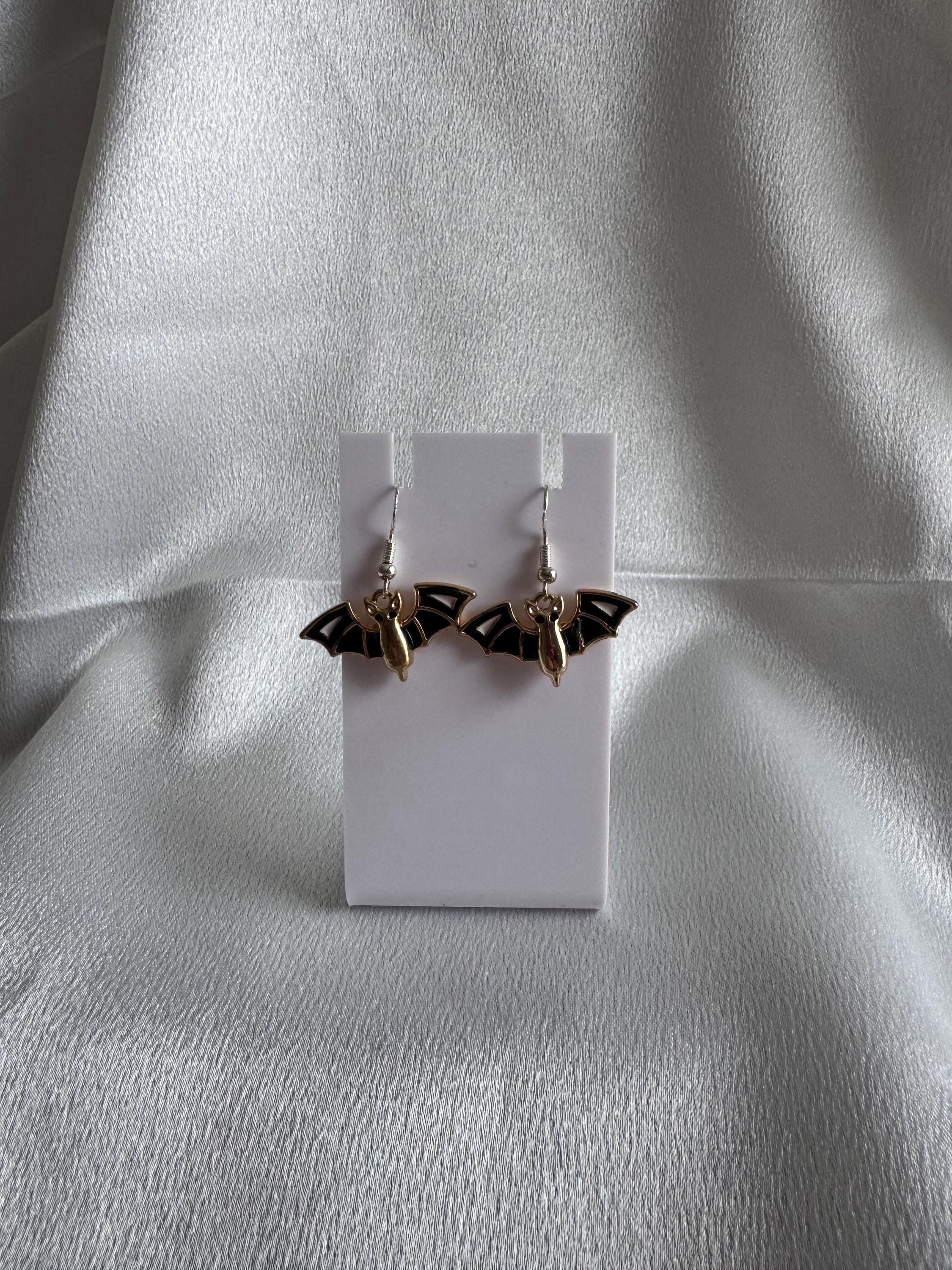 Halloween Black Bat Dangle Earrings. Hypoallergenic