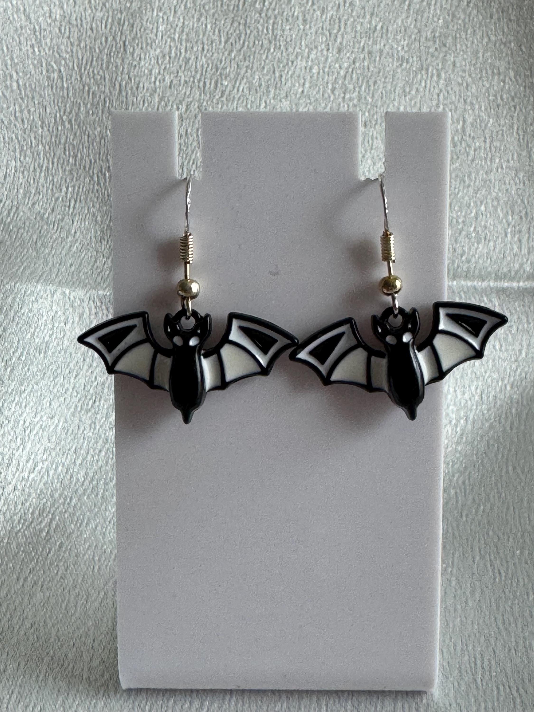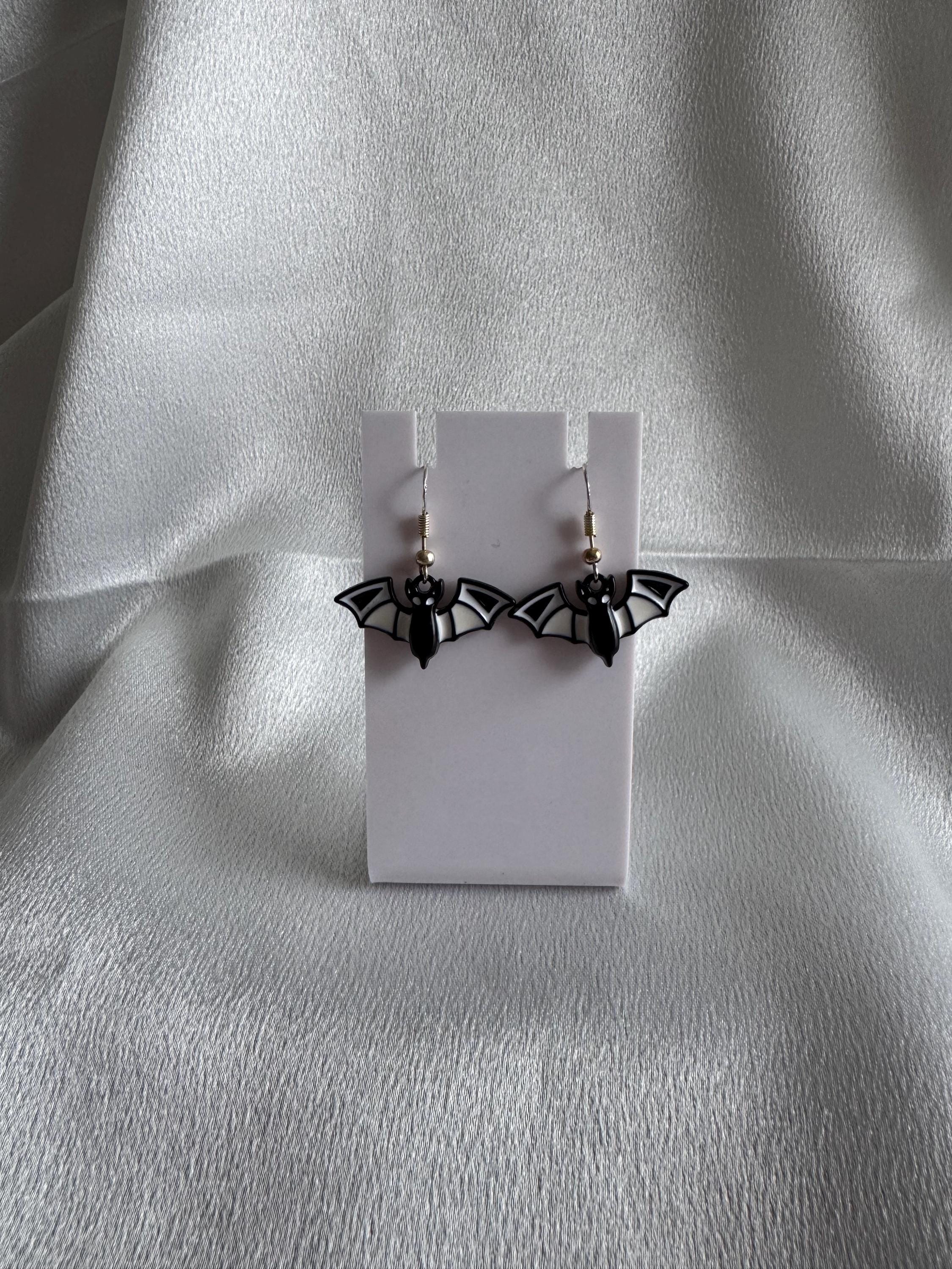 Halloween White Bat Dangle Earrings. Hypoallergenic