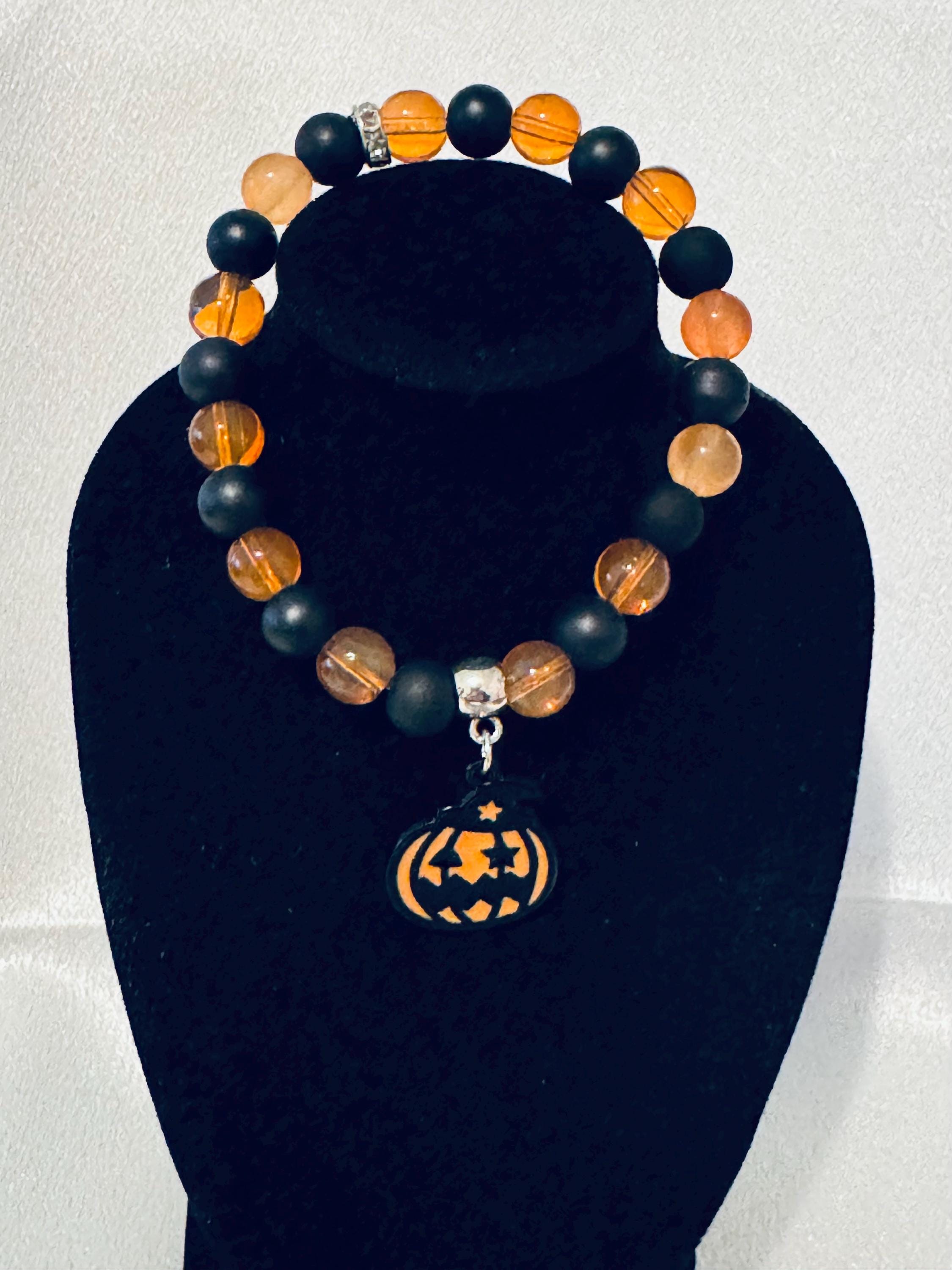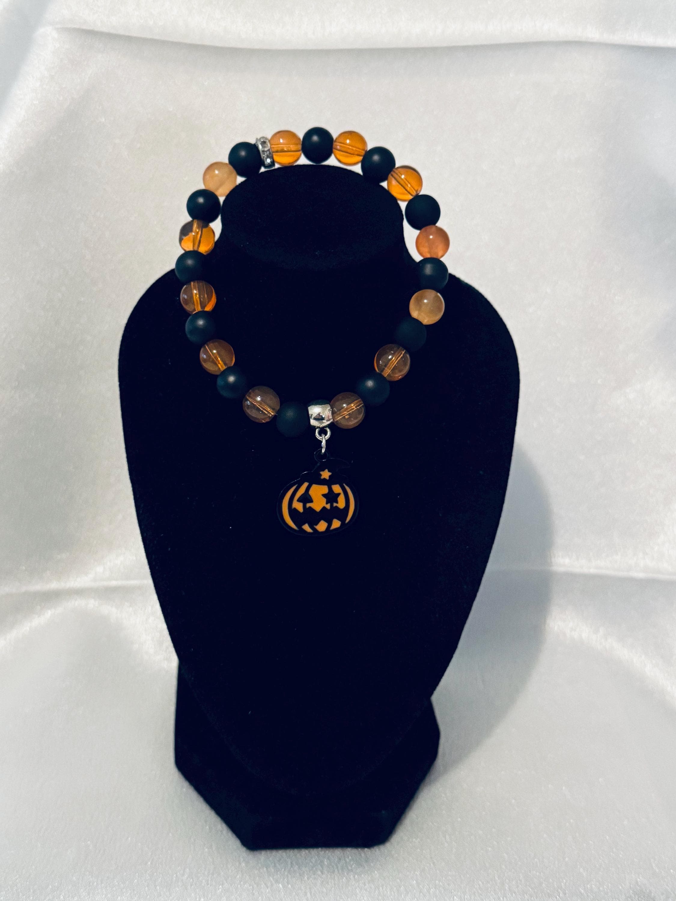Add some spookyâfun flair to your costume or everyday outfits with this adorable Halloweenâthemed stretch bracelet. Made with a mix of acrylic and glass beads and finished with a festive charm, itâs the perfect accessory for celebrating the season in style. Measuring approximately 7.5 inches, it offers a comfortable and flexible fit.