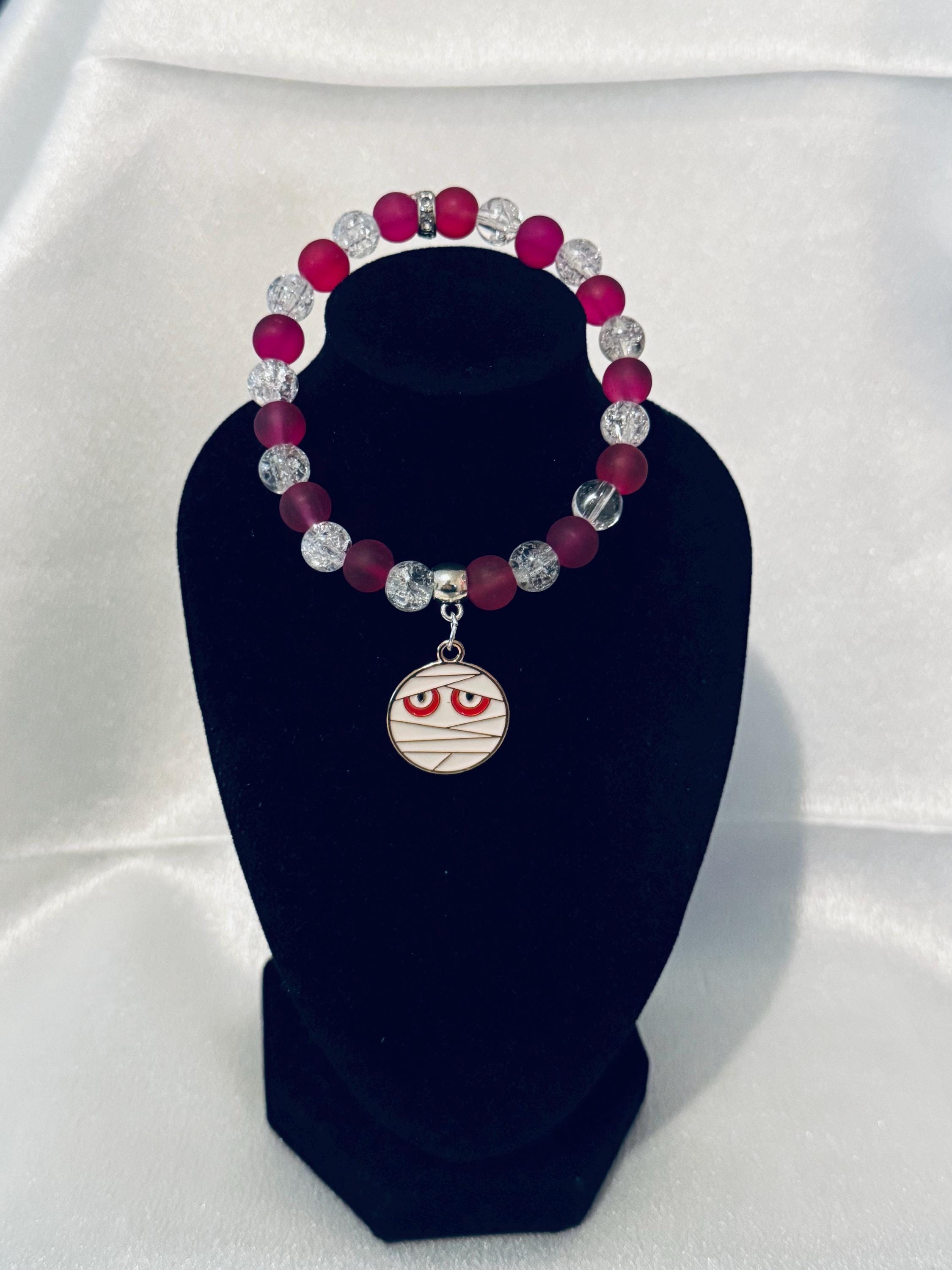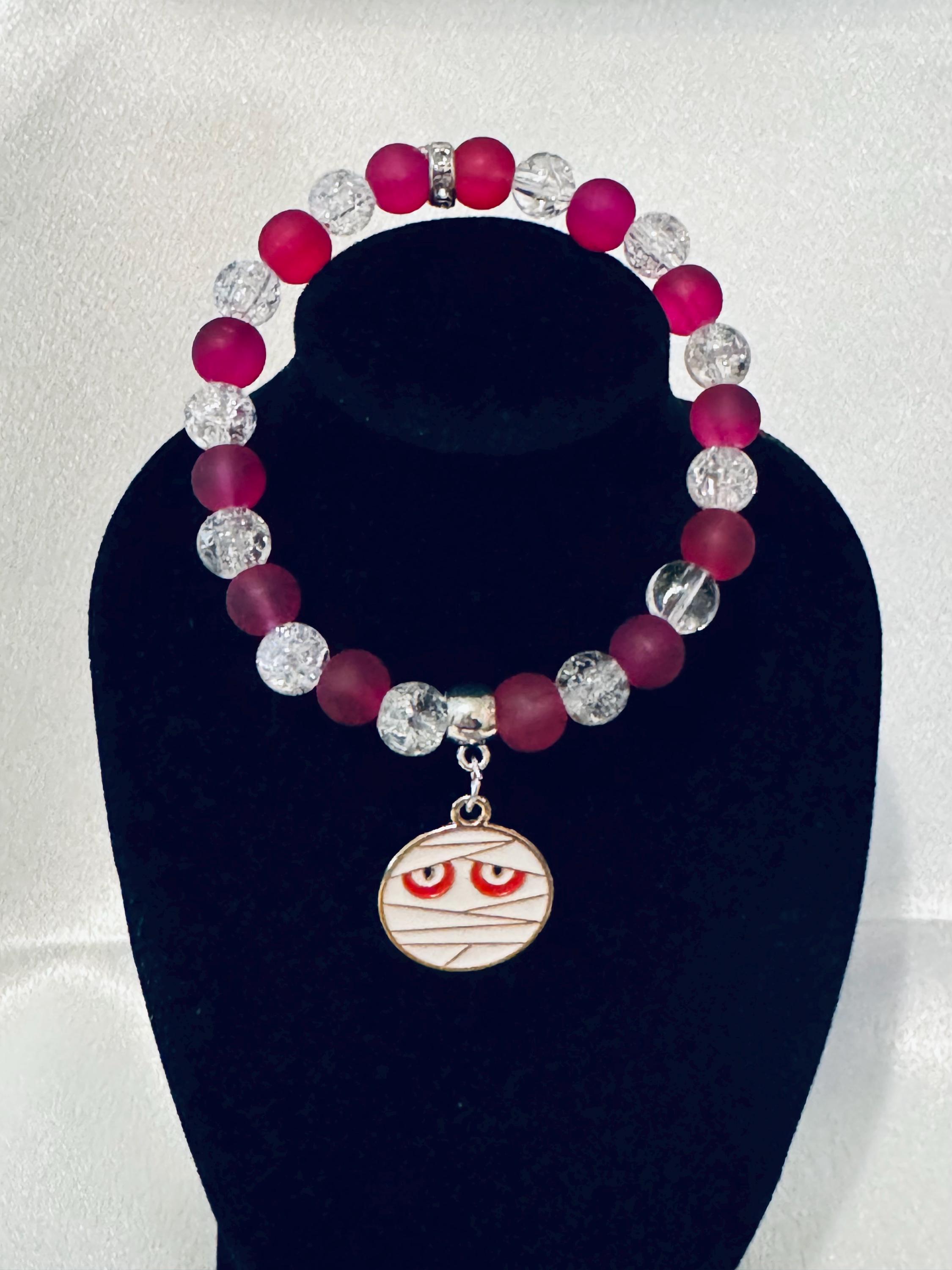 Add some spooky‑fun flair to your costume or everyday outfits with this adorable Halloween‑themed stretch bracelet. Made with a mix of acrylic and glass beads and finished with a festive charm, it’s the perfect accessory for celebrating the season in style. Measuring approximately 7.5 inches, it offers a comfortable and flexible fit.