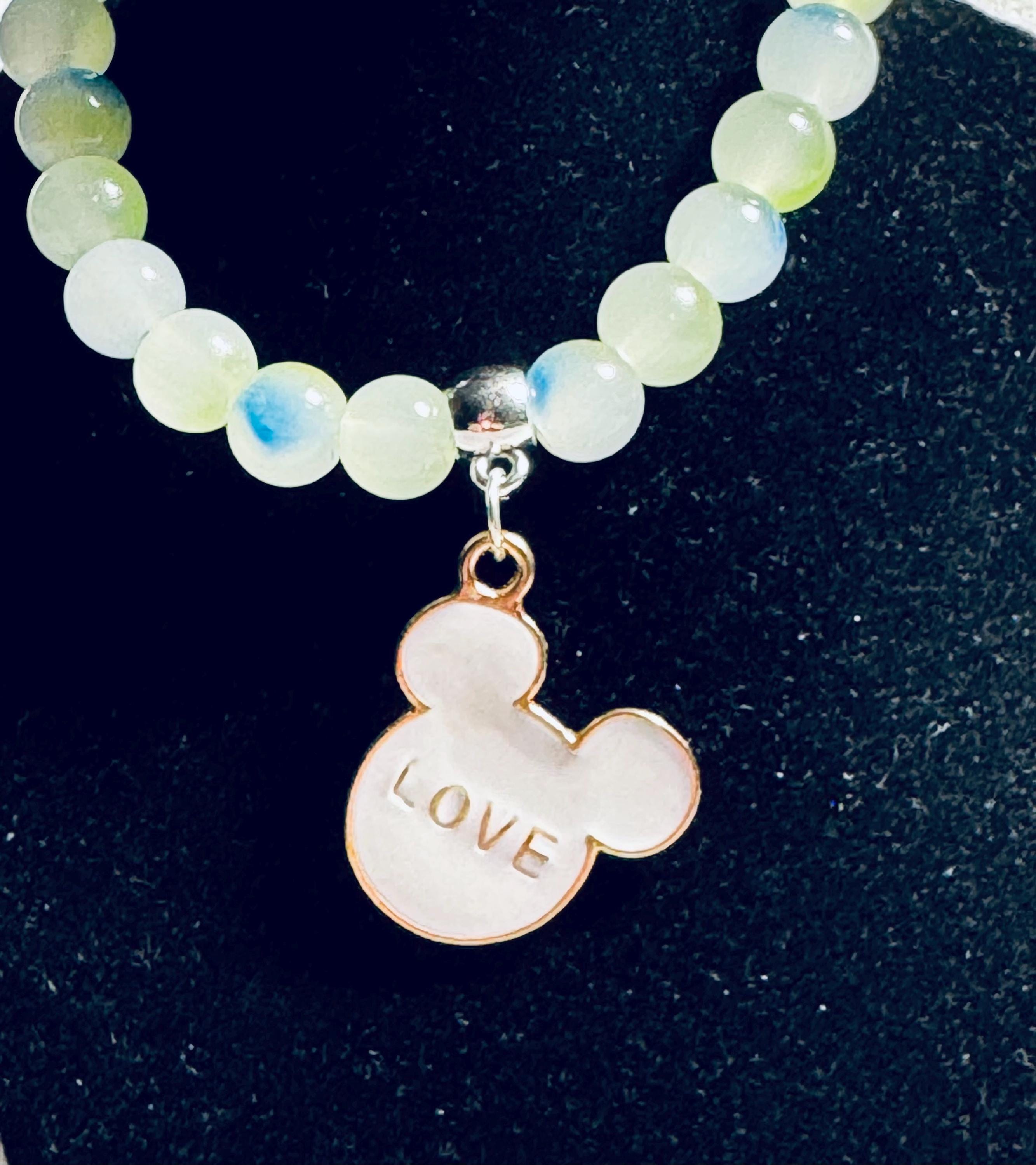 Add a touch of magic to your outfit with this handmade Mickey‑inspired charm bracelet, crafted with colorful acrylic and glass beads on a comfortable stretch band. Perfect for Disney fans of all ages, this bracelet measures approximately 7.5 inches and can be customized in both size and color to match your unique style.