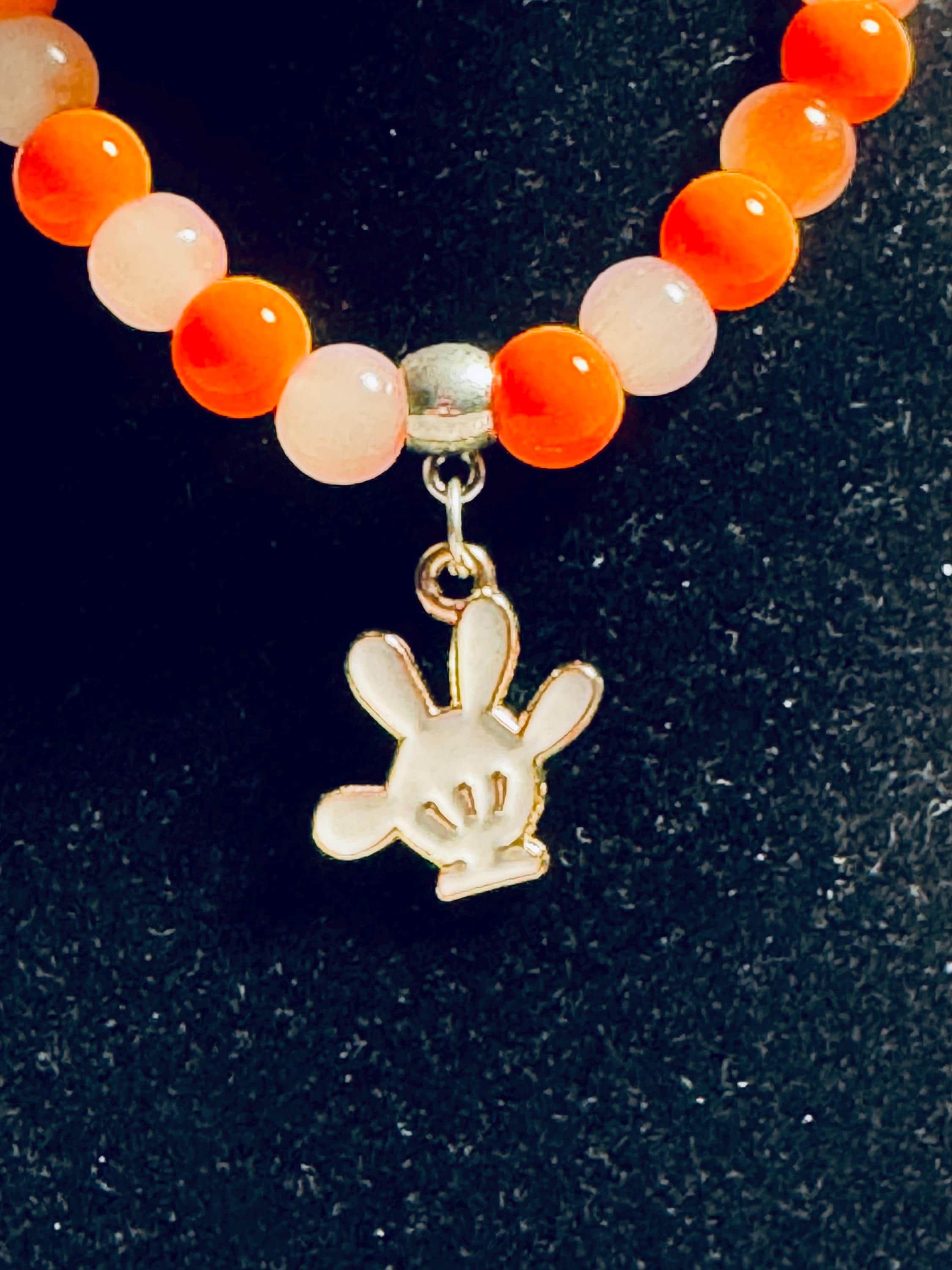 Add a touch of magic to your outfit with this handmade Mickey‑inspired charm bracelet, crafted with colorful acrylic and glass beads on a comfortable stretch band. Perfect for Disney fans of all ages, this bracelet measures approximately 7.5 inches and can be customized in both size and color to match your unique style.