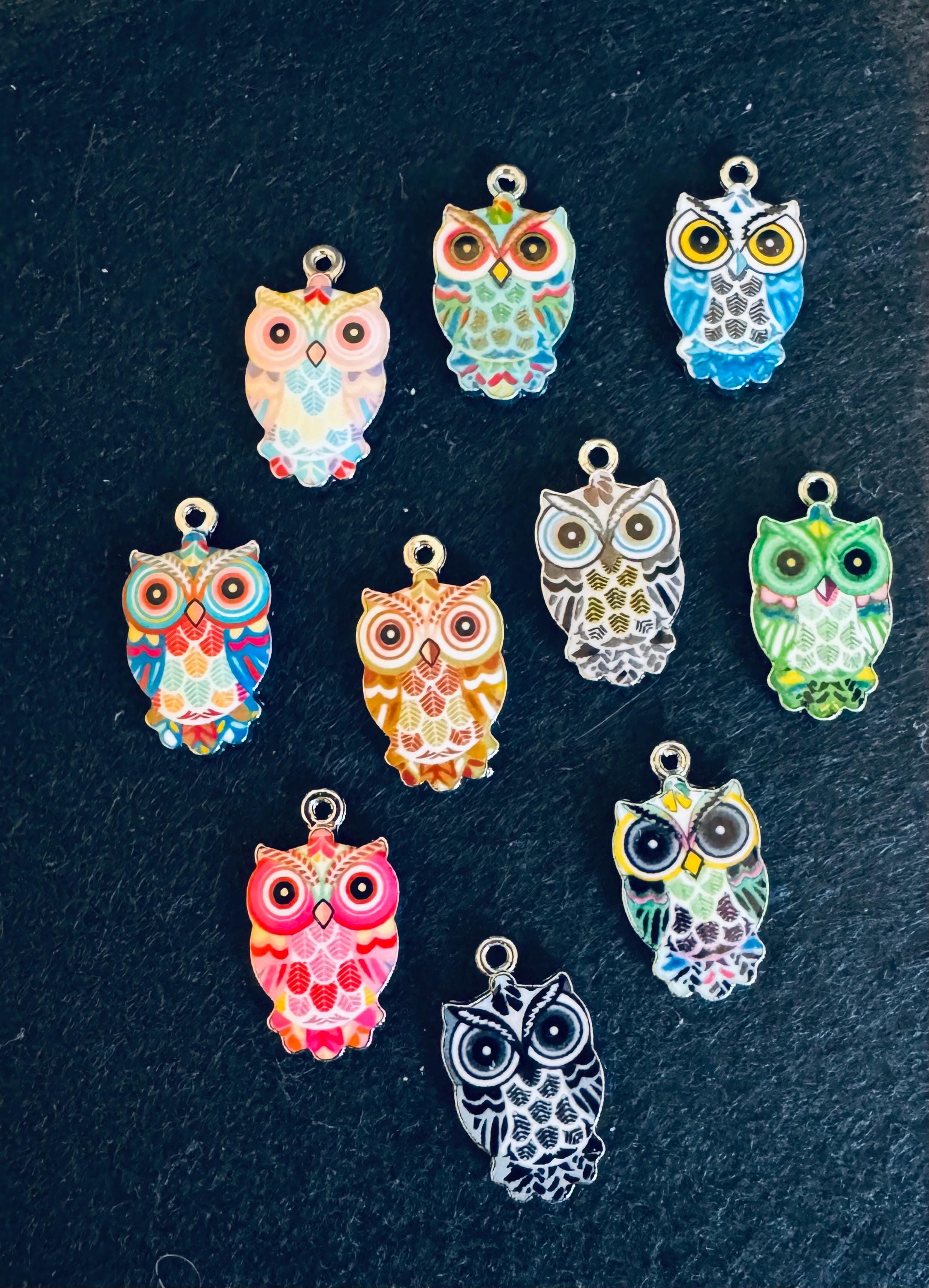 10 Piece Colorful Owl Charms