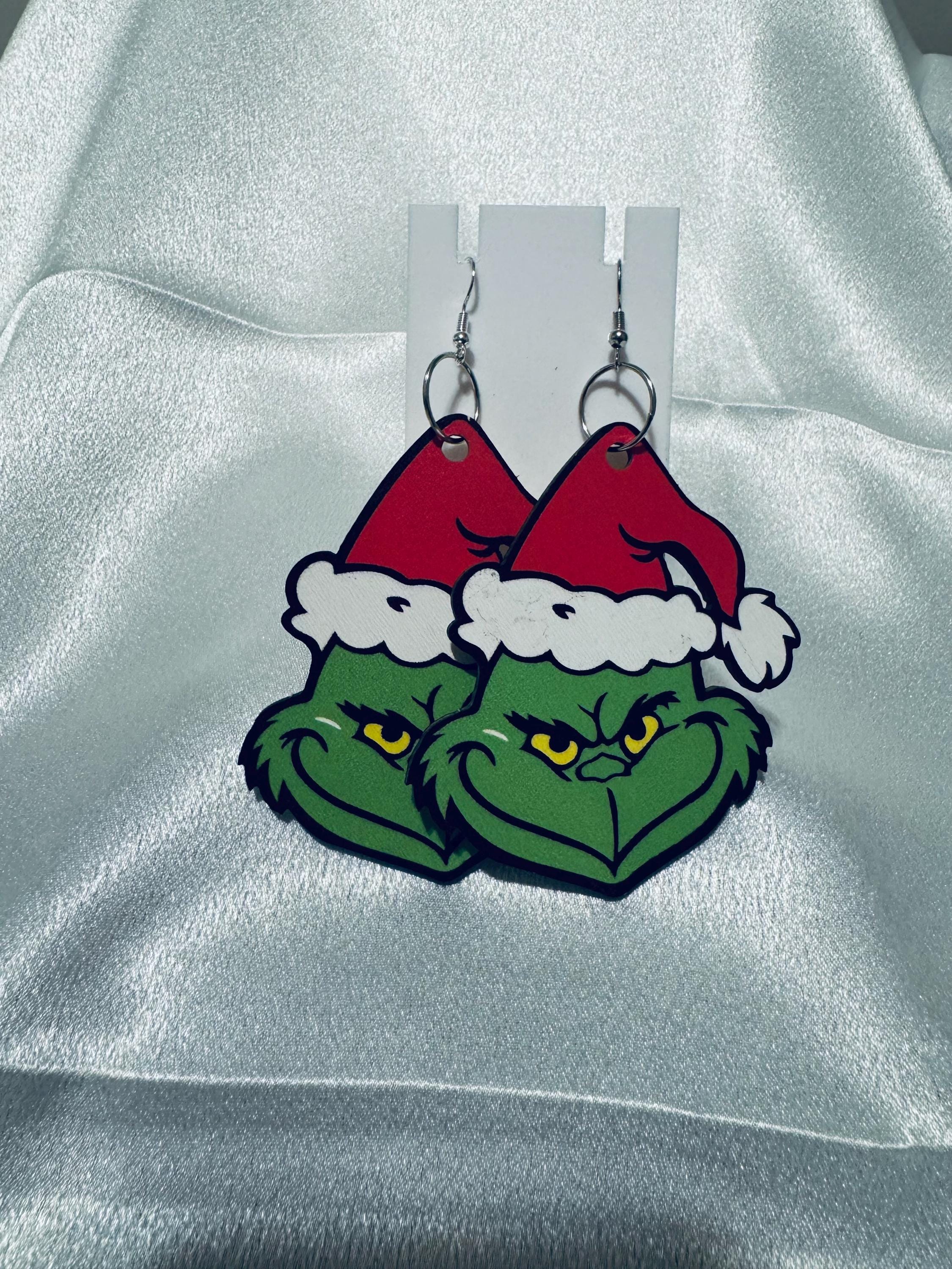 Grinch Wooden Oversized Dangle Earrings