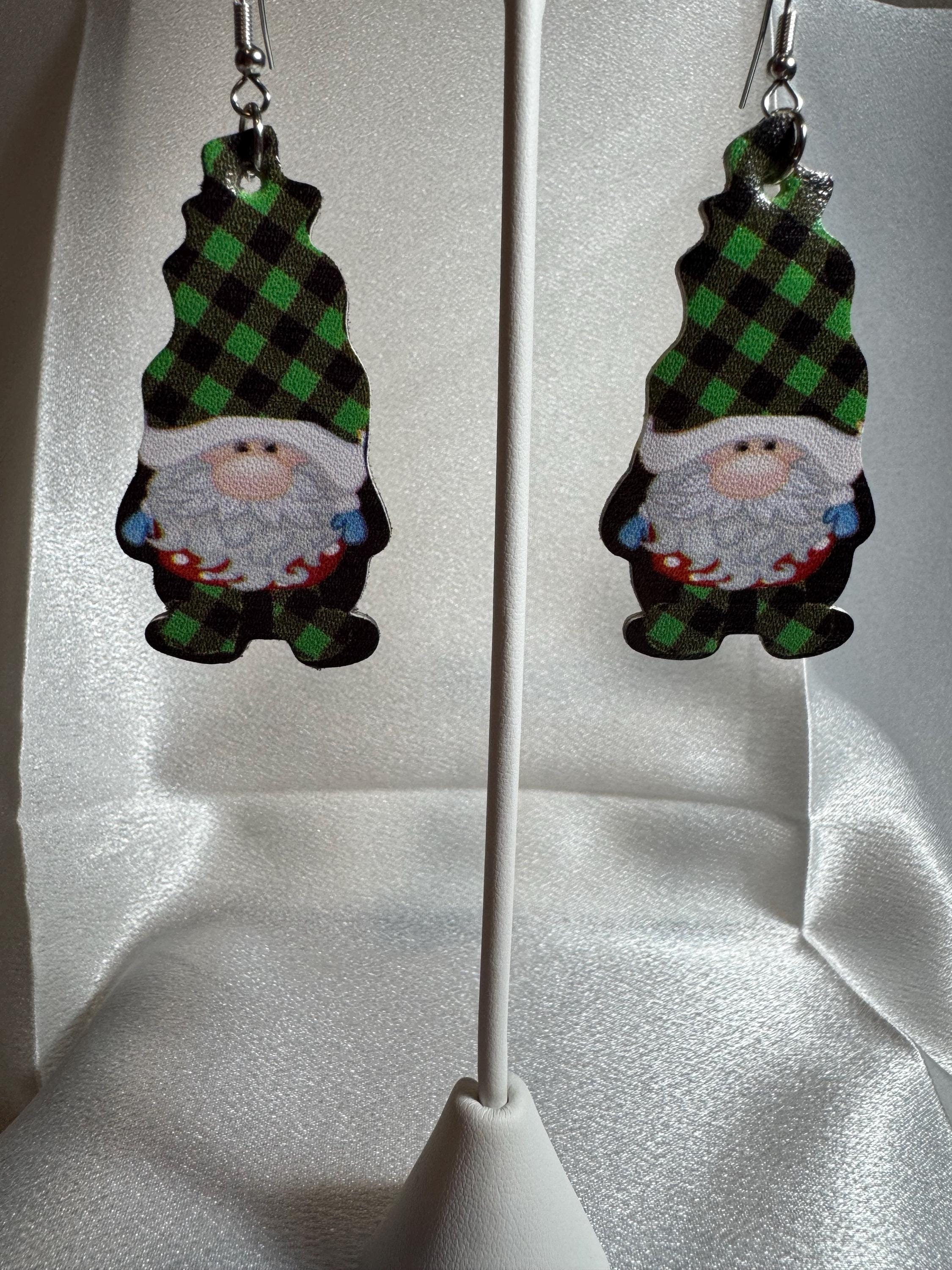 Leather Christmas Gnome Dangle Earrings Hypoallergenic