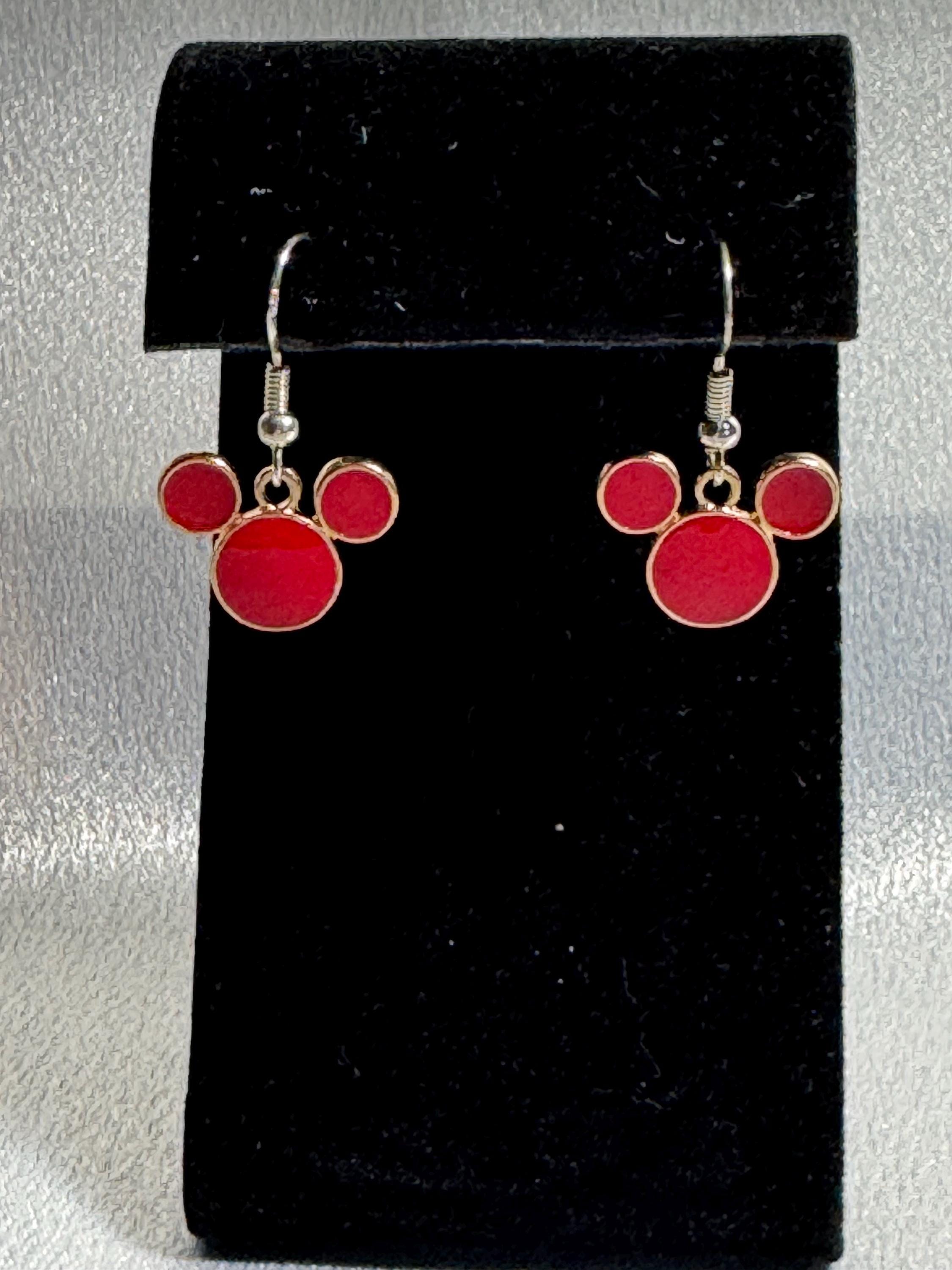 Red Mickey Mouse Ears Dangle Earrings