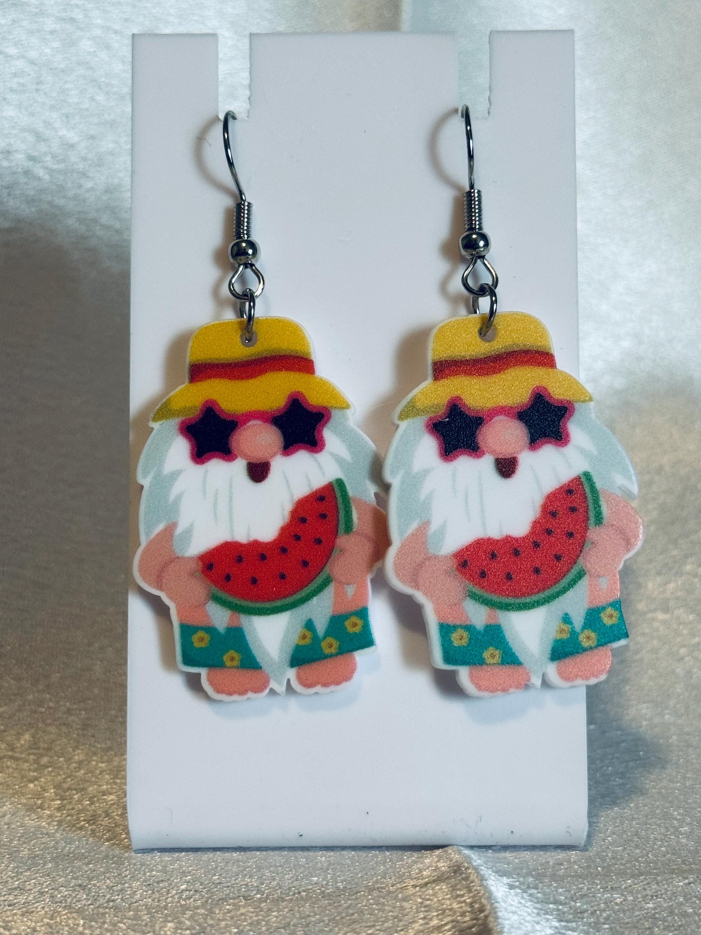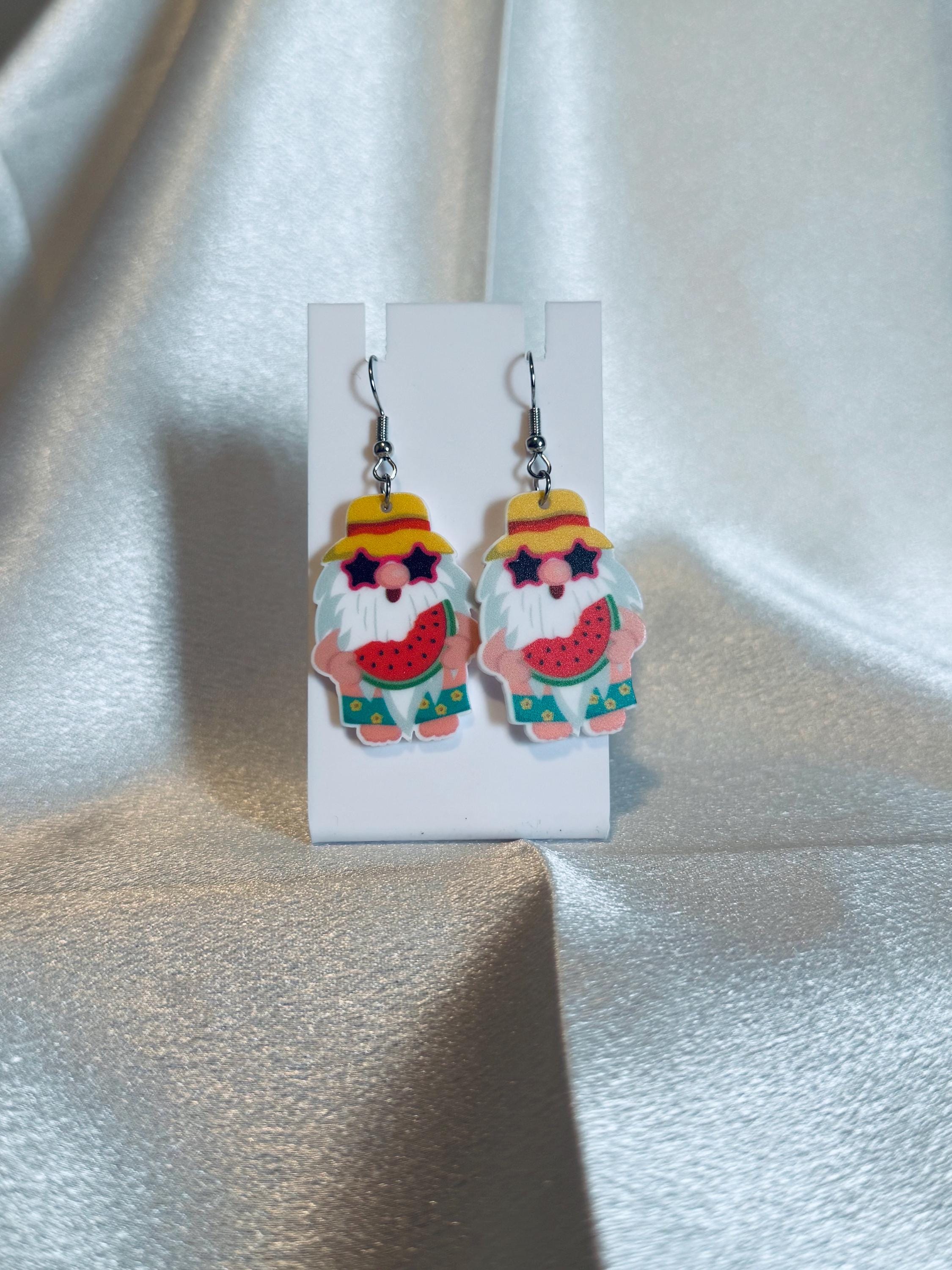 Acrylic Beach Goer Gnome Dangle Earrings