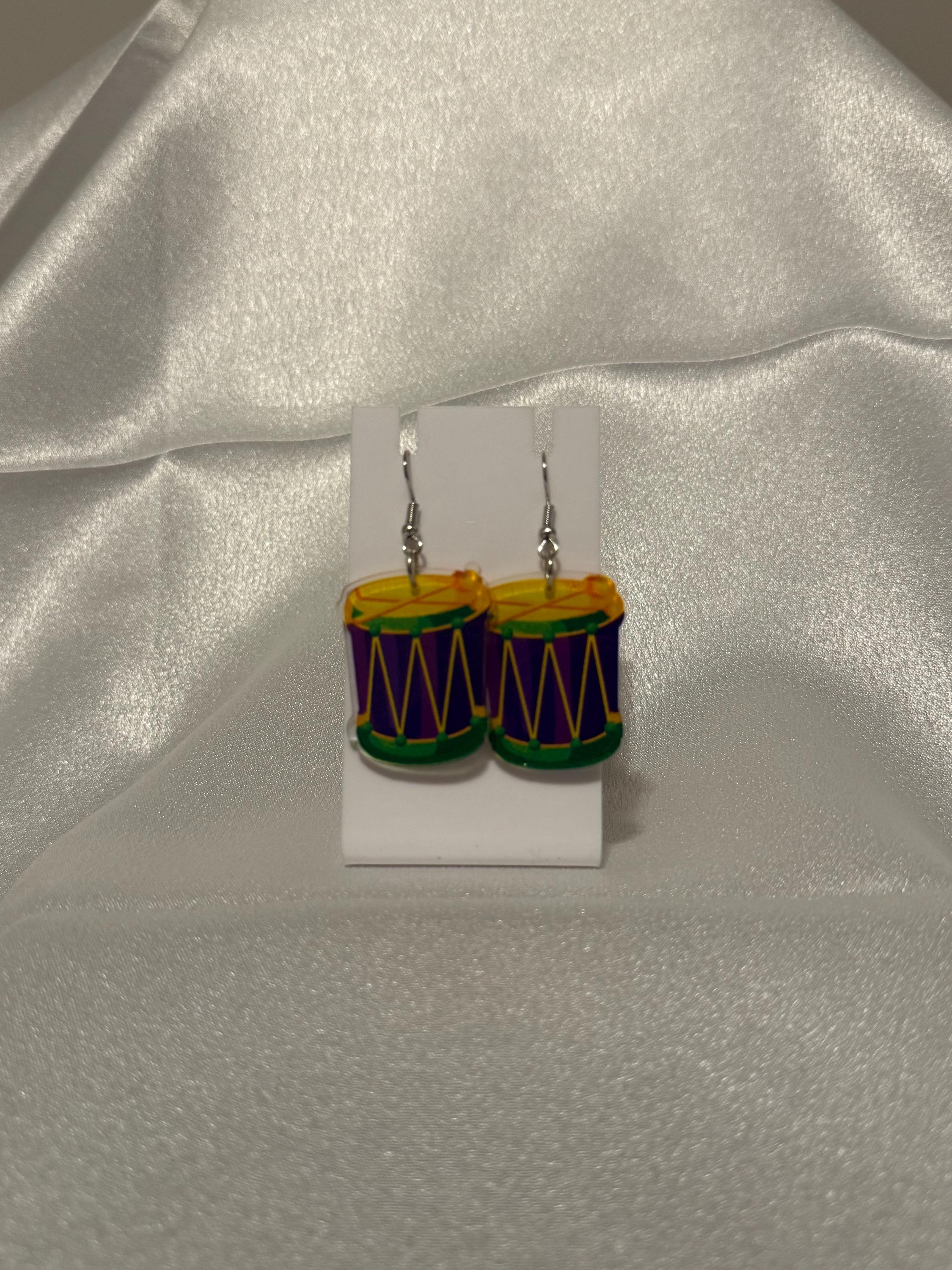 Mardi Gras Drum Dangle Earrings.