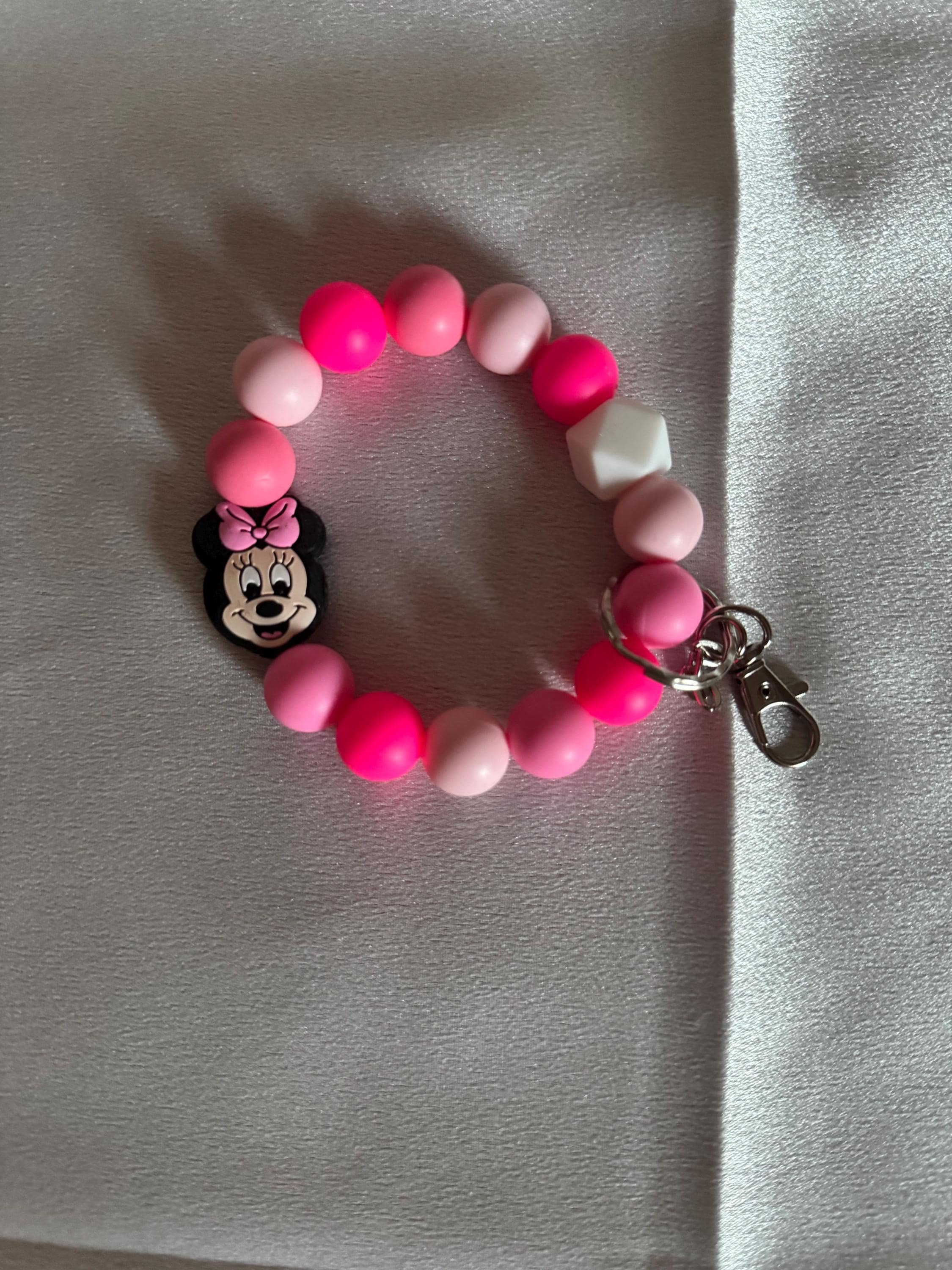 Bring a touch of Disney magic everywhere you go with these adorable Mickey and Minnie silicone wristlet keychains. Designed for both style and convenience, each wristlet features soft, flexible silicone beads and a charming character charm that adds personality to your everyday essentials.