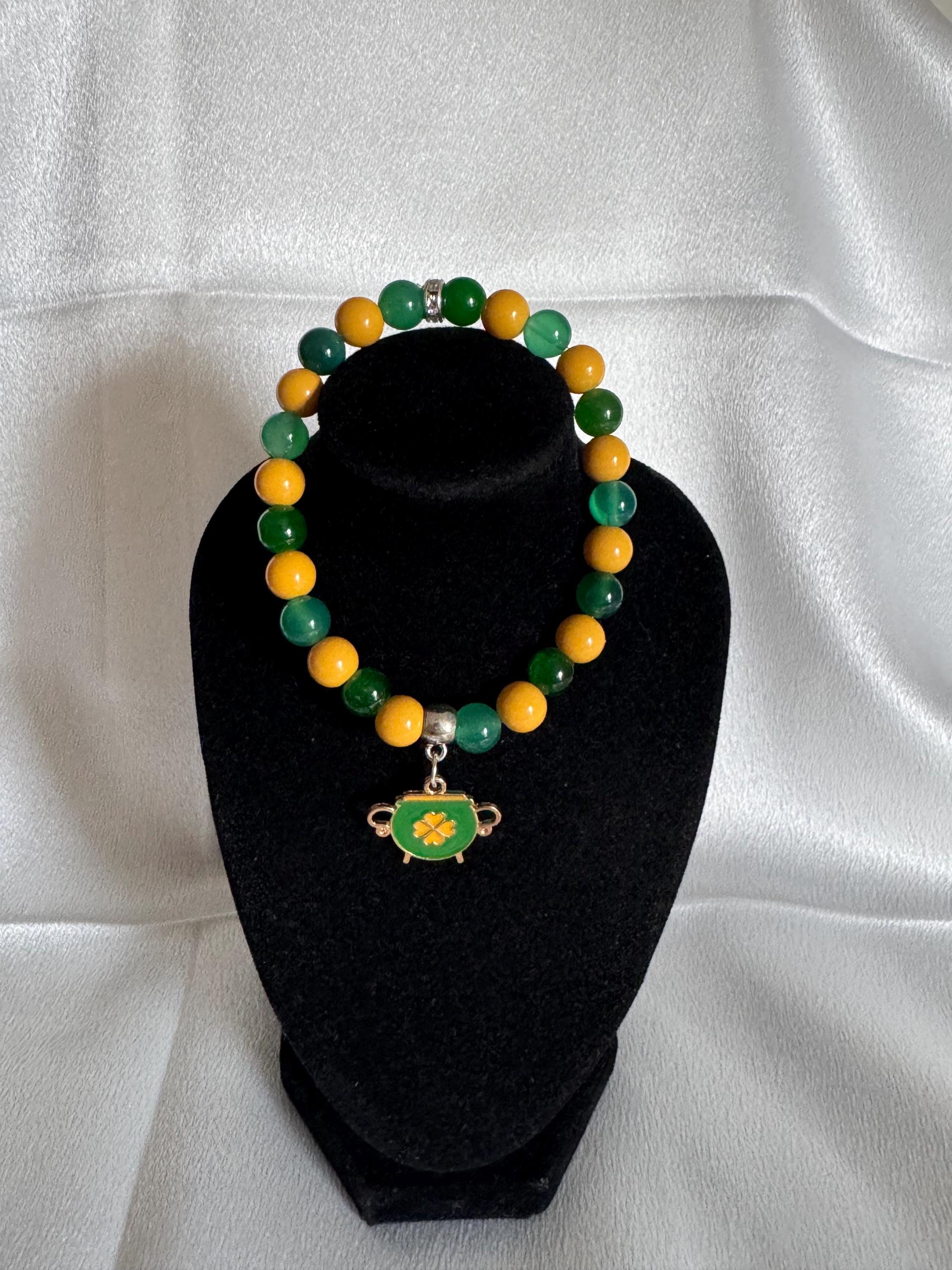 Celebrate St. Patrick’s Day—or your everyday love for Irish charm—with this handmade stretch bracelet featuring vibrant acrylic and glass beads paired with a festive themed charm. Measuring approximately 7.5 inches, it offers a comfortable fit and can be customized in both size and color to match your style.
