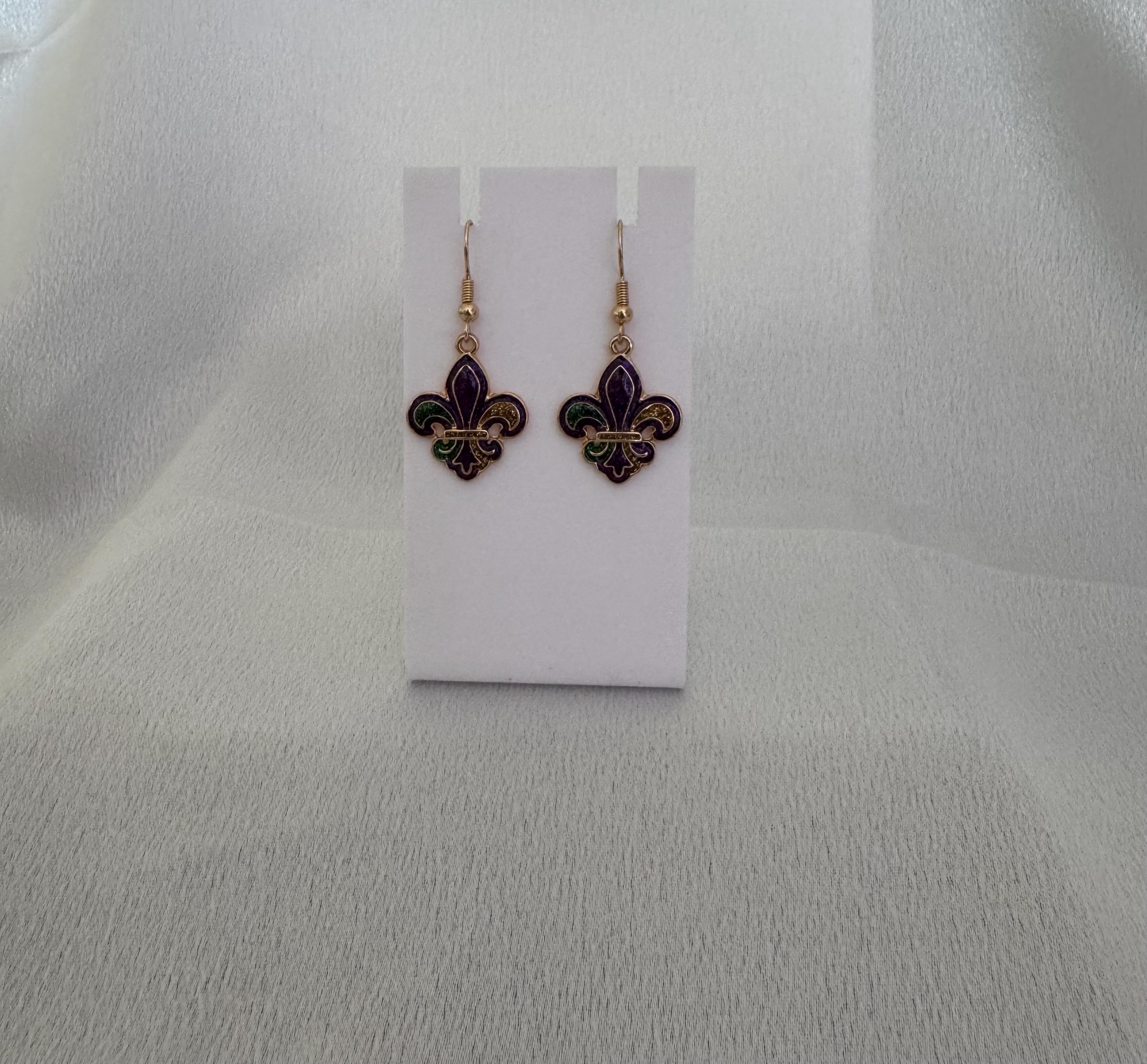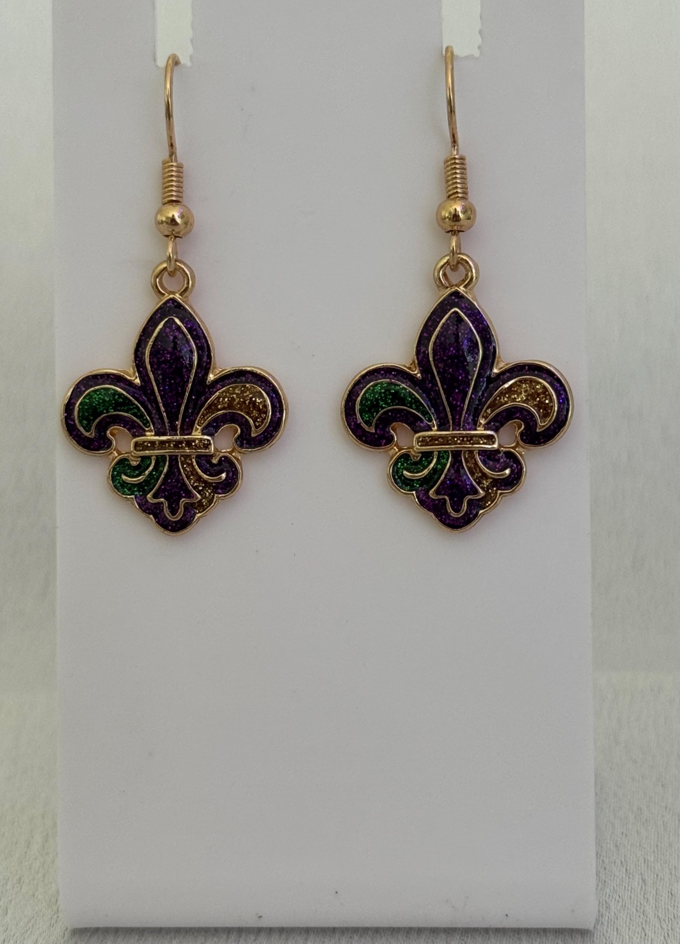 Mardi Gras Fleur de Lis Dangle Earrings.
