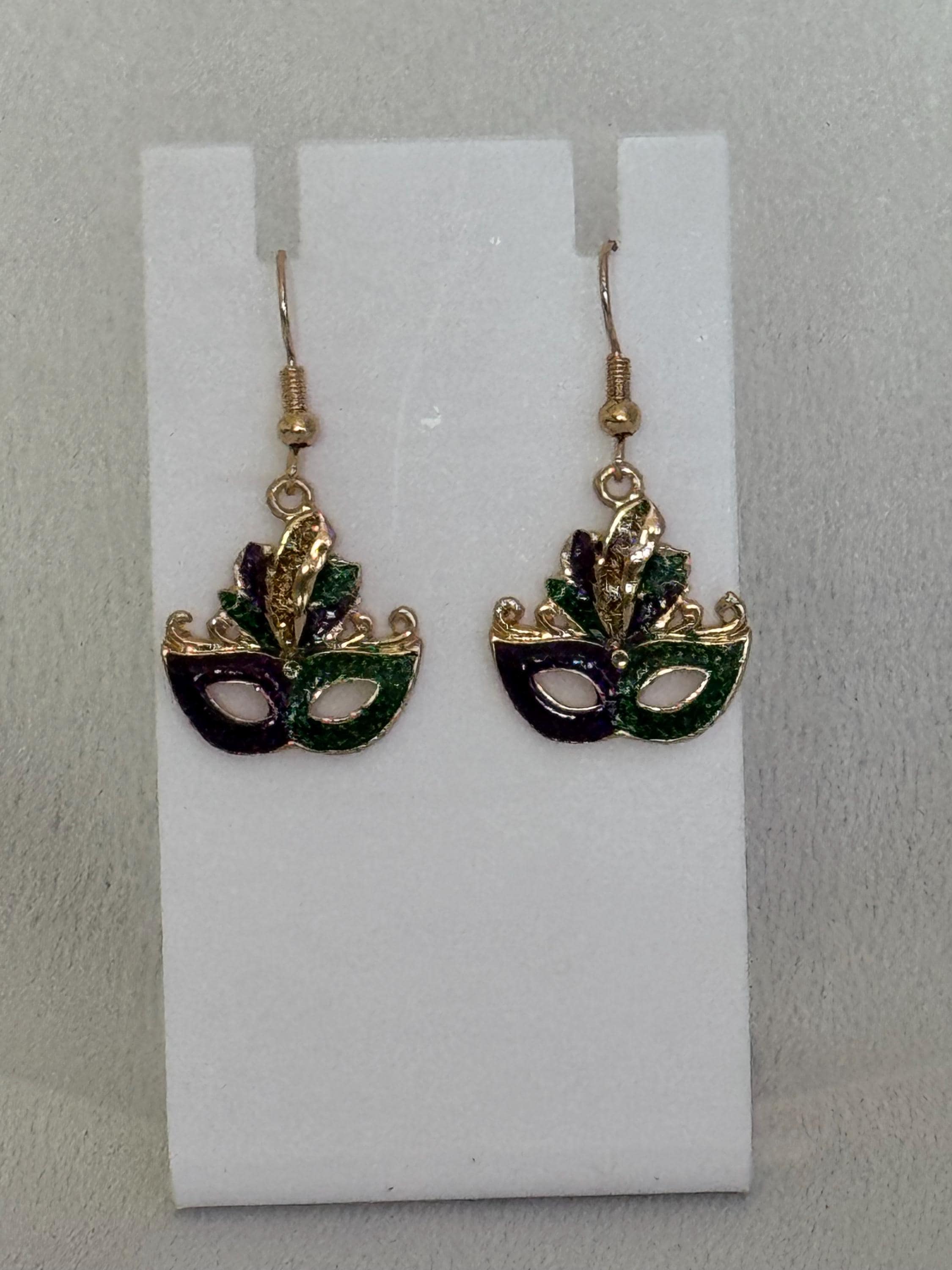 Bring festive flair to your look with these vibrant costume earrings—perfect for parades, parties, or gifting to someone who loves the season. Designed in classic Mardi Gras colors, these earrings are hypoallergenic and comfortable enough for all‑day wear.