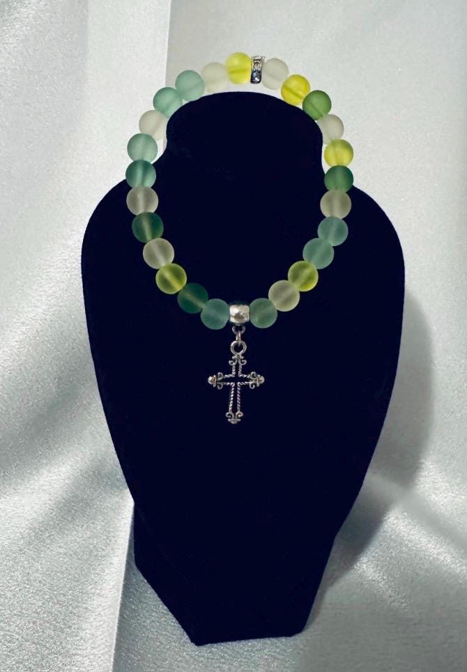 🌈 Colorful Beaded Stretch Cross Charm Bracelet – 7.5"