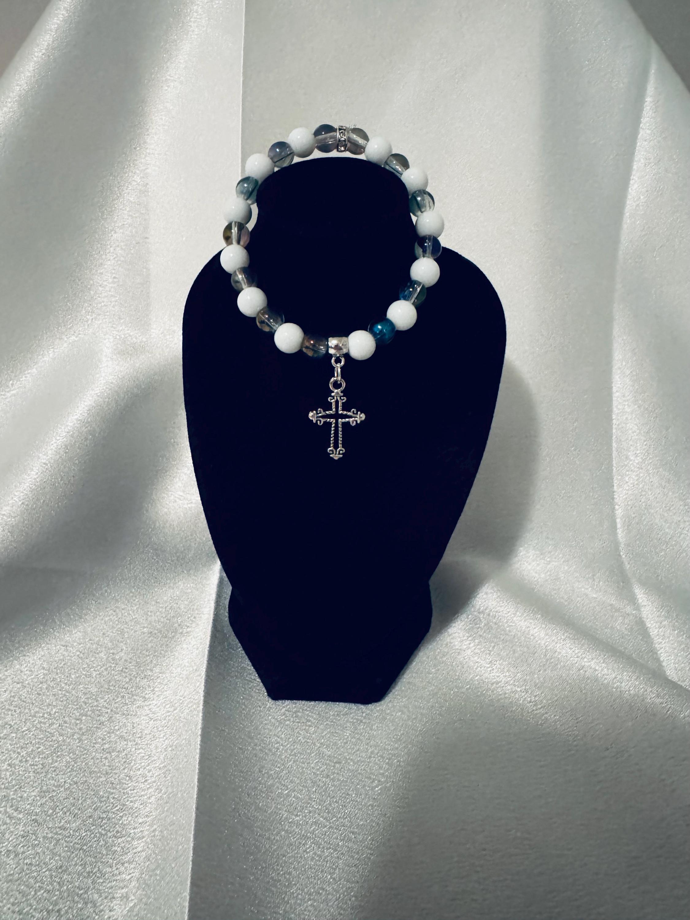 π Colorful Beaded Stretch Cross Charm Bracelet β 7.5"