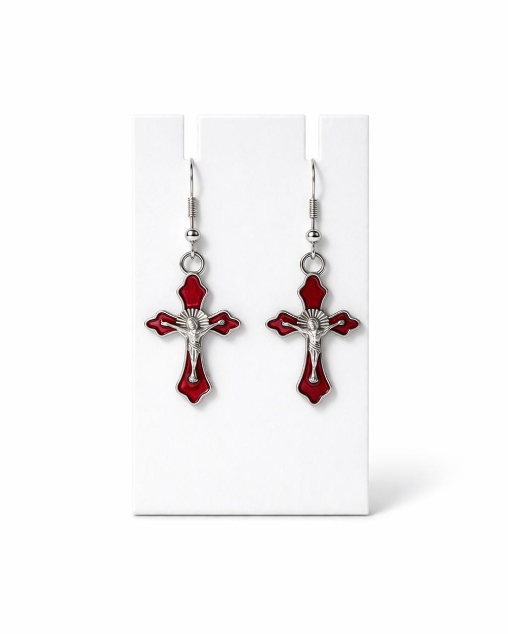 These elegant rosary‑inspired dangle earrings blend timeless symbolism with modern charm. Each pair features a beautifully detailed enamel cross suspended from a lightweight alloy setting, creating a graceful movement with every step. The smooth enamel finish adds a pop of color and shine, while the hypoallergenic design makes them comfortable for sensitive ears. Perfect for daily wear, spiritual expression, or gifting, these earrings offer a meaningful touch with effortless style.
