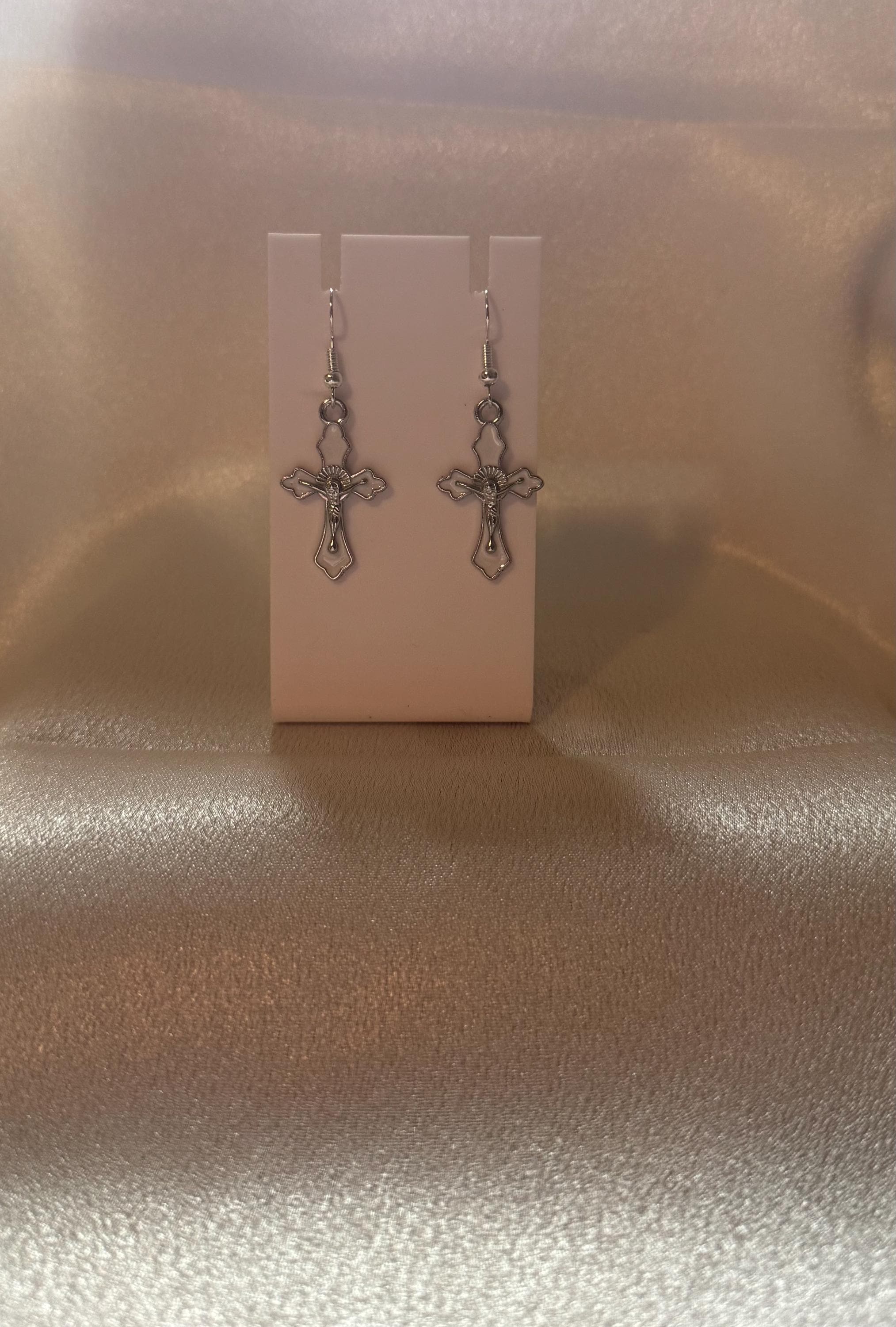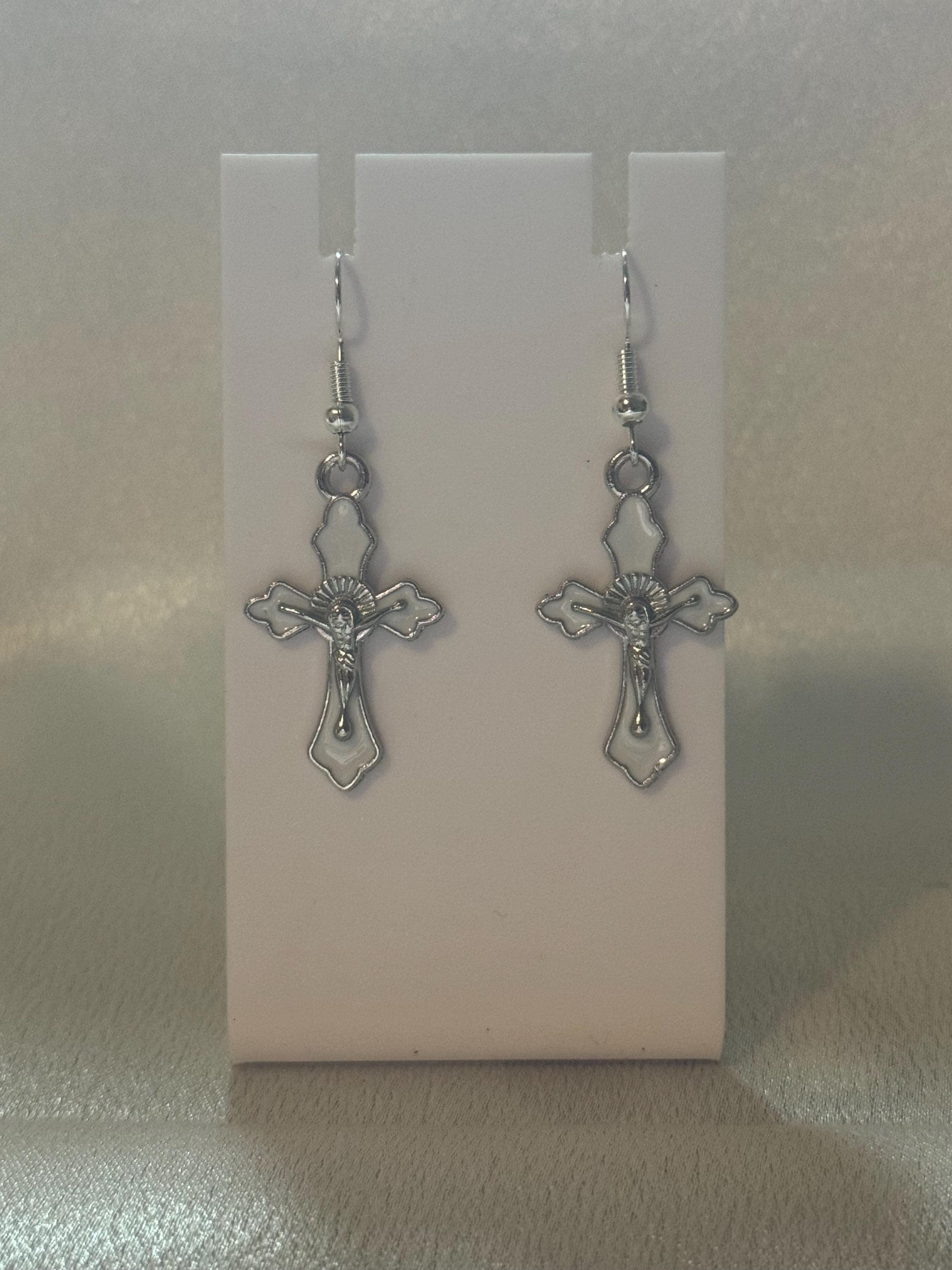 These elegant rosary‑inspired dangle earrings blend timeless symbolism with modern charm. Each pair features a beautifully detailed enamel cross suspended from a lightweight alloy setting, creating a graceful movement with every step. The smooth enamel finish adds a pop of color and shine, while the hypoallergenic design makes them comfortable for sensitive ears. Perfect for daily wear, spiritual expression, or gifting, these earrings offer a meaningful touch with effortless style.