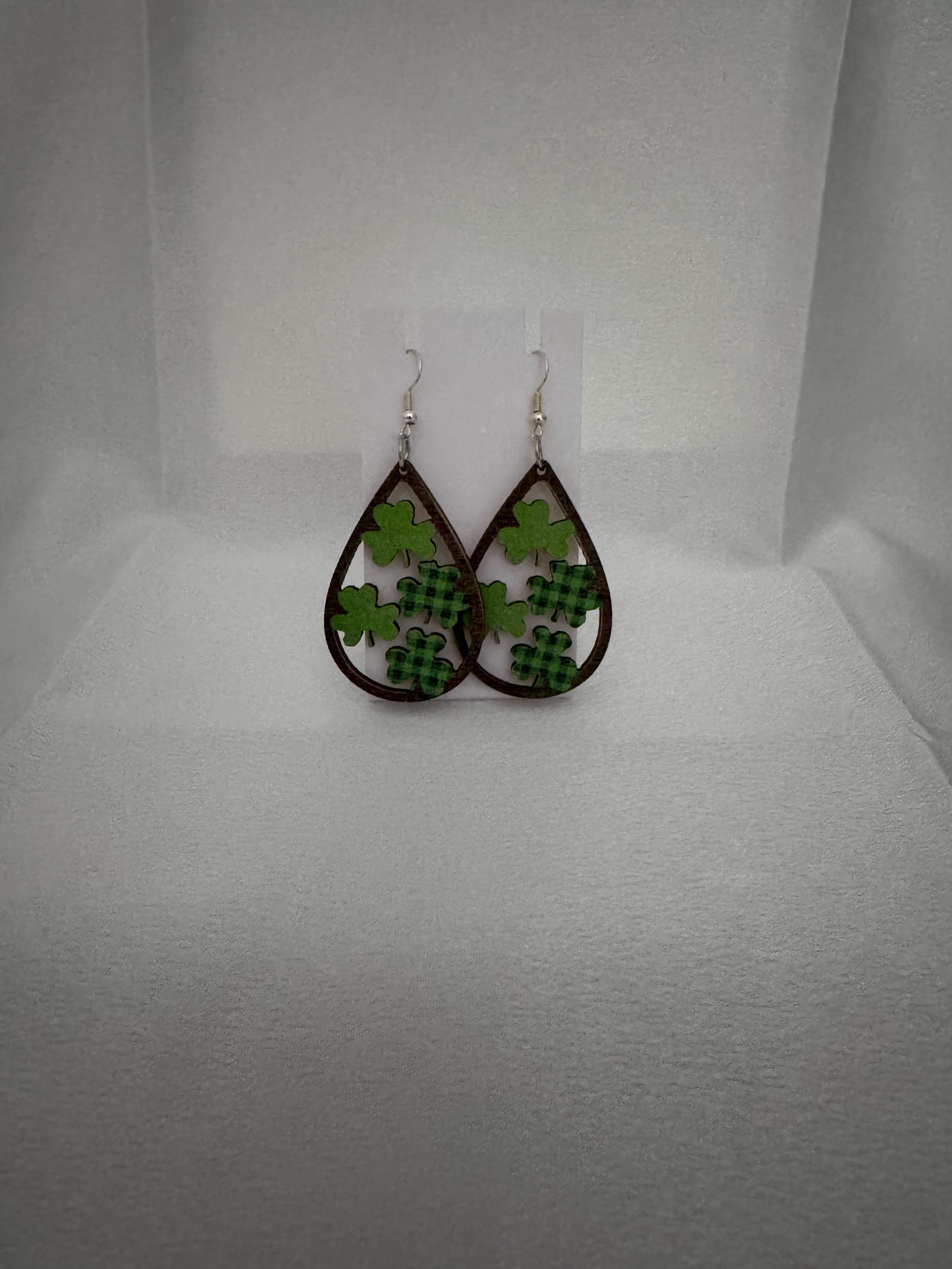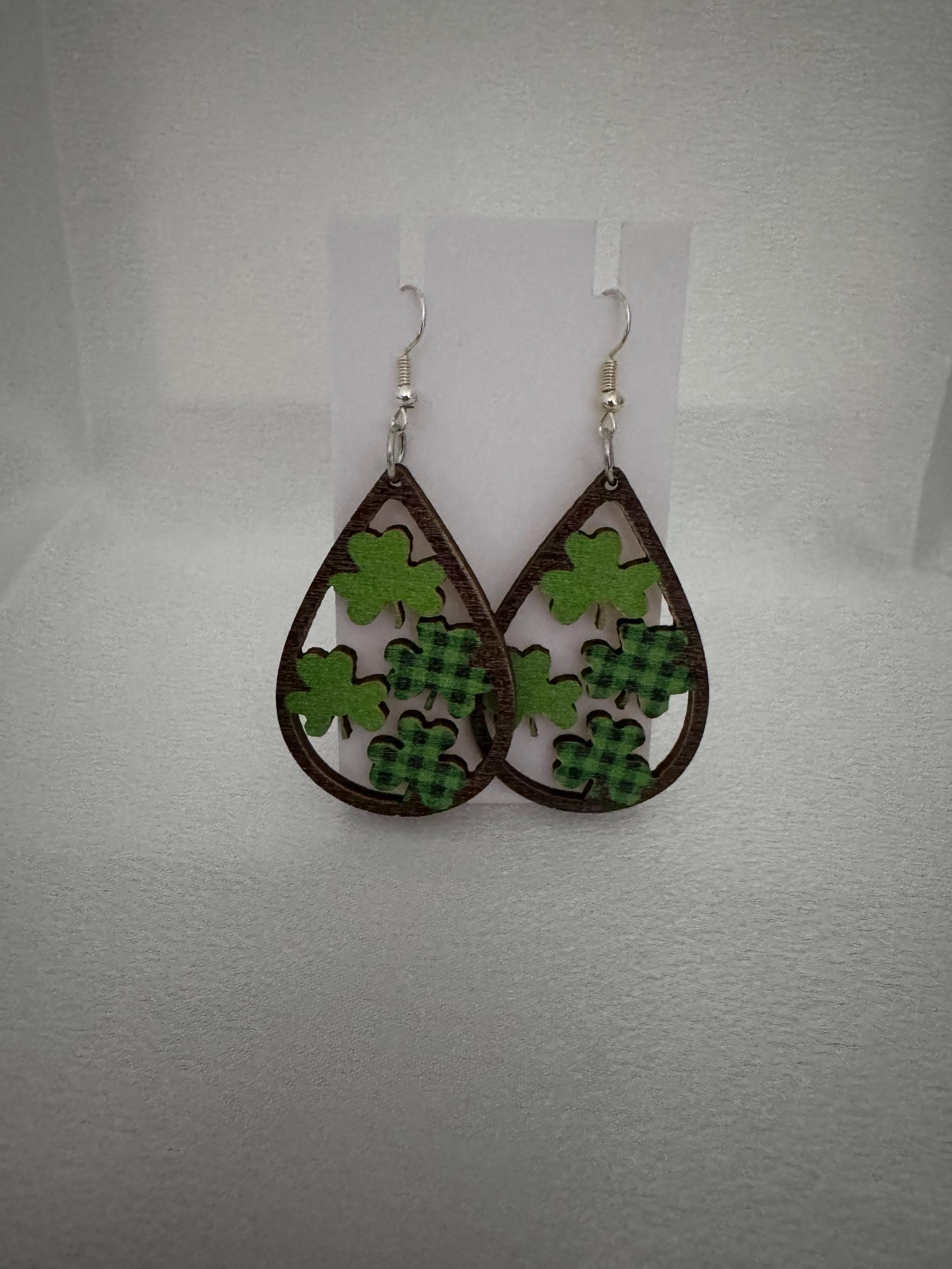 🍀 St. Patrick’s Day Dangle Earrings – Wooden Hypoallergenic & Festive