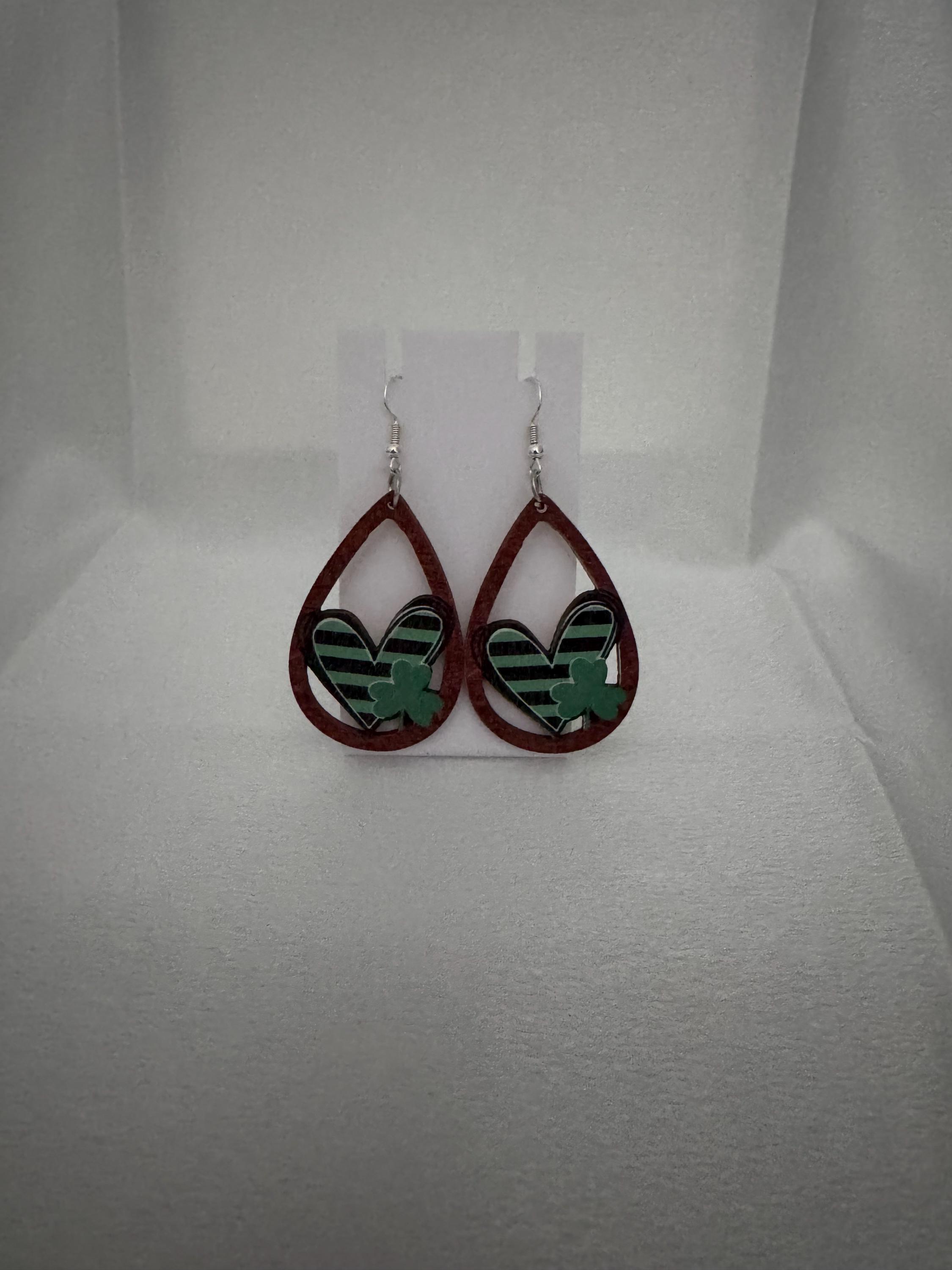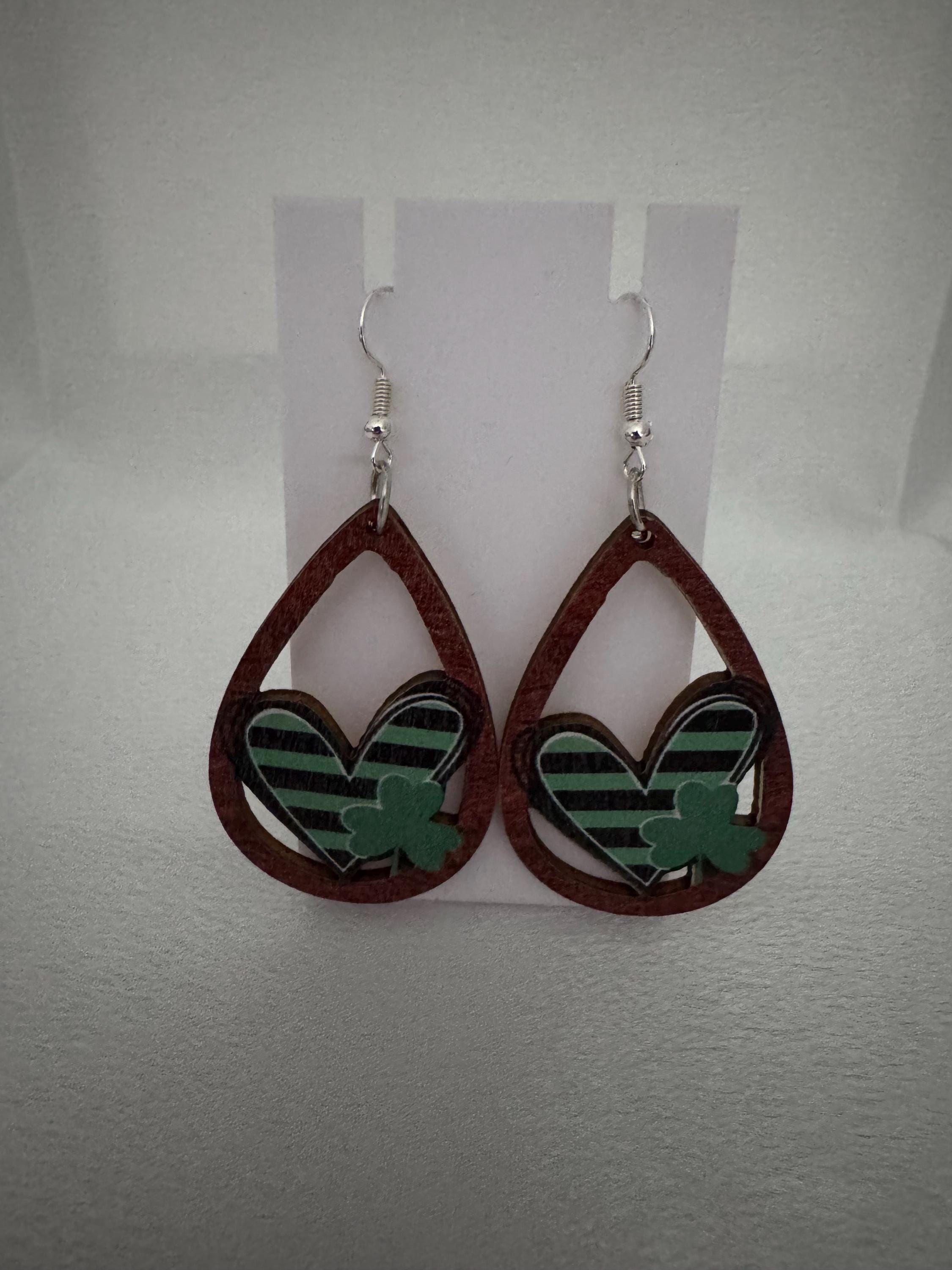 🍀 St. Patrick’s Day Dangle Earrings – Wooden Hypoallergenic & Festive