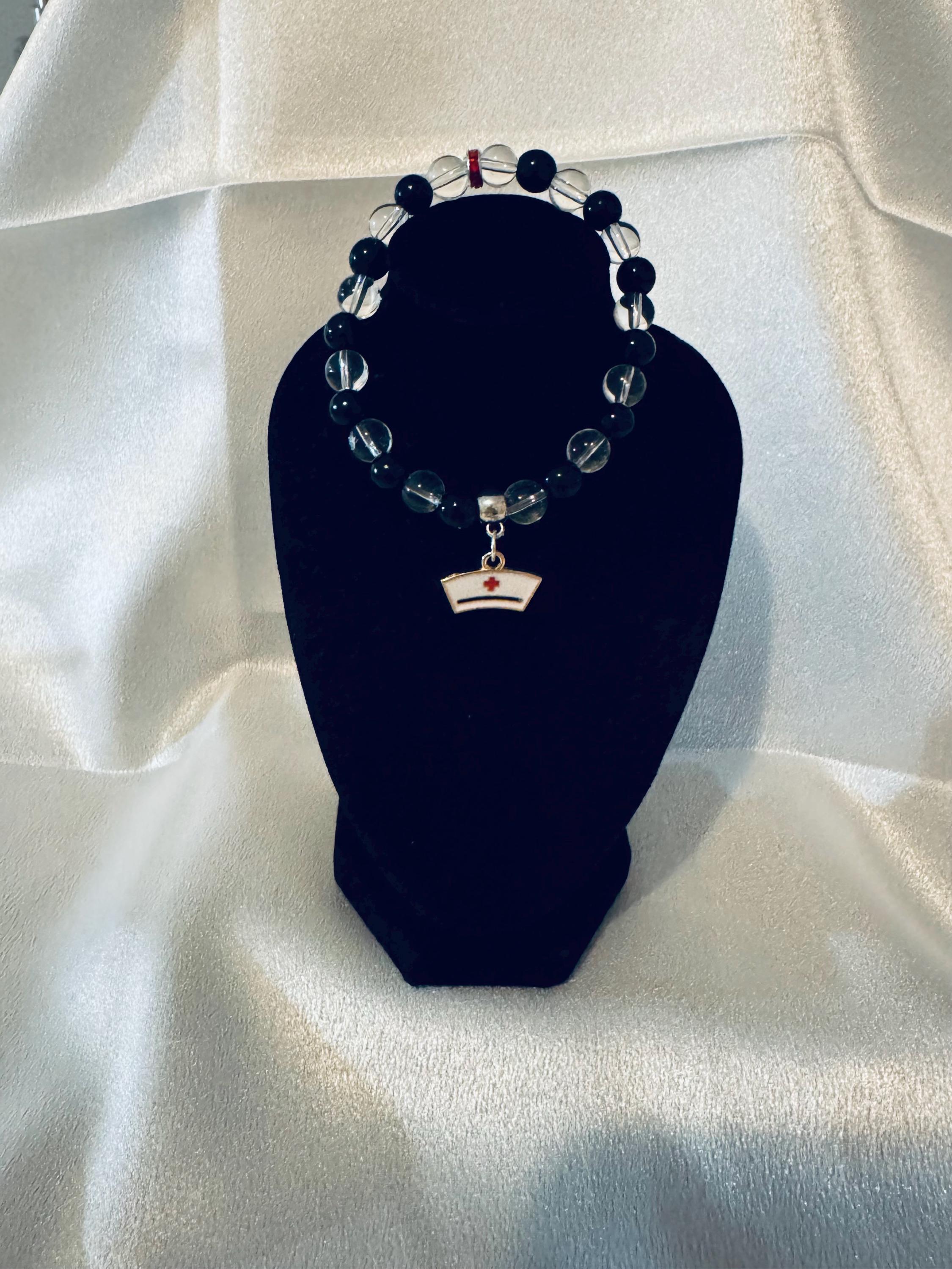 Cute Nurse‑Themed Stretch Charm Bracelet – 7½ Inches